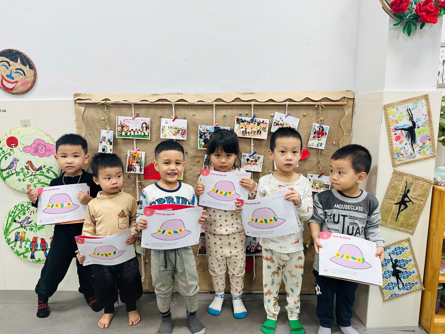 Hoạt động này không chỉ giúp các bé rèn luyện sự khéo léo, mà còn là cơ hội tuyệt vời để các bé thể hiện sự sáng tạo của bản thân, tạo ra những chiếc mũ độc đáo mang đậm dấu ấn cá nhân. Sau khi hoàn thành, các bé sẽ rất tự hào khi nhìn thấy sản phẩm của mình và chia sẻ cùng các bạn trong lớp.