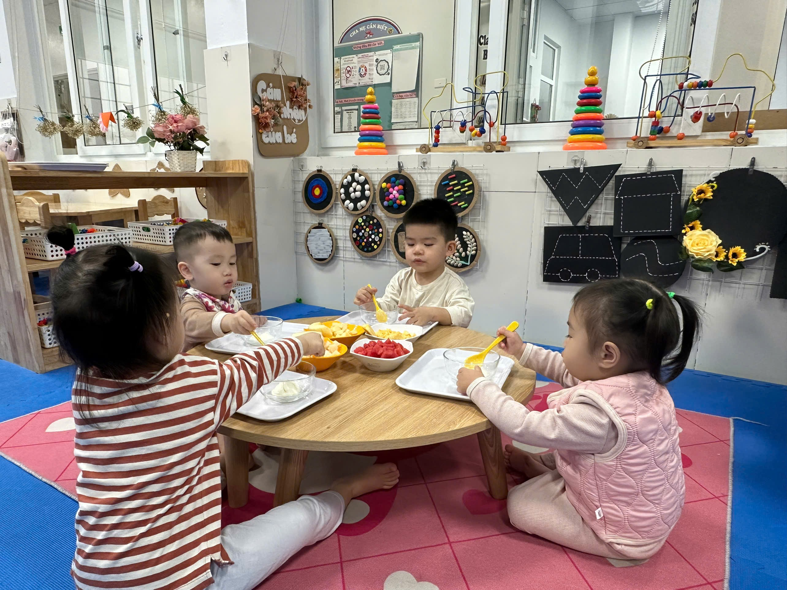 🌺 Hoạt động phát triển kĩ năng “ Hoa quả trộn sữa chua” Của các bé lớp nhà trể D1
