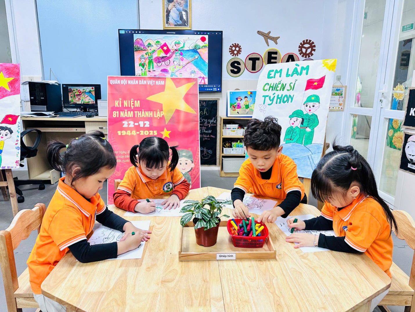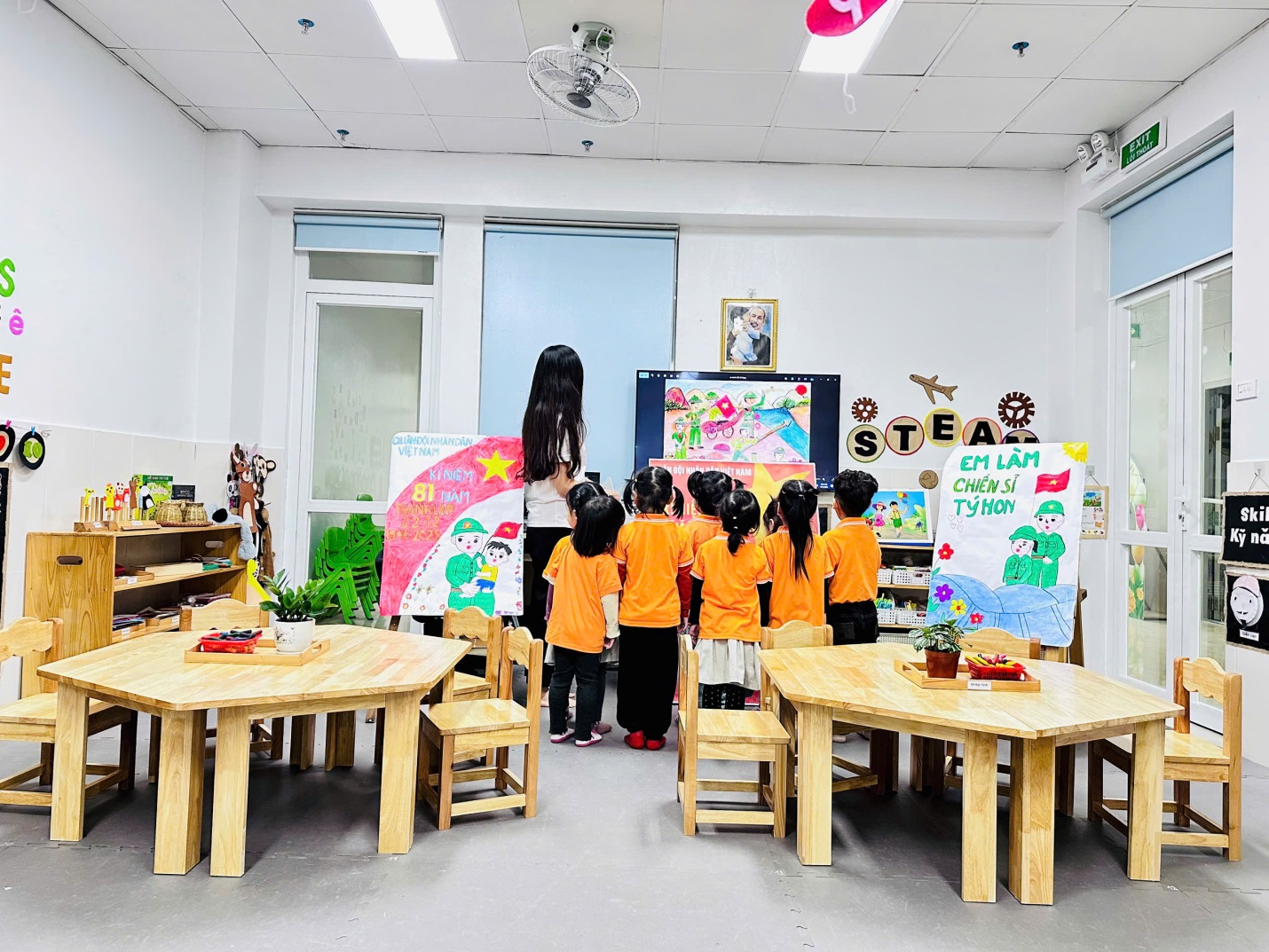 Nhờ có các chú mà chúng ta được tới trường, được vui chơi và sống trong hòa bình. Vì vậy, trong ngày 22/12, các bạn nhỏ lớp MGN B3 đã có nhiều hoạt động thể hiện tình cảm tới những người chiến sĩ đang âm thầm làm nhiệm vụ vì Tổ quốc.