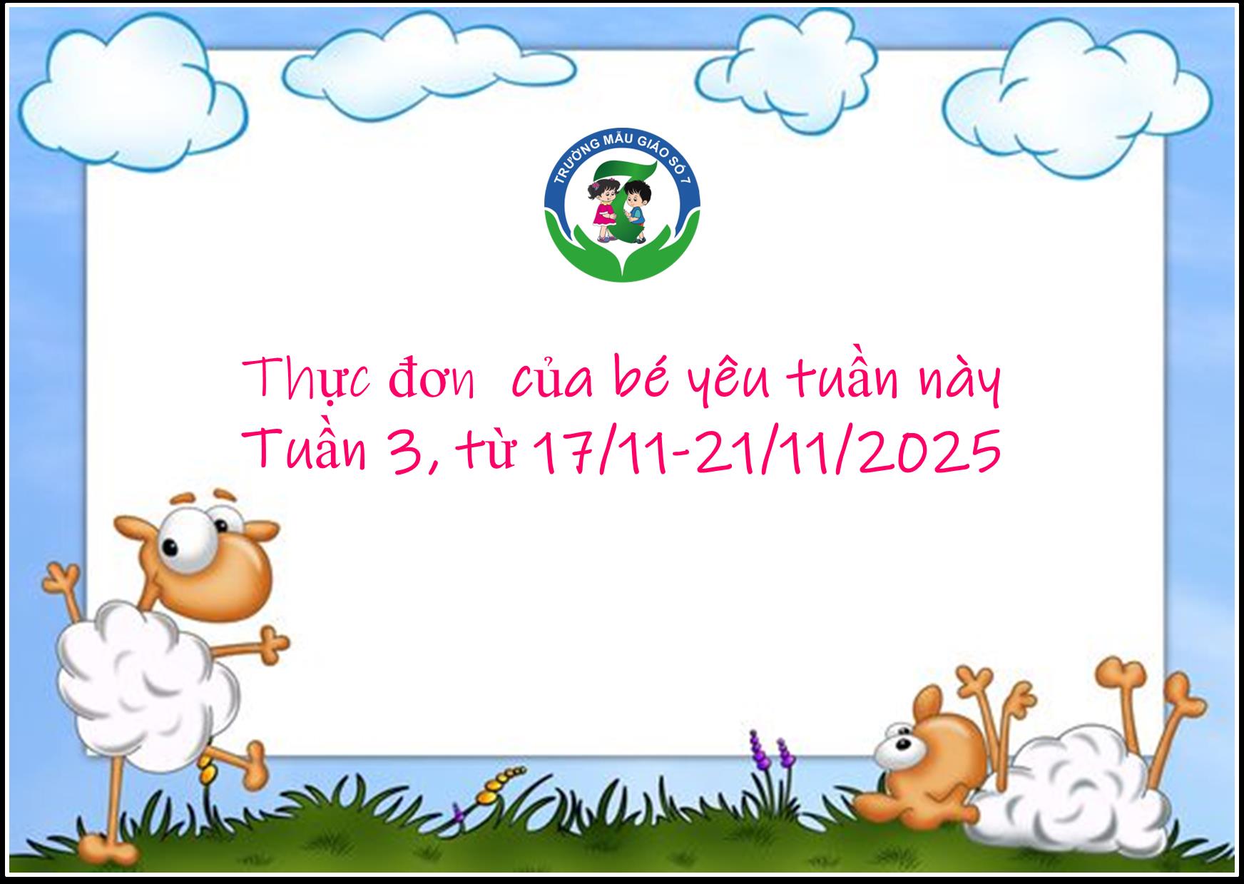 Trường Mẫu giáo Số 7 kính gửi đến Quý Phụ huynh thực đơn của bé tuần 3 tháng 11/2025 (từ ngày 17/11/2025 đến ngày 21/11/2025)