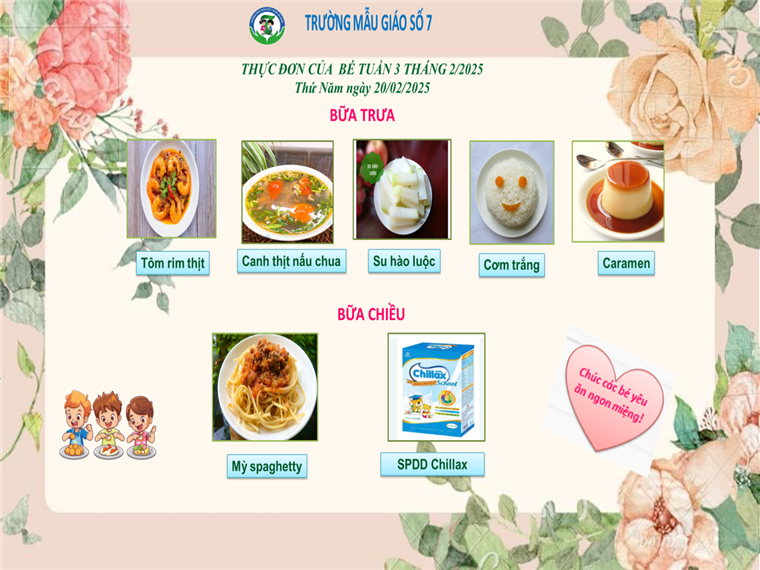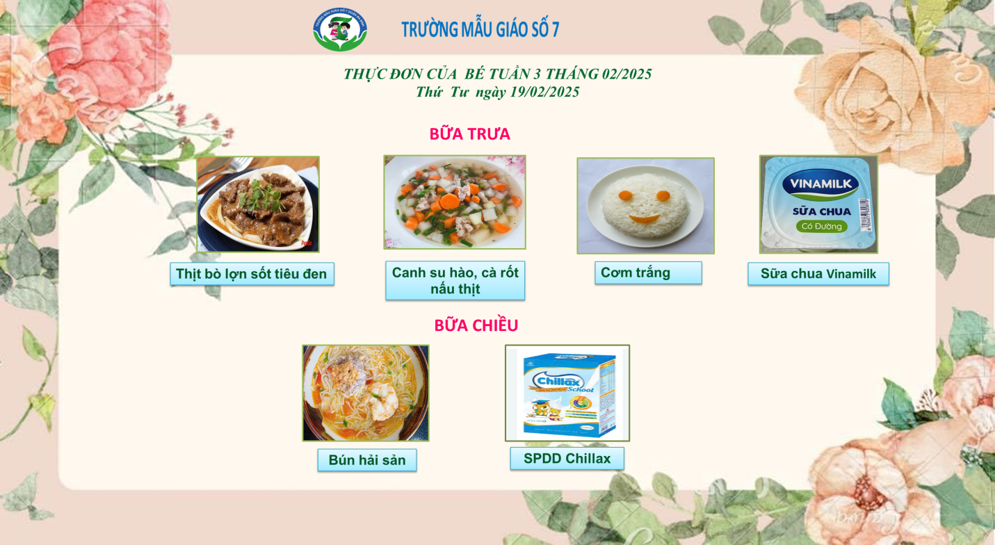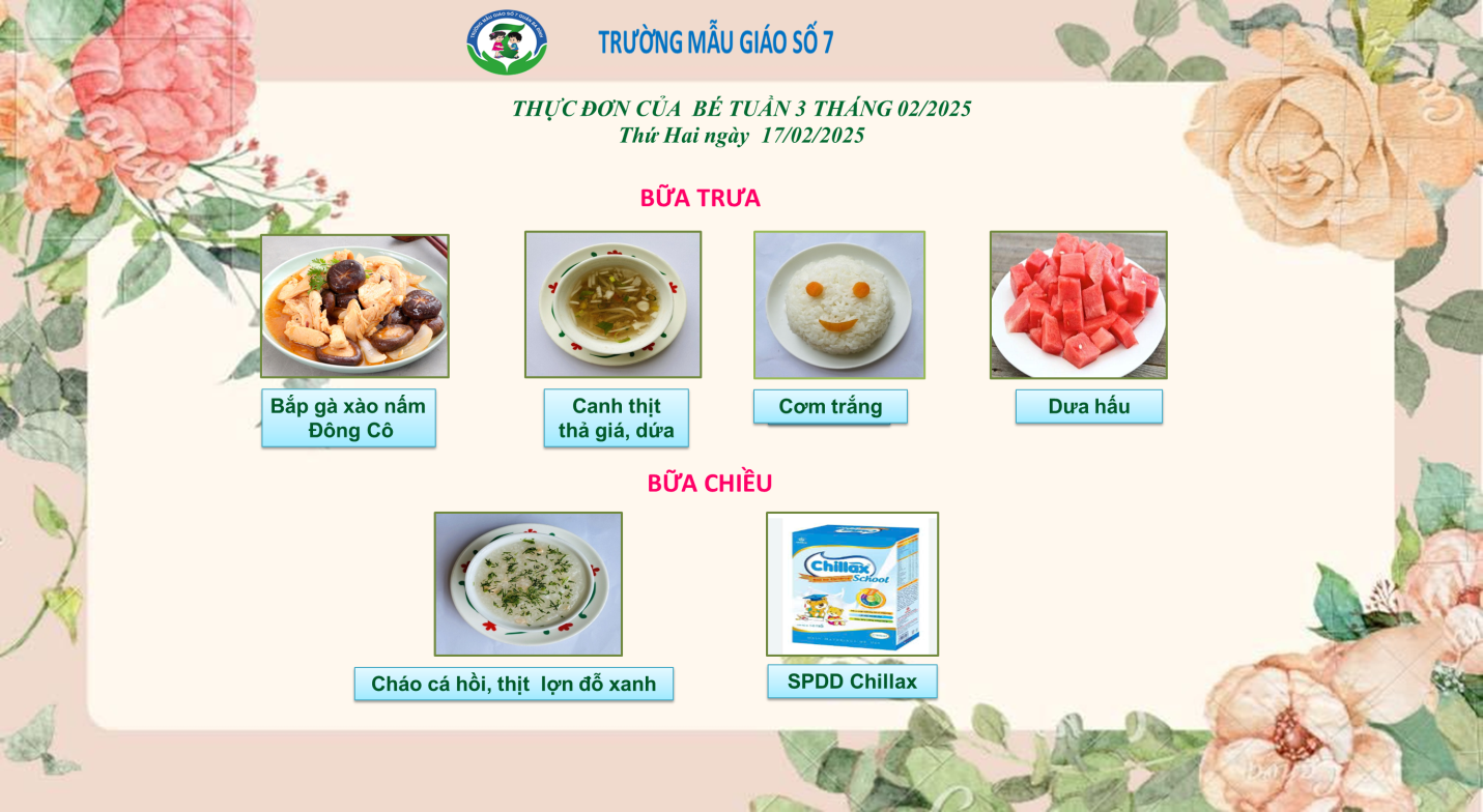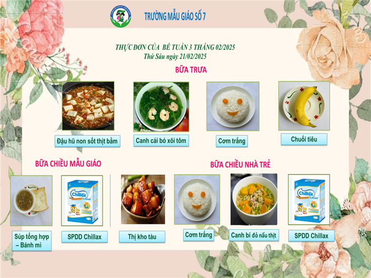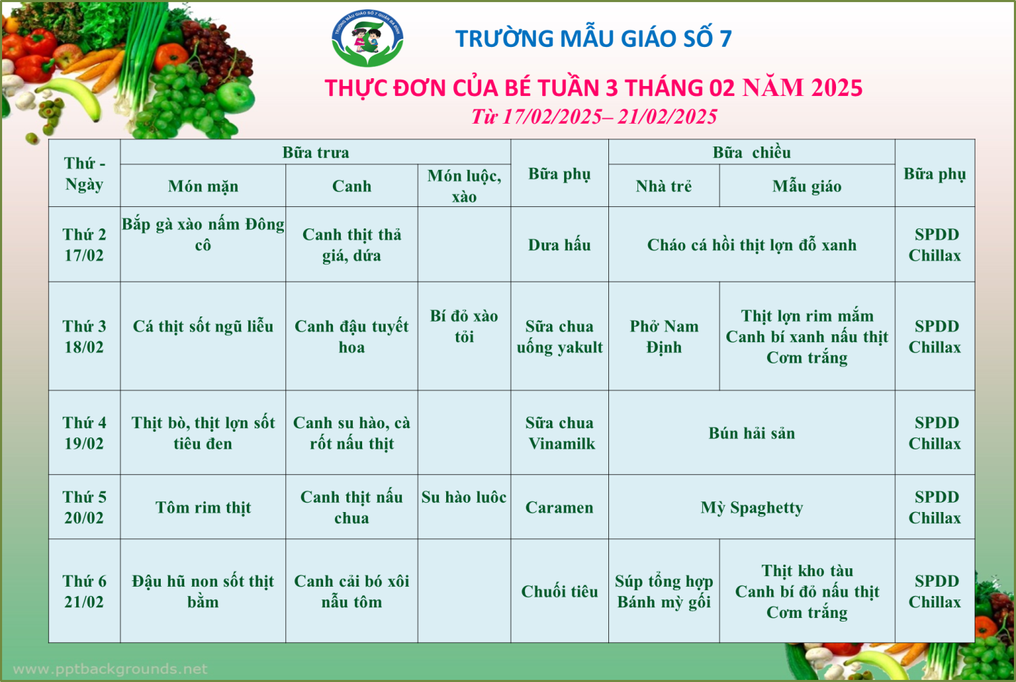 Dưới đây là thực đơn của bé tuần 3 tháng 02/2025: