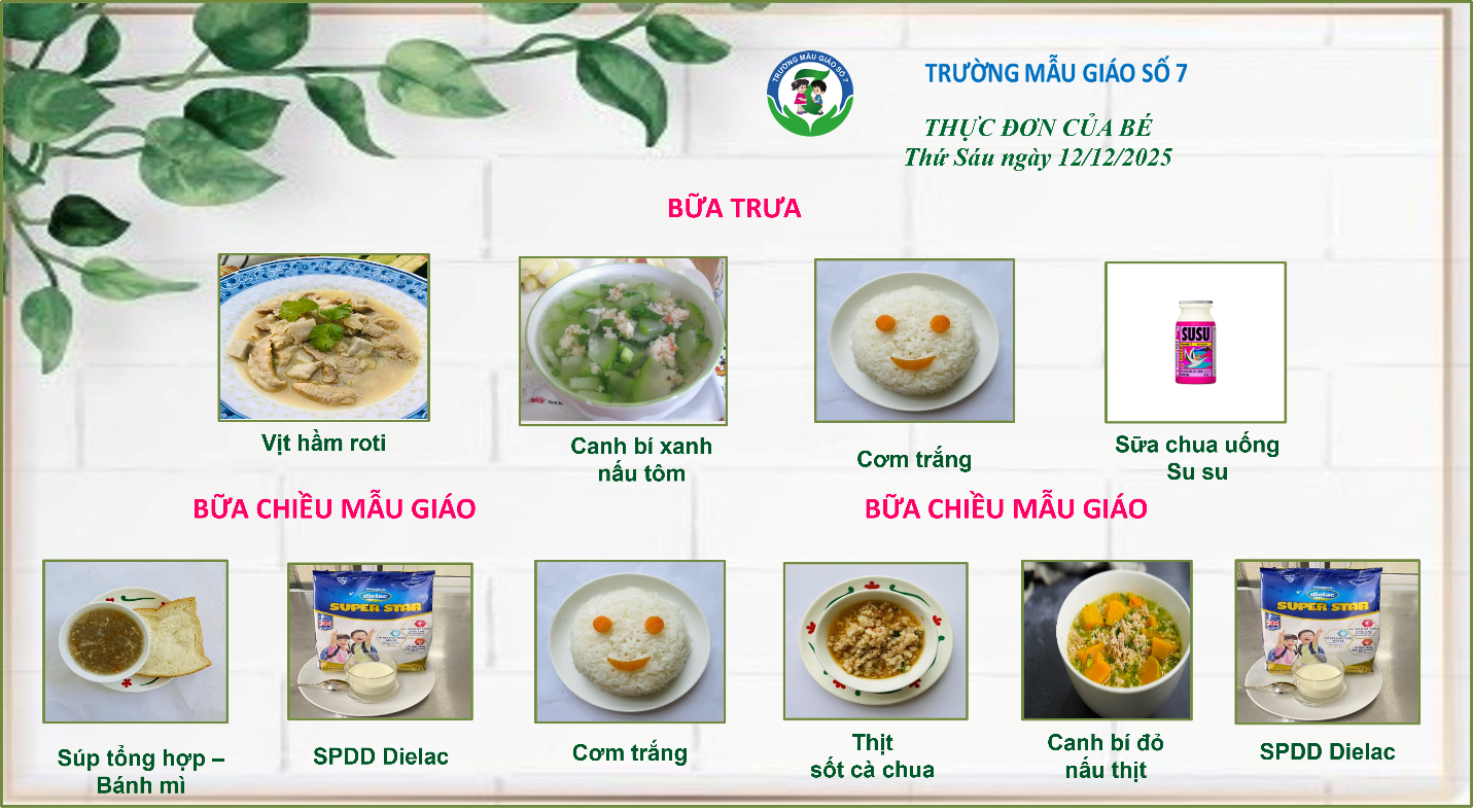 Dưới đây là thực đơn của bé tuần 2 tháng 12/2025