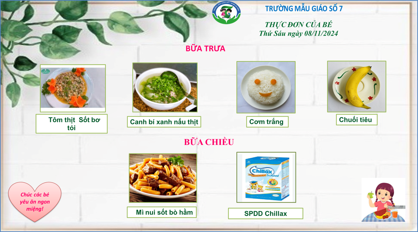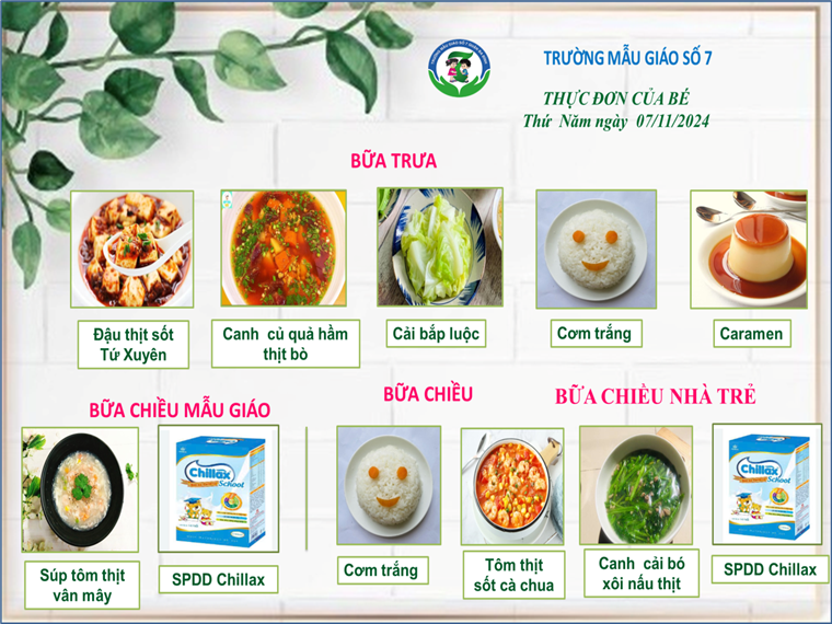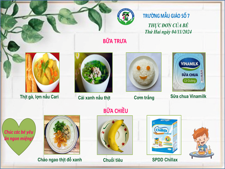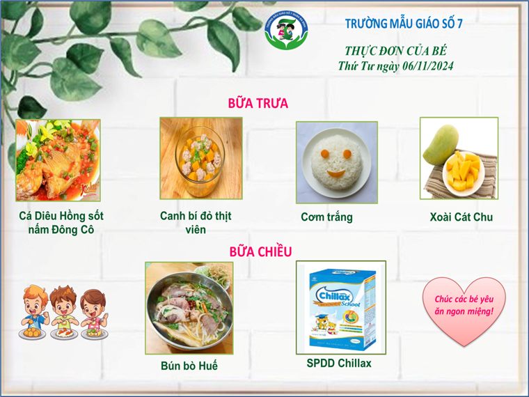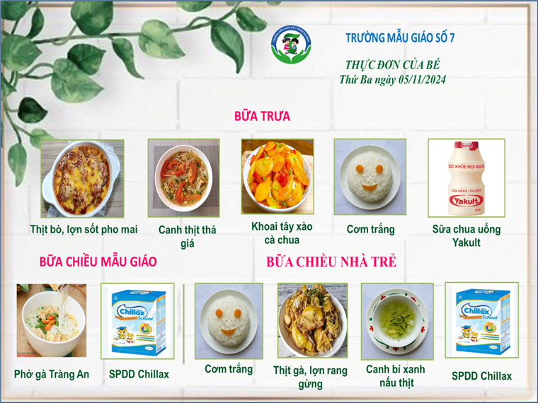 Thực đơn của các bé có thể được điều chỉnh tùy thuộc vào nguồn cung ứng thực phẩm.