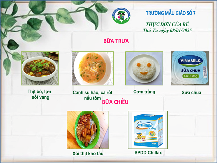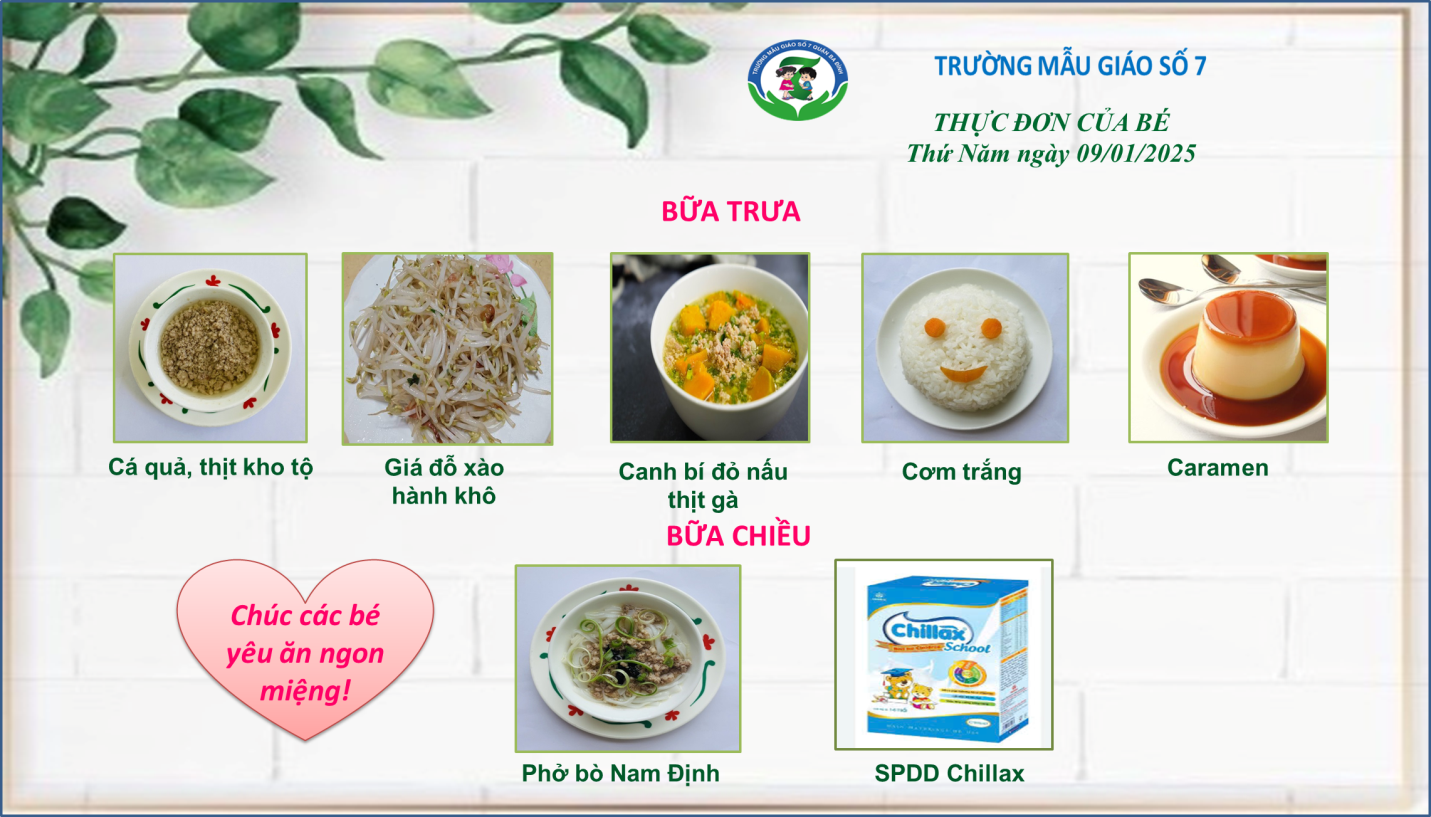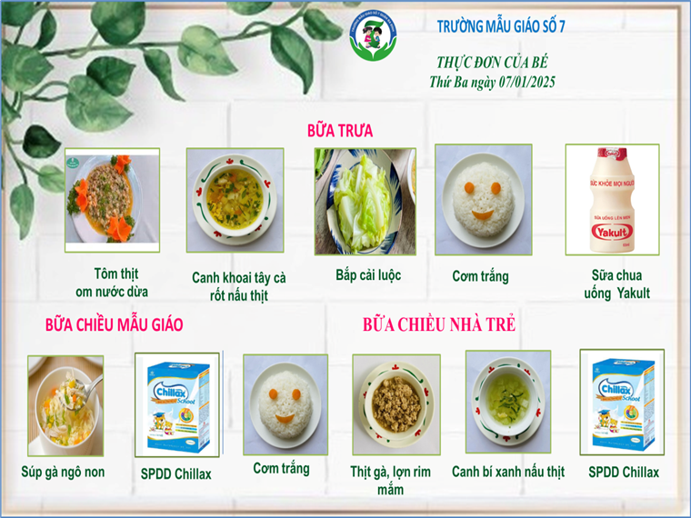 Dưới đây là thực đơn của bé tuần 1 tháng 01/2025:
