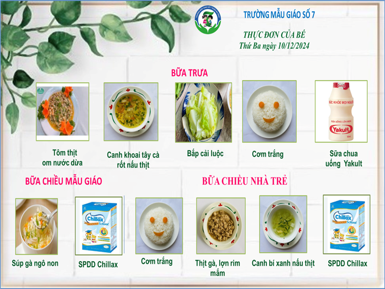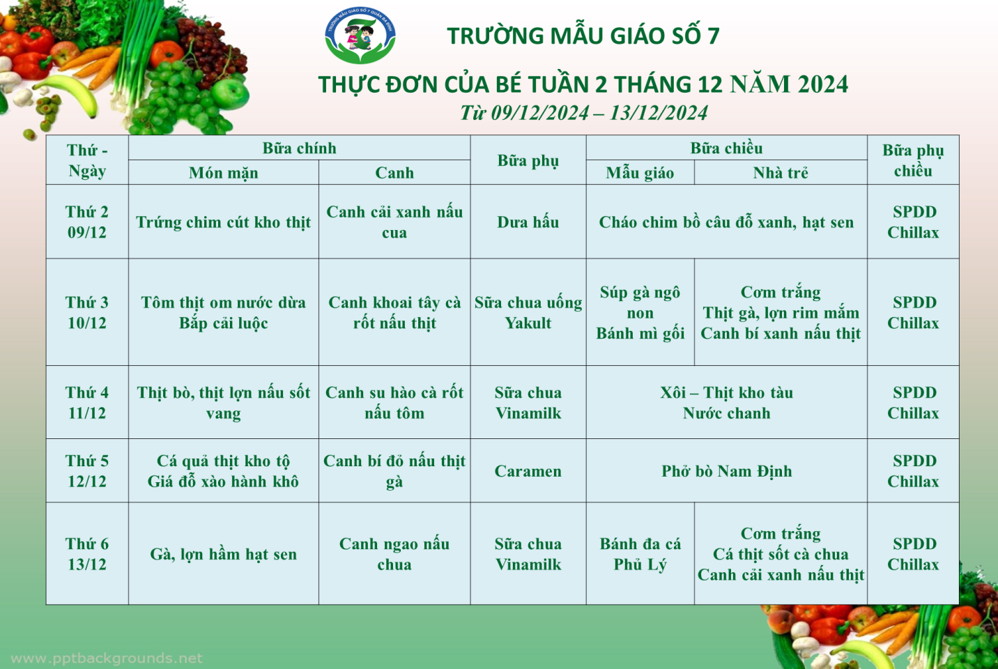 Dưới đây là thực đơn của bé tuần 2 tháng 12/2024: