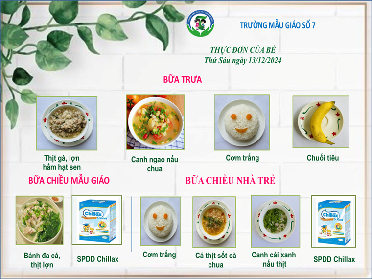 Thực đơn của các bé có thể được điều chỉnh tùy thuộc vào nguồn cung ứng thực phẩm.