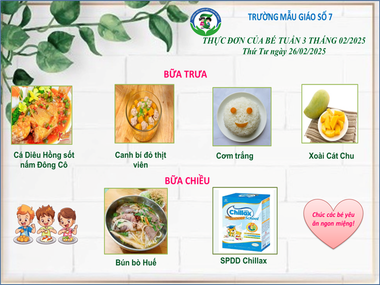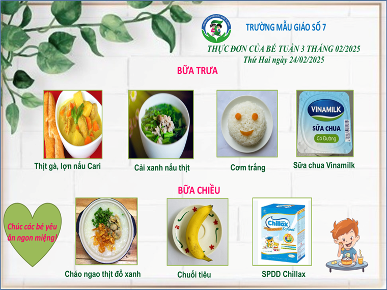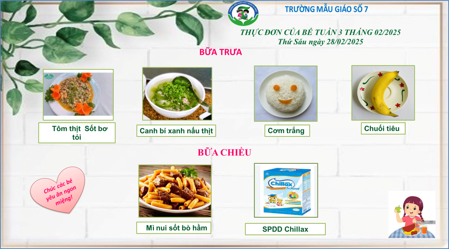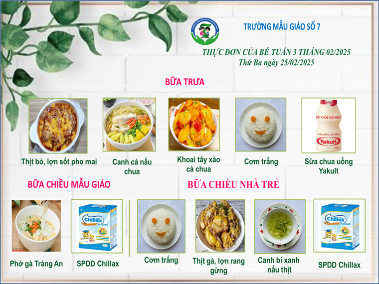Dưới đây là thực đơn của bé tuần 4 tháng 02/2025: