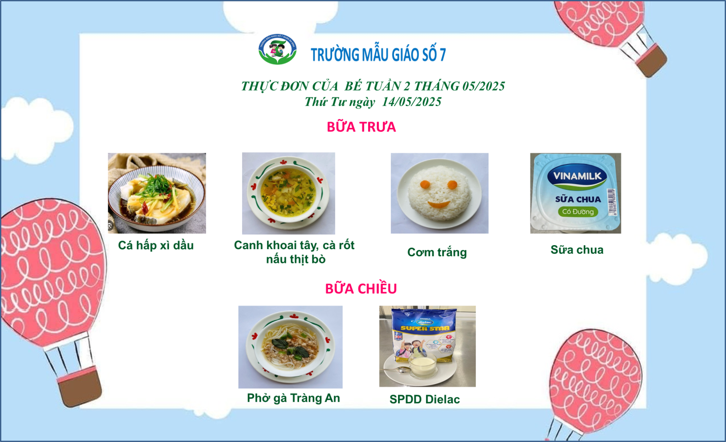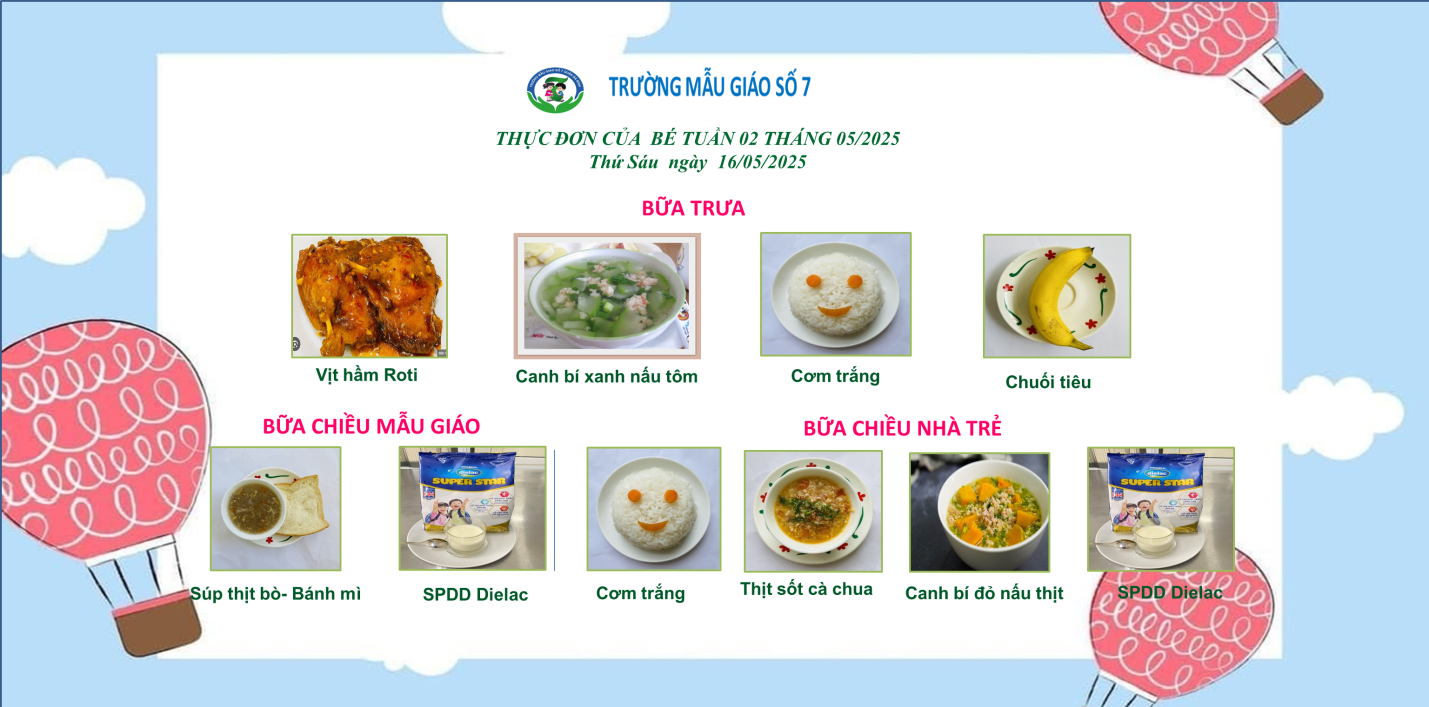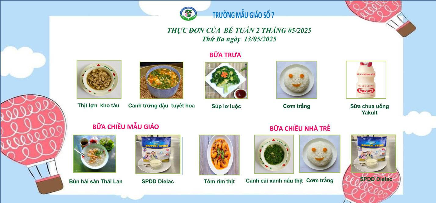 Dưới đây là thực đơn của bé tuần 2 tháng 05/2025: