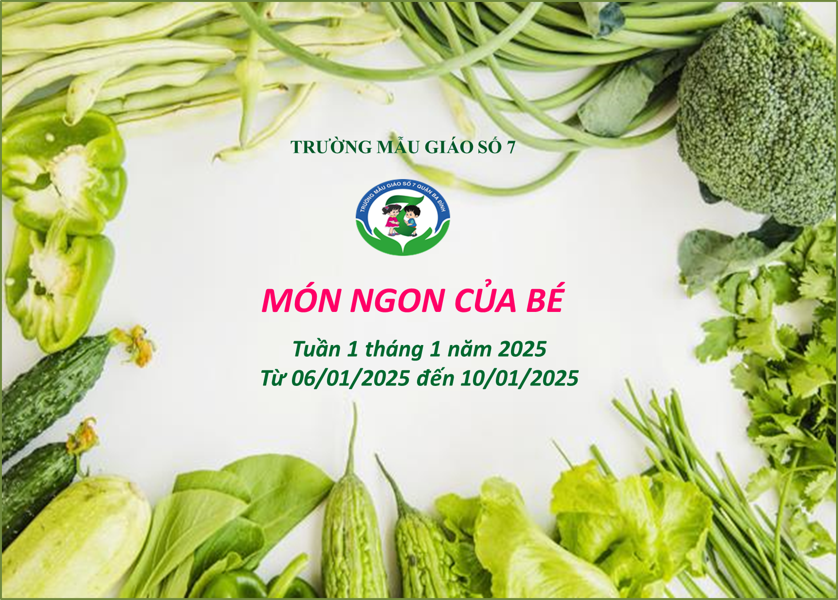 Trường Mẫu giáo Số 7 kính gửi đến quý phụ huynh thực đơn của bé tuần 1 tháng 01/2025 (từ ngày 06/01/2025 đến ngày 10/01/2025)