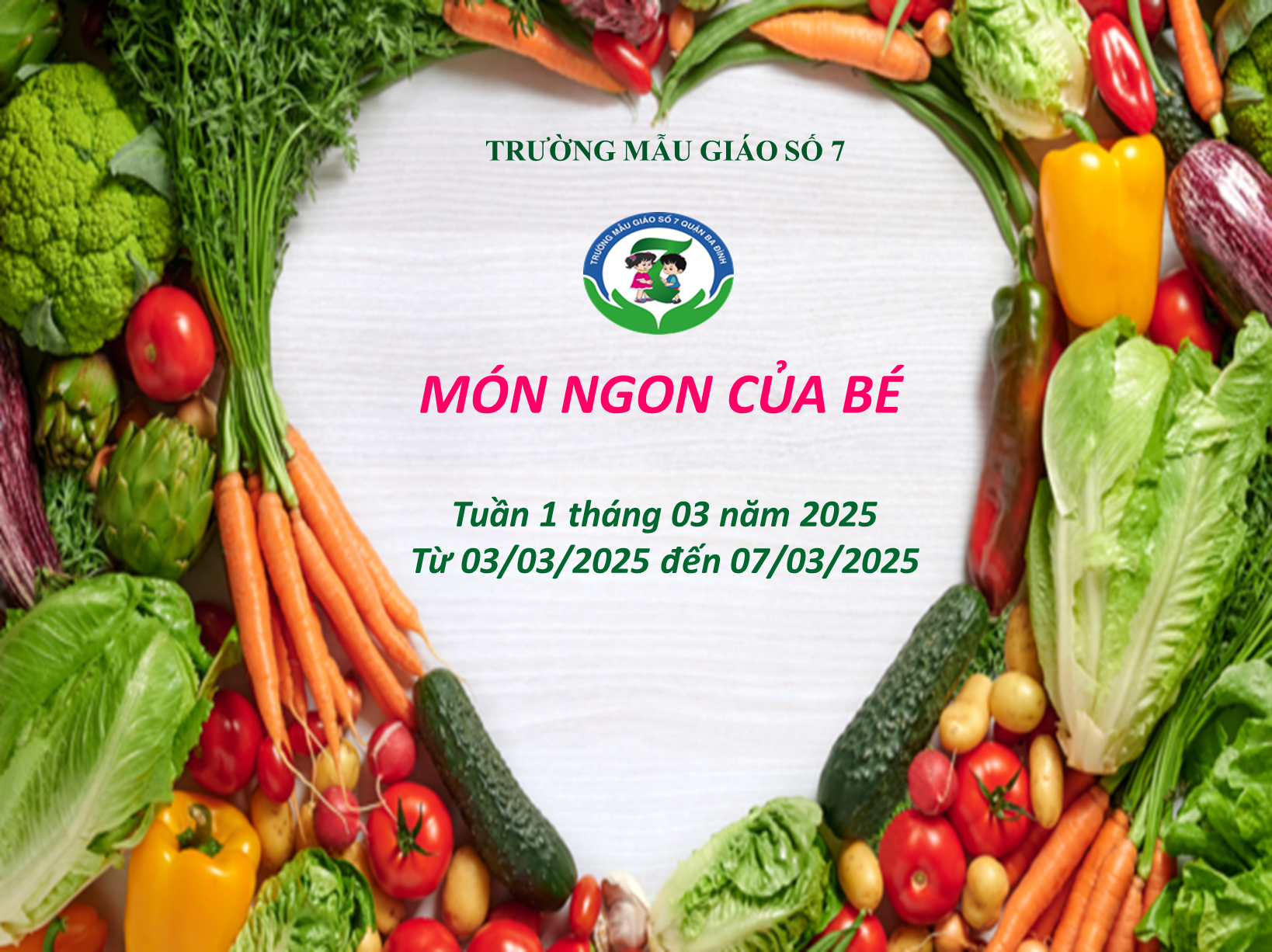 Trường Mẫu giáo Số 7 kính gửi đến quý phụ huynh thực đơn của bé tuần 1 tháng 03/2025 (từ ngày 03/03/2025 đến ngày 07/03/2025)
