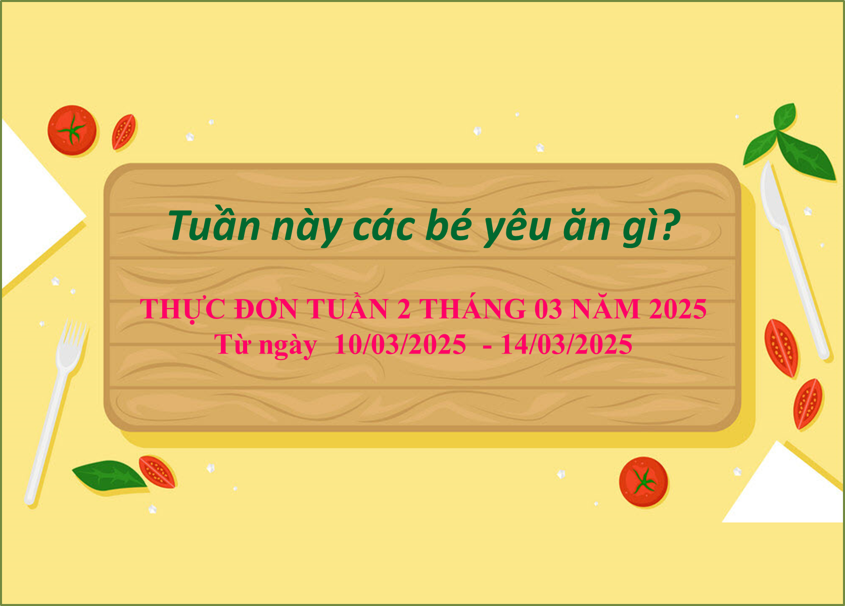 Trường Mẫu giáo Số 7 kính gửi đến quý phụ huynh thực đơn của bé tuần 2 tháng 03/2025 (từ ngày 10/03/2025 đến ngày 14/03/2025)