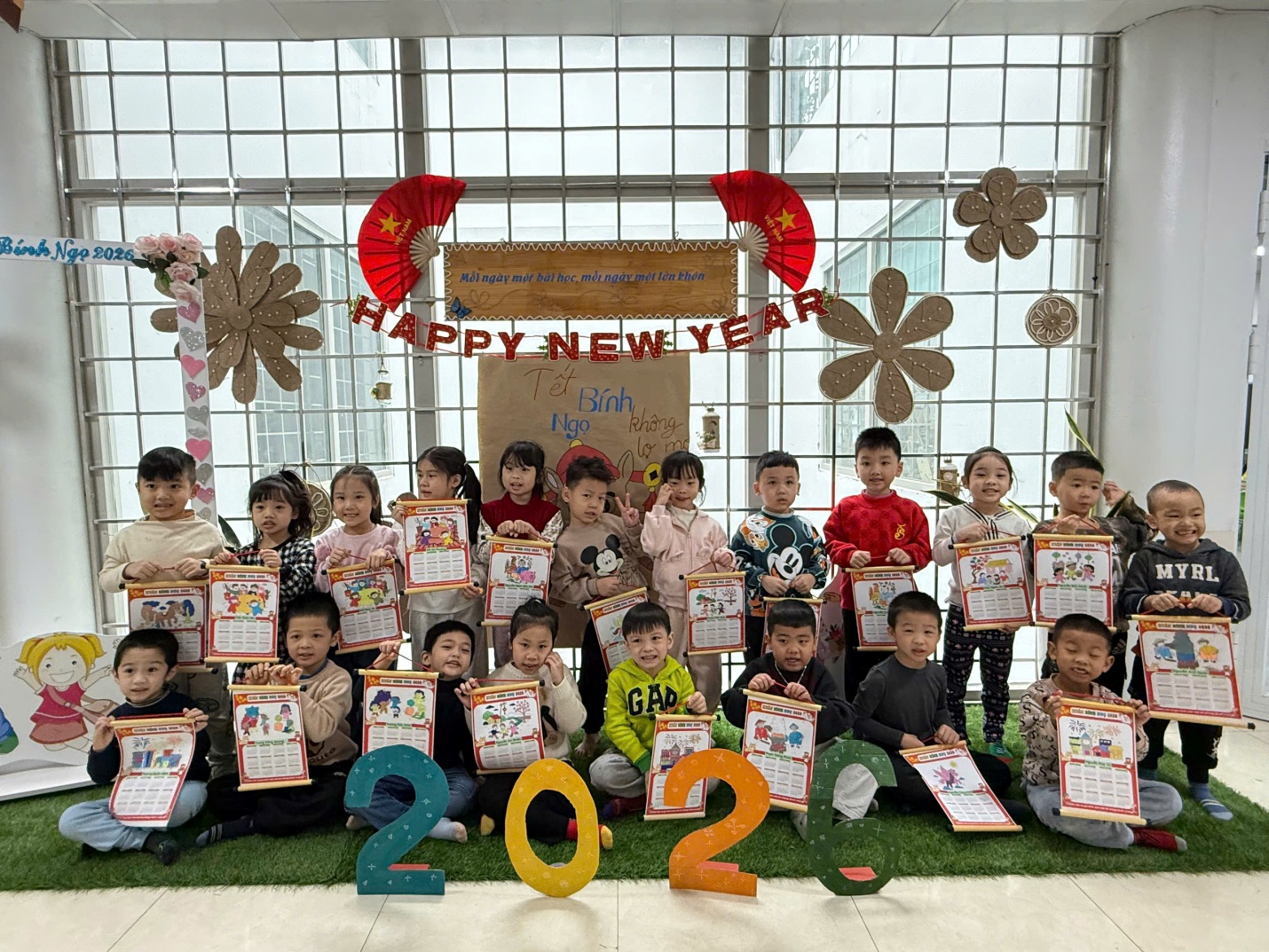 Kết thúc hoạt động, các bé rất vui khi được mang lịch năm mới 2026 do chính mình làm về tặng ông bà, bố mẹ như một món quà ý nghĩa đầu năm. Đây không chỉ là sản phẩm tạo hình đơn thuần mà còn là kỷ niệm đẹp, góp phần bồi dưỡng tình cảm gia đình và niềm vui học tập cho trẻ.