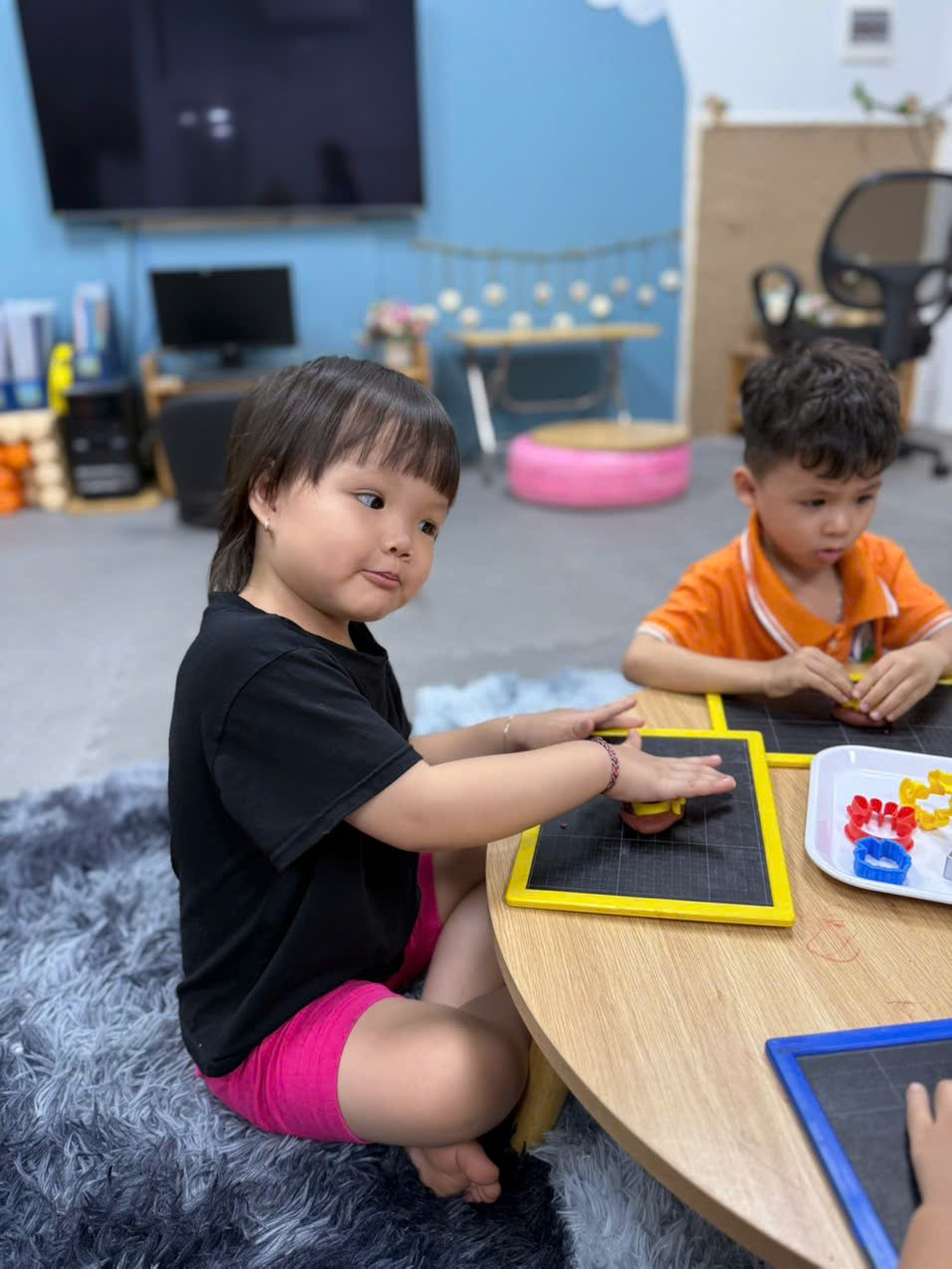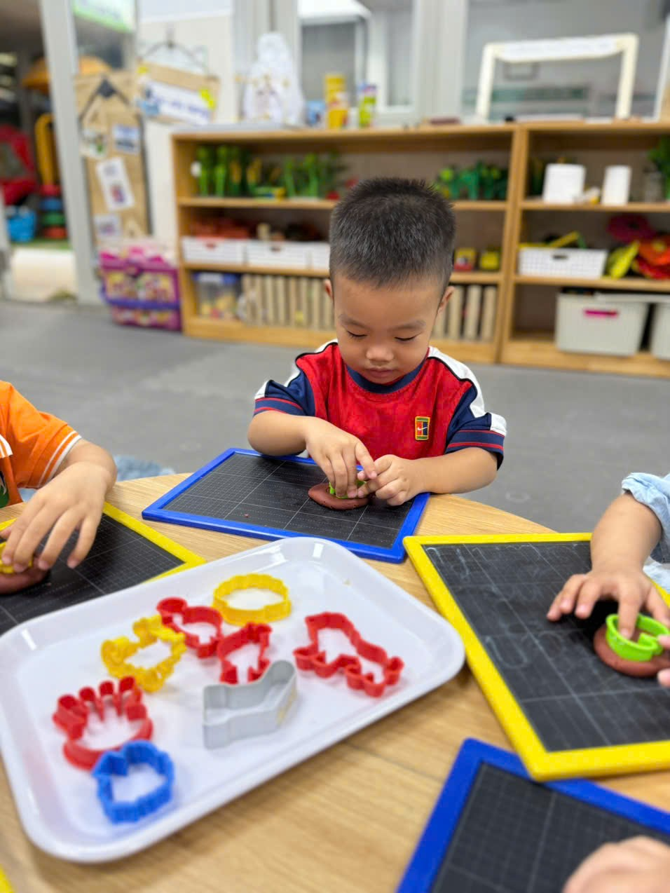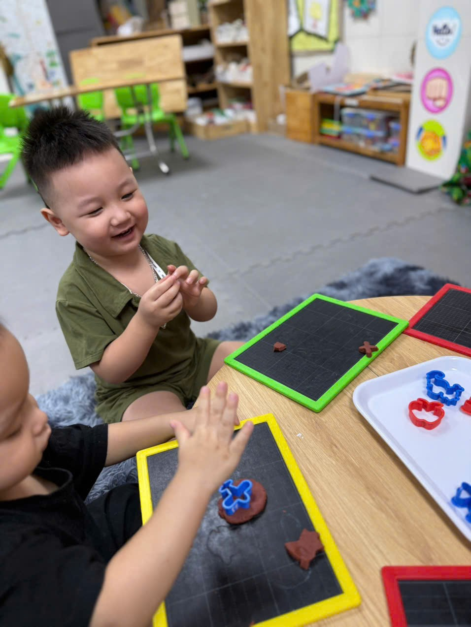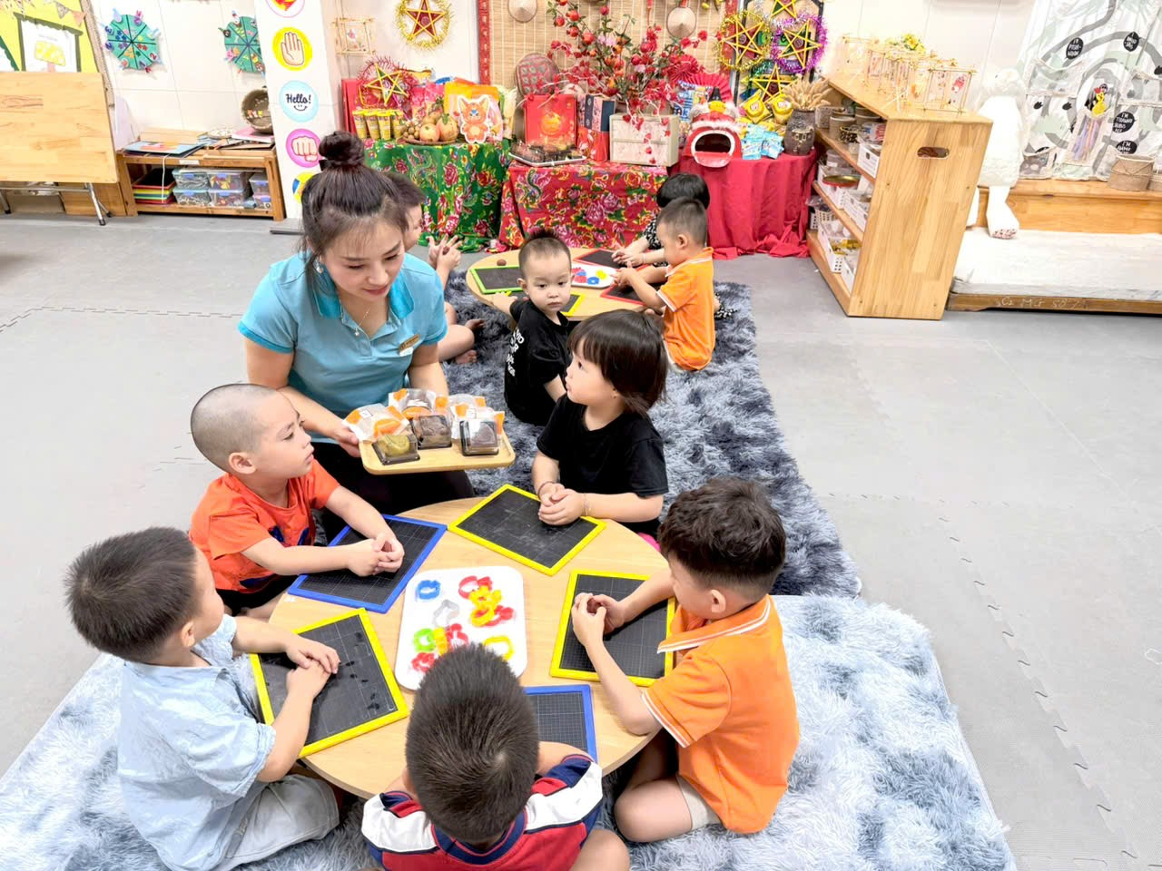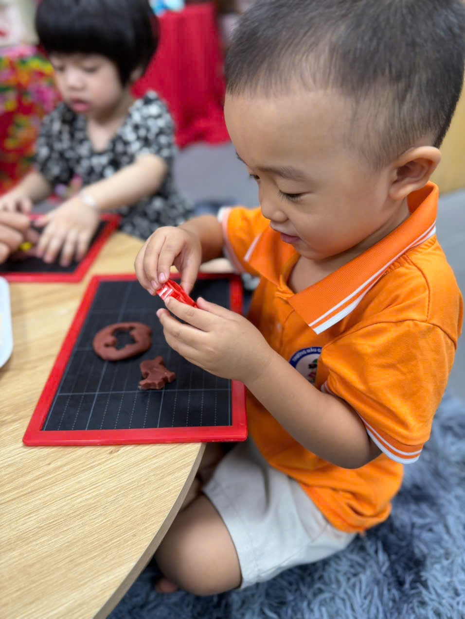 Hôm nay, các con lớp Mẫu giáo bé C1 vô cùng thích thú khi được trải nghiệm hoạt động tập nặn bột làm Bánh Trung Thu. Với đôi bàn tay bé xinh, các con cẩn thận vo tròn, ấn khuôn tạo hình cho từng chiếc bánh. Dù chưa thật khéo léo nhưng mỗi chiếc bánh đều mang dấu ấn ngộ nghĩnh, đáng yêu của các bé. Hoạt động không chỉ đem lại niềm vui mà còn giúp các con thêm hiểu và yêu nét đẹp truyền thống của Tết Trung Thu.