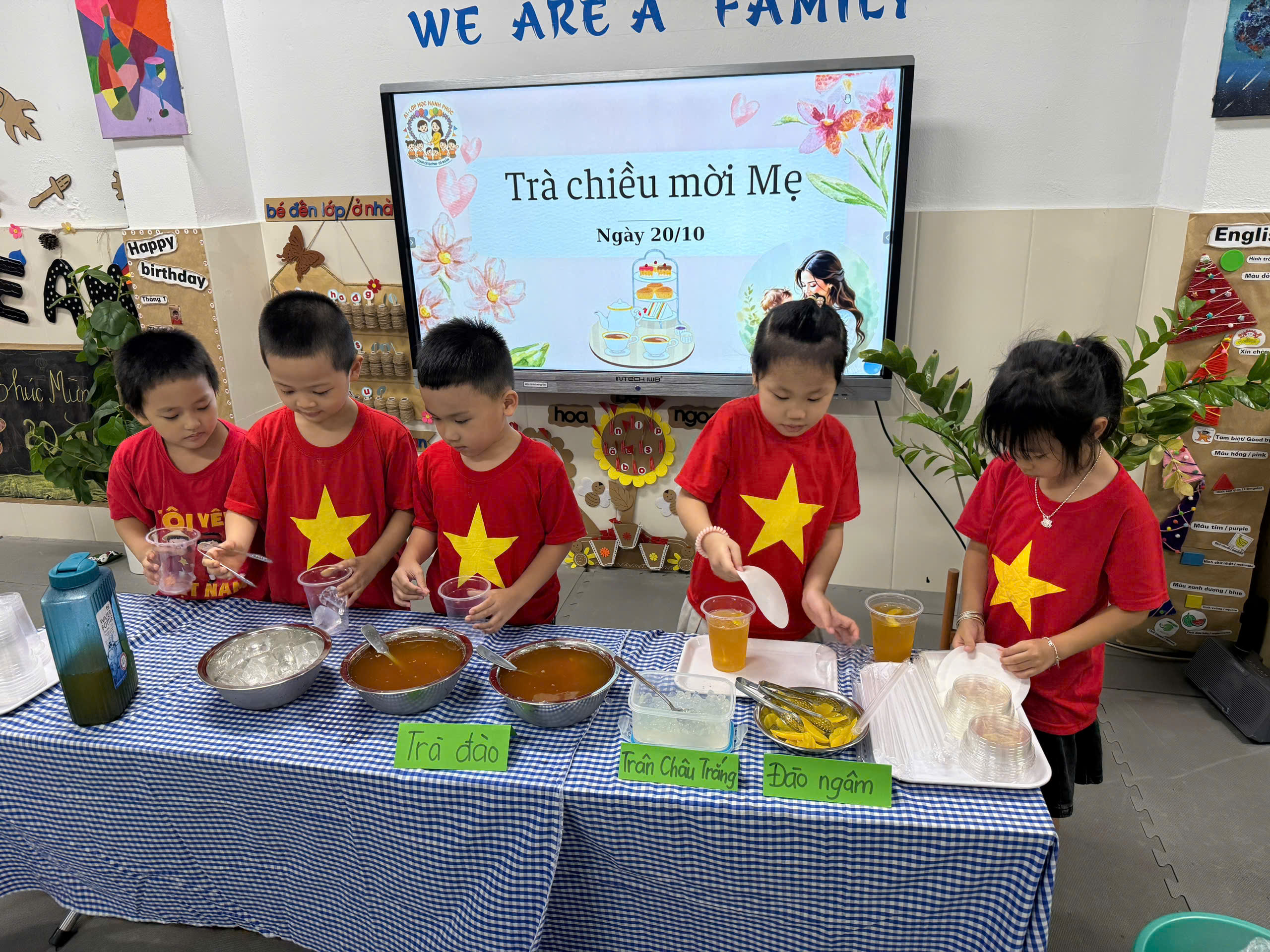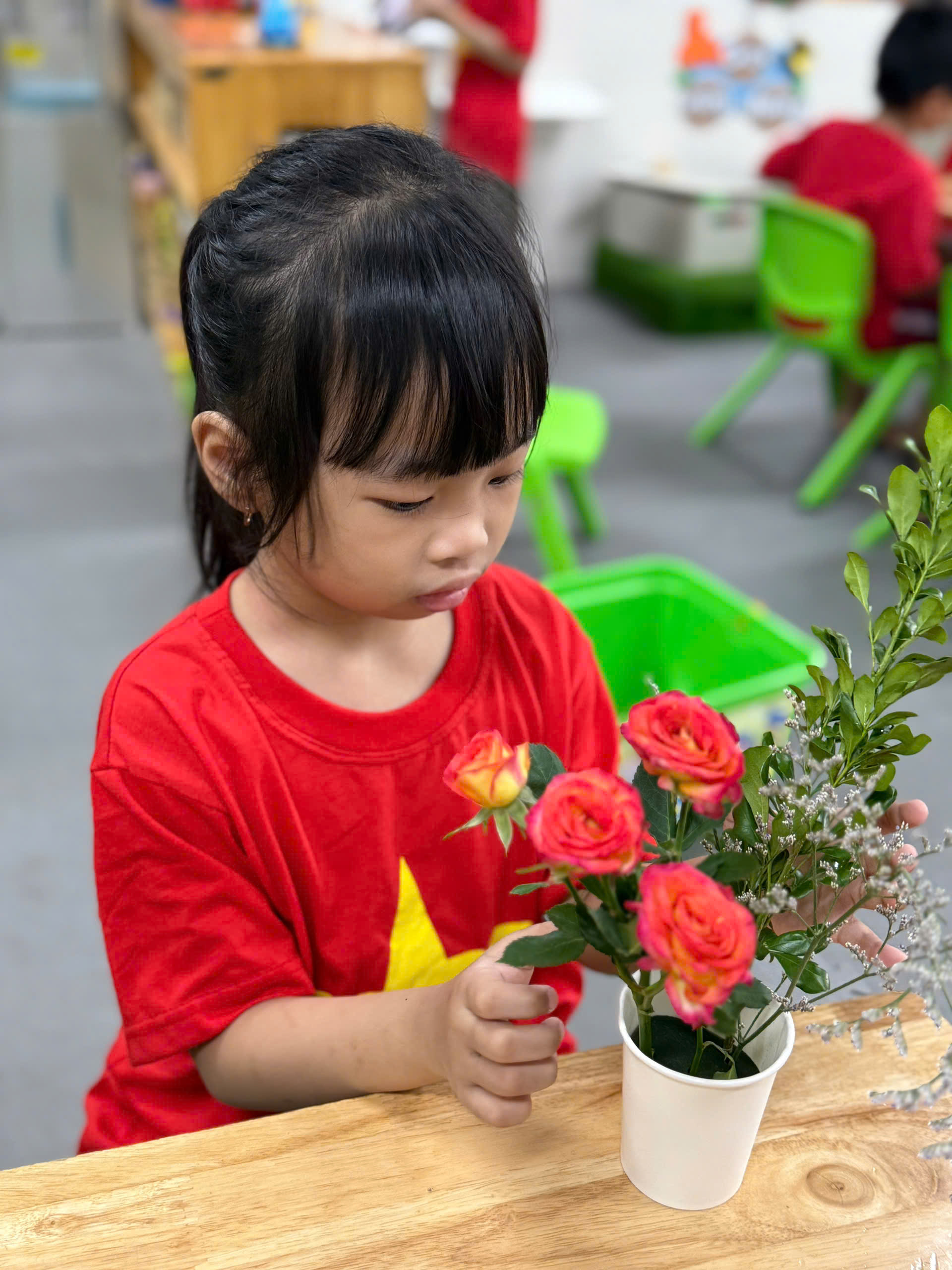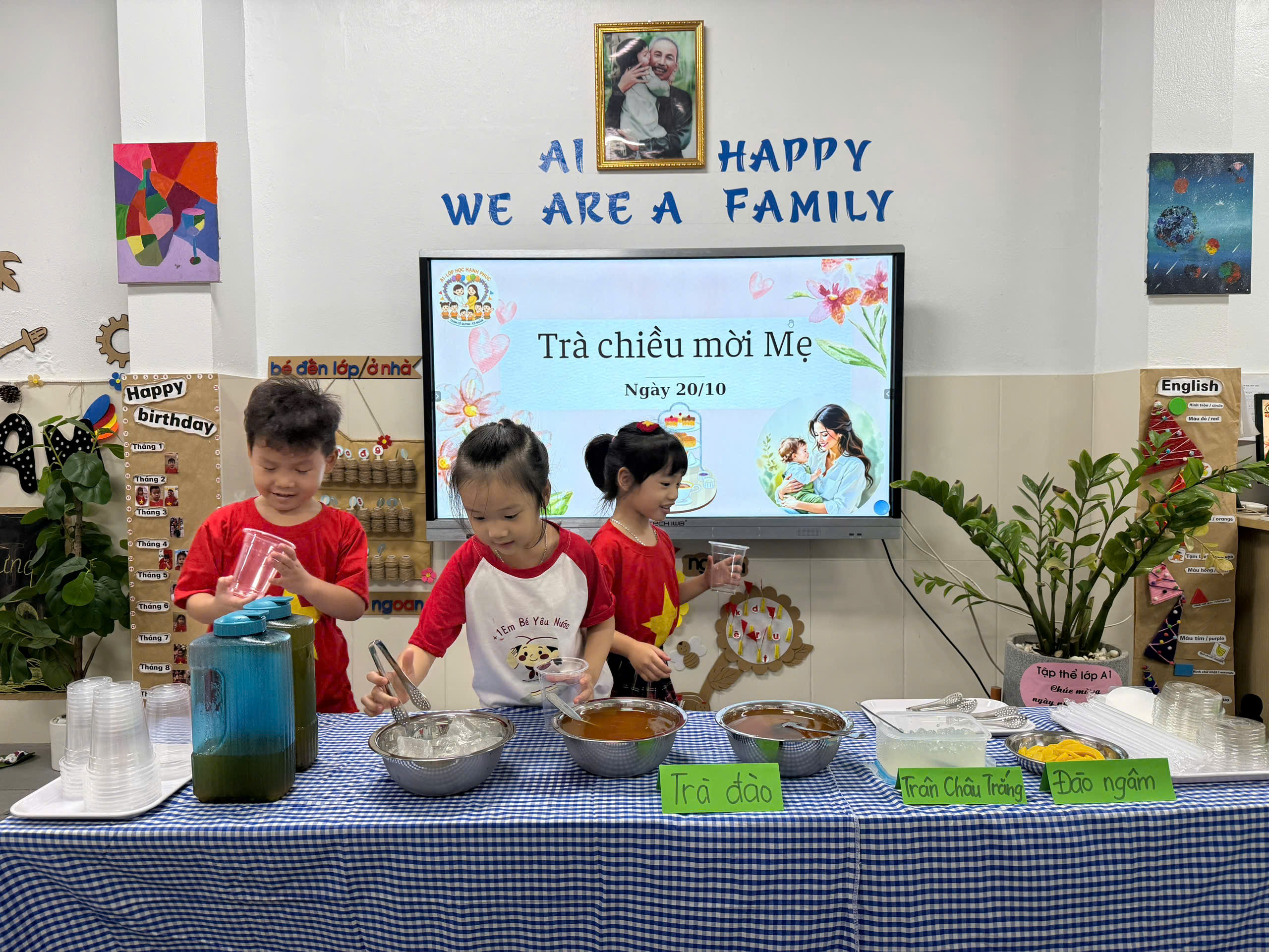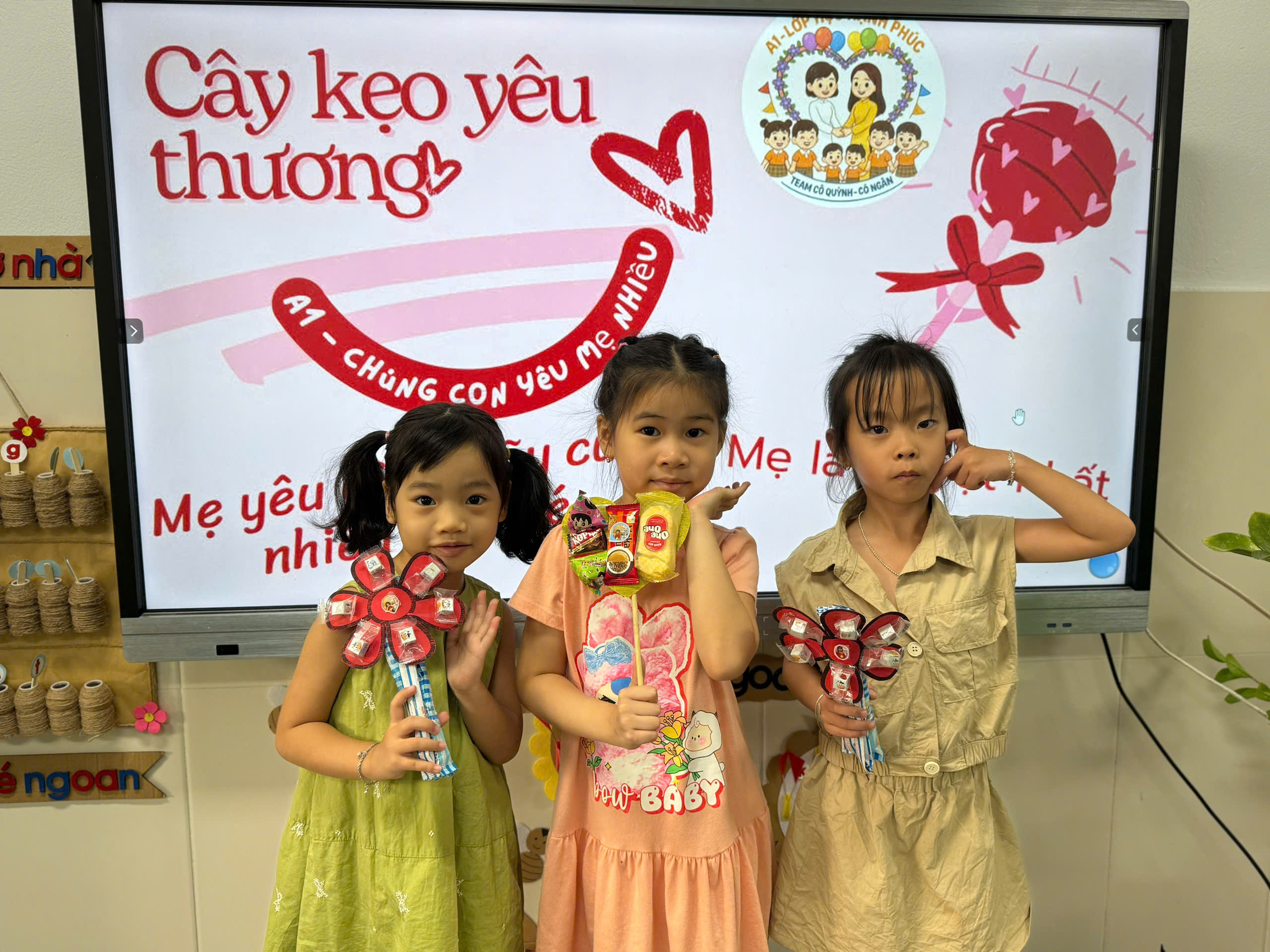 Qua chuỗi hoạt động “Cây kẹo yêu thương – Cắm hoa – Pha trà đào nhiệt đới”, các bé A1 không chỉ được rèn luyện kỹ năng, phát triển cảm xúc mà còn học được giá trị của tình yêu thương và lòng biết ơn.