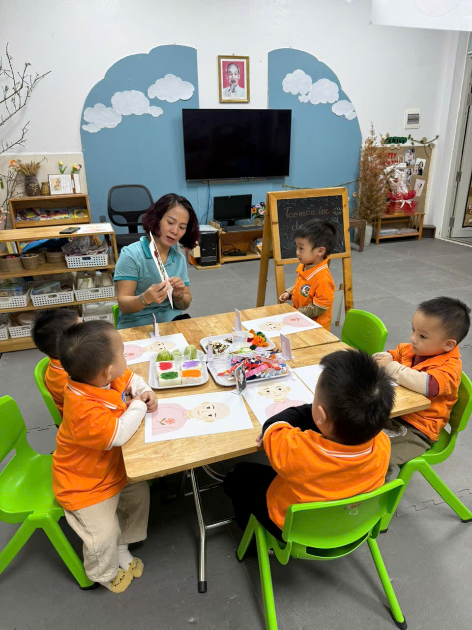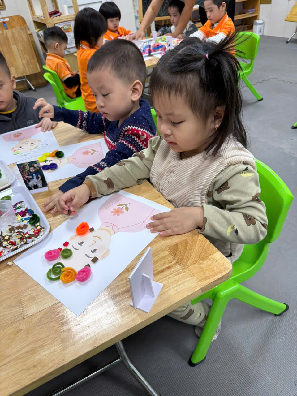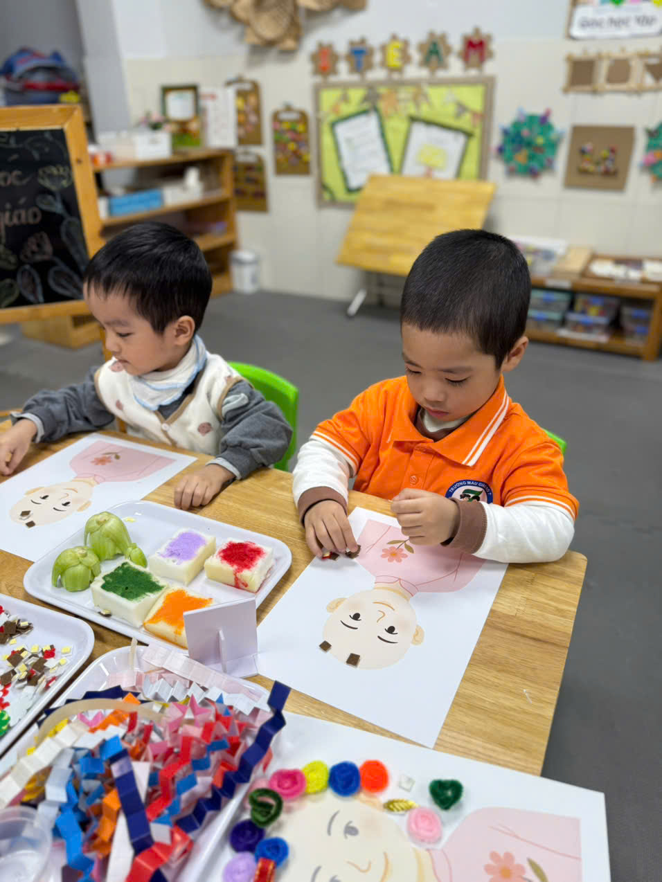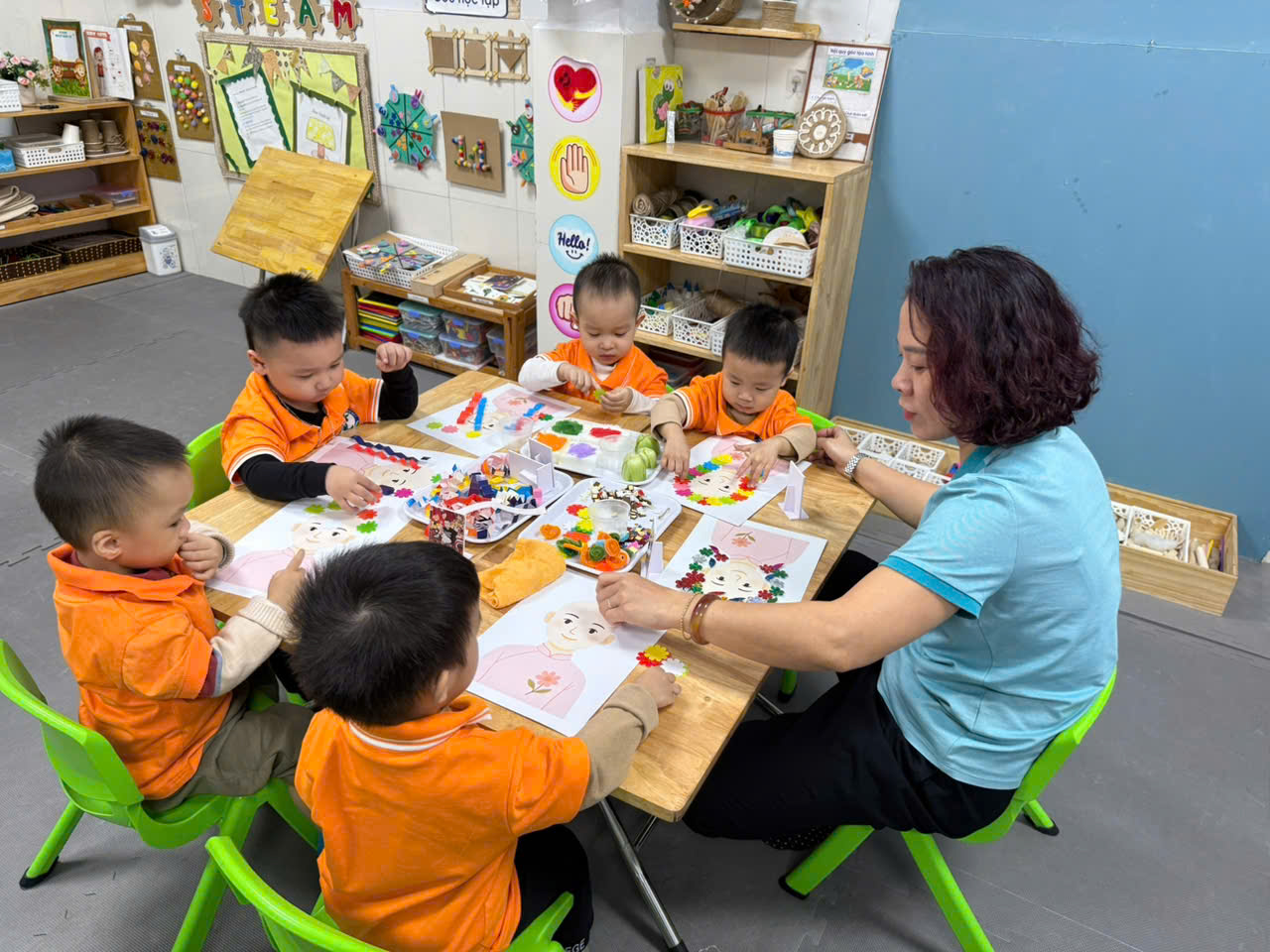 Với đôi bàn tay nhỏ xinh và sự hồn nhiên trong từng nét dán, nét in các bé đã tạo ra những “tác phẩm nghệ thuật” mang đậm dấu ấn riêng. Mỗi bức tranh không chỉ là sản phẩm sáng tạo mà còn là món quà bé gửi đến cô – người đã yêu thương, chăm sóc và dạy dỗ mình mỗi ngày. Đây chắc chắn sẽ là những kỷ niệm thật đẹp và ấm áp trong hành trình yêu thương giữa cô và trò.