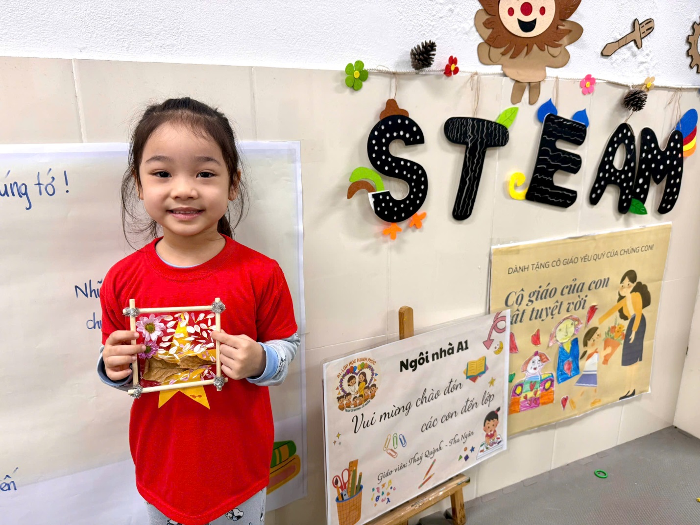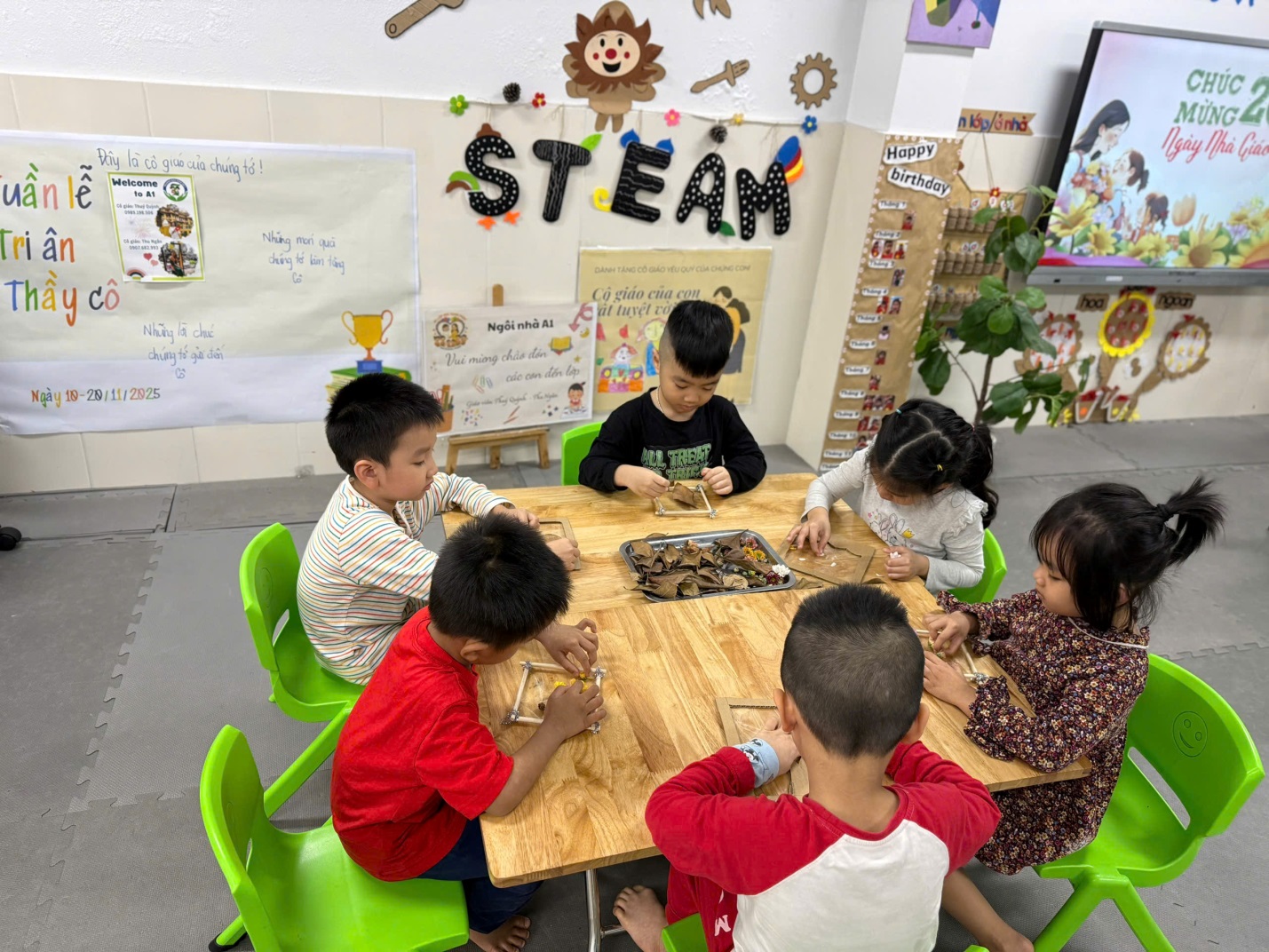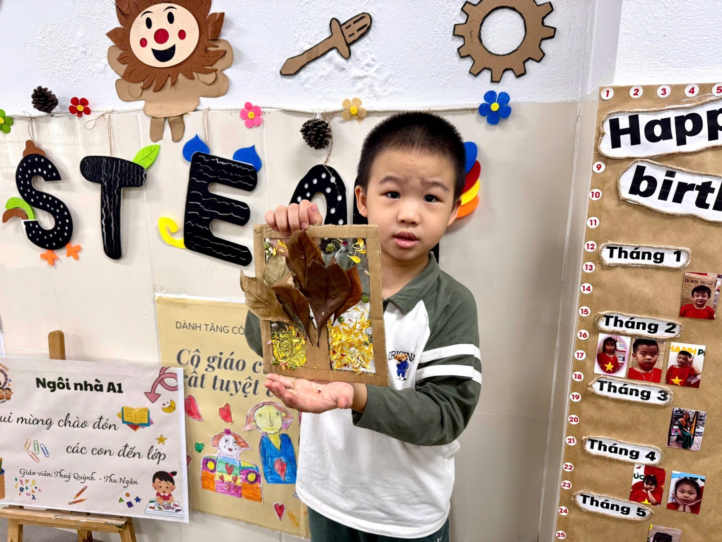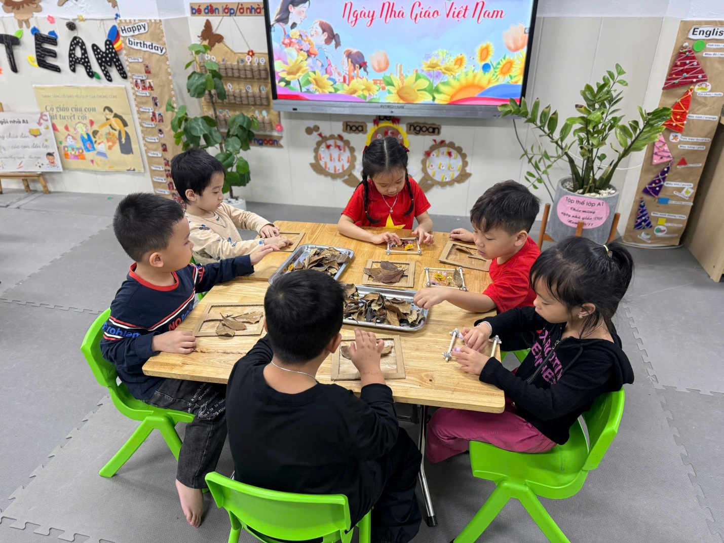 Hưởng ứng không khí rộn ràng hướng tới ngày Nhà giáo Việt Nam 20 tháng 11, các bạn nhỏ lớp A1 đã cùng tham gia hoạt động sáng tạo làm tranh từ hoa và lá cây khô theo phương pháp giáo dục Reggio Emilia. Đây không chỉ là một trải nghiệm nghệ thuật mà còn là cơ hội để trẻ gửi gắm tình cảm yêu thương chân thành đến những người thầy cô đã luôn chăm sóc, dạy dỗ mình mỗi ngày.