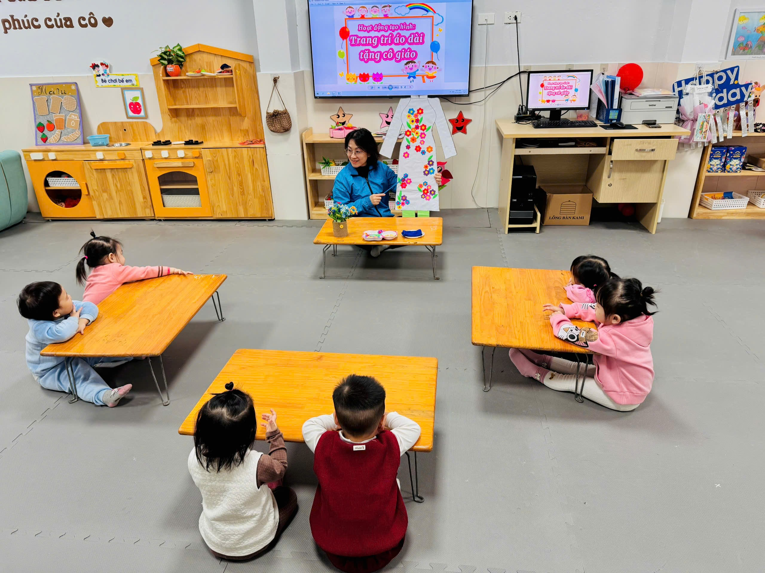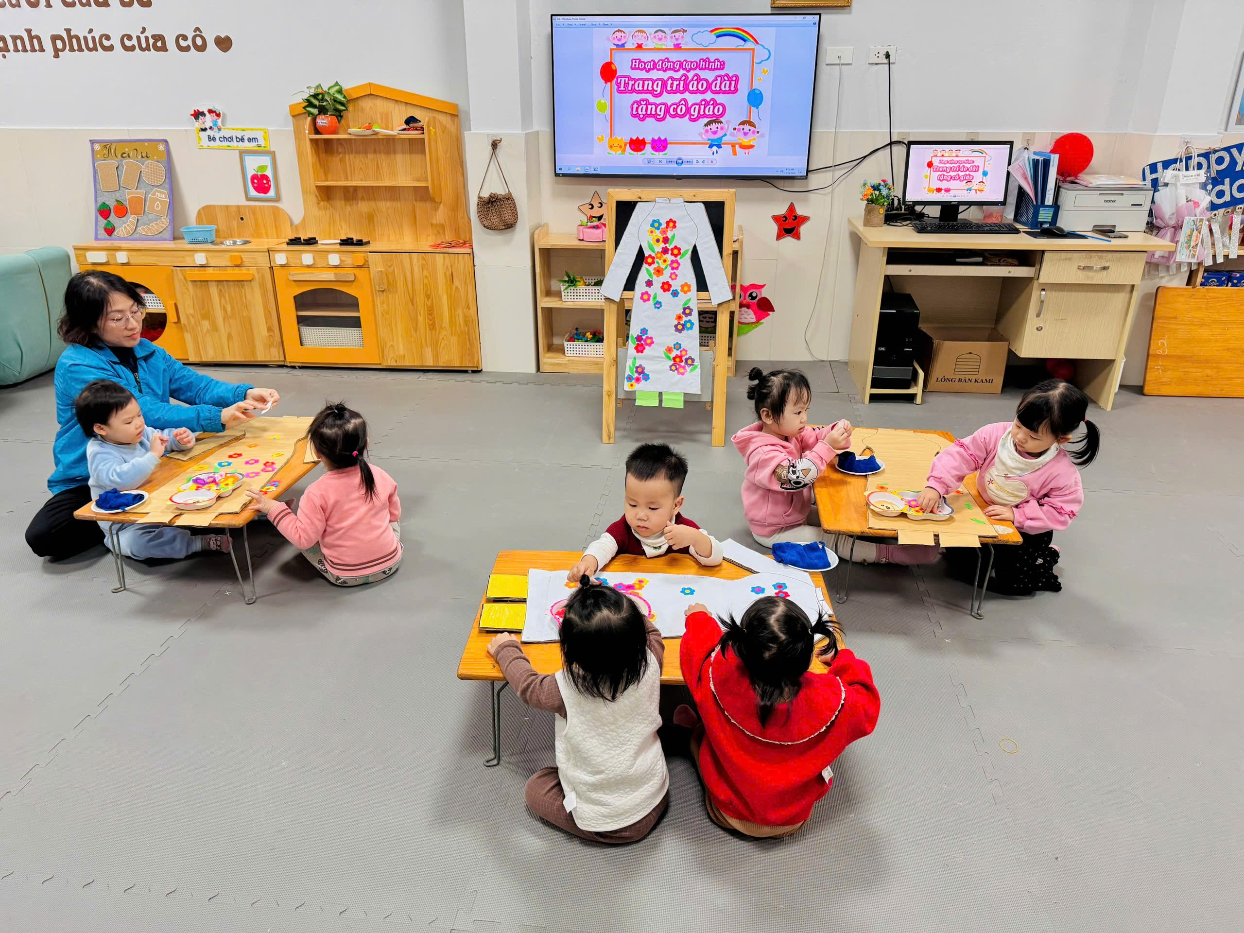 Cùng các bé lớp nhà trẻ D2 tham gia hoạt động tạo hình: “Trang trí áo dài tặng cô giáo”