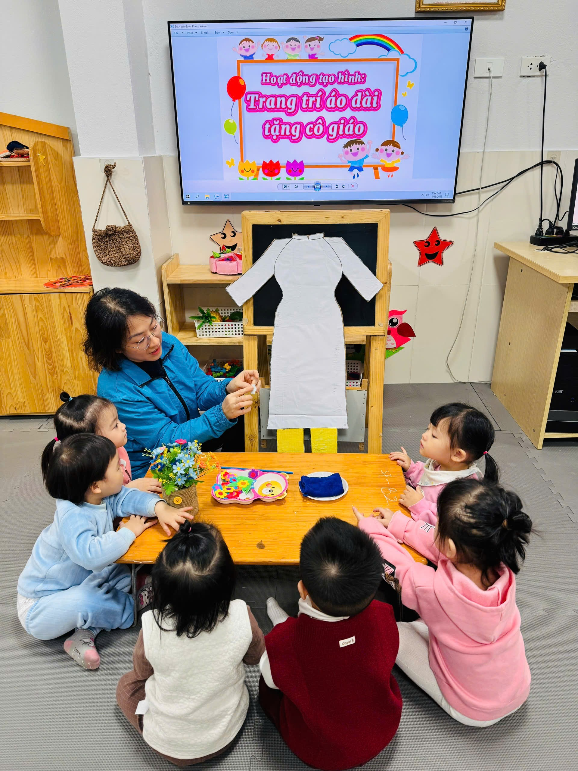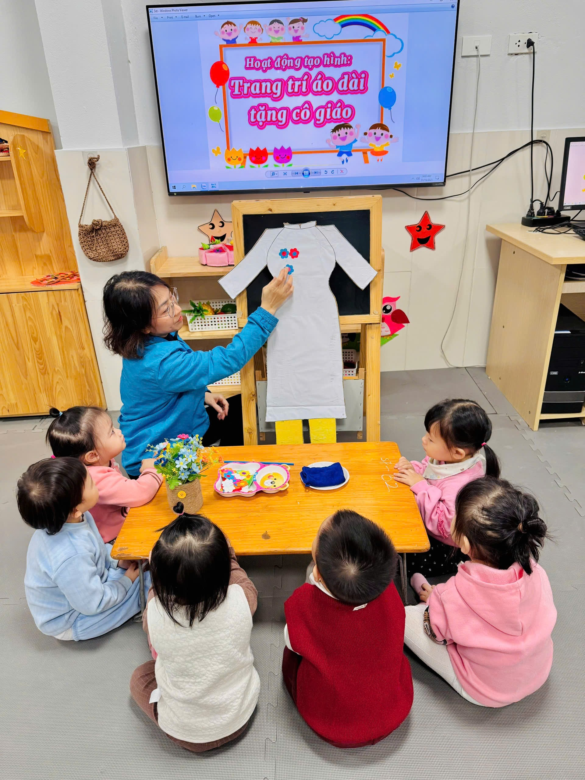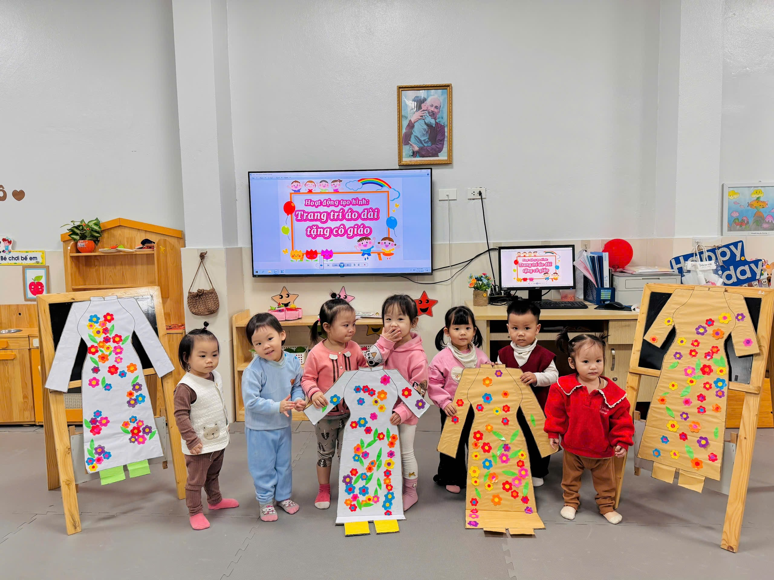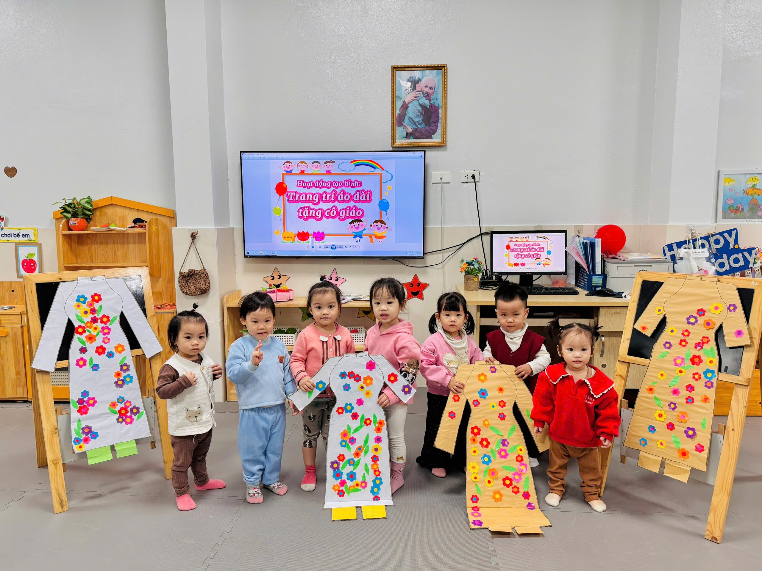 Hôm nay ngày 19/11, các bé lớp nhà trẻ D2 đã cùng nhau tham gia hoạt động tạo hình vô cùng thú vị với chủ đề: “Trang trí áo dài tặng cô giáo”.