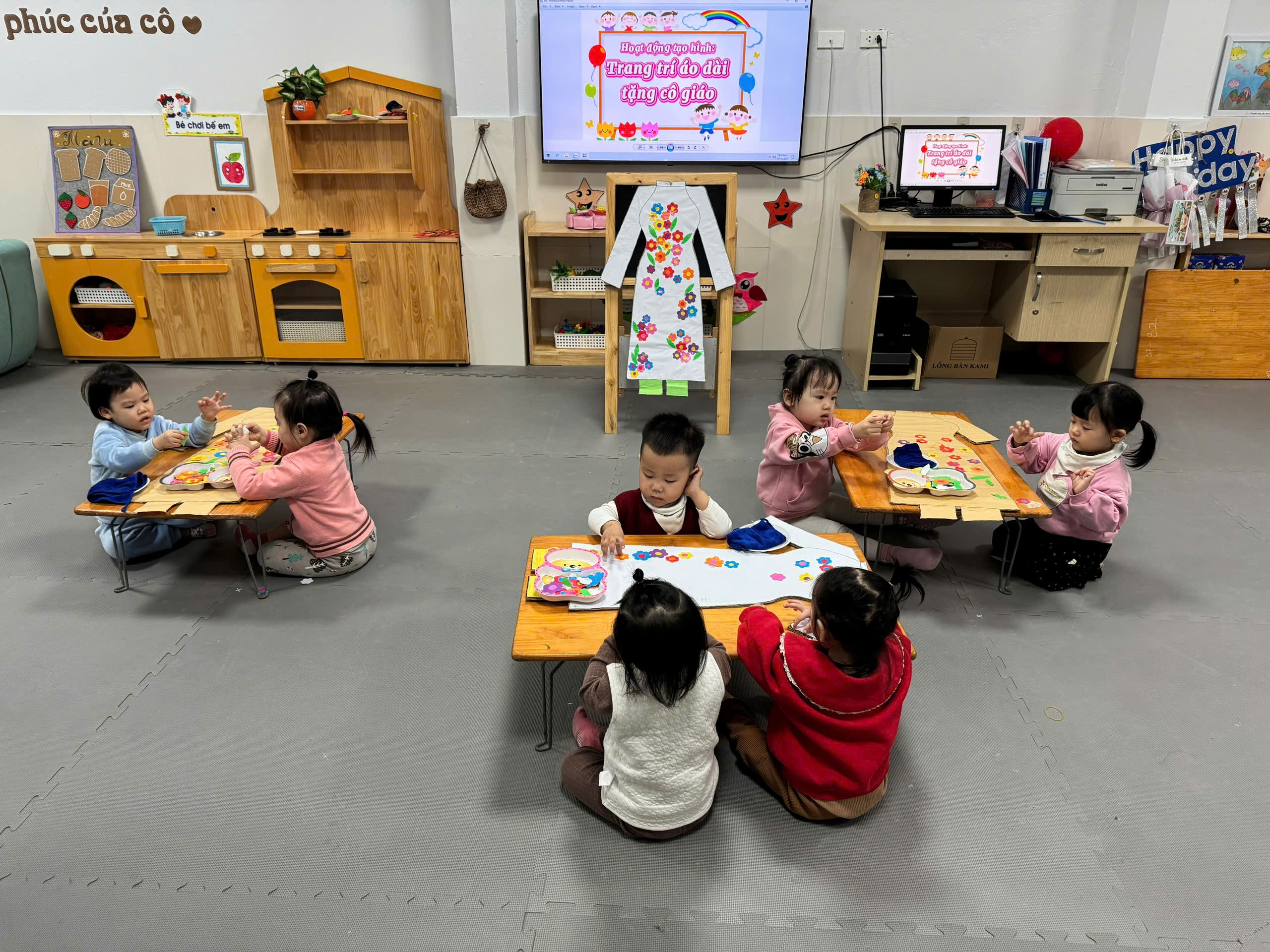 Trong quá trình hoạt động, các bé được rèn đôi tay khéo léo, khả năng nhận biết màu sắc, hình dạng, đồng thời thể hiện sự sáng tạo và tình cảm của mình dành tặng cô giáo.