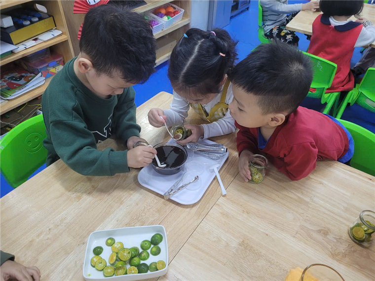 Trẻ trải nghiệm làm quất ngâm mật ong: