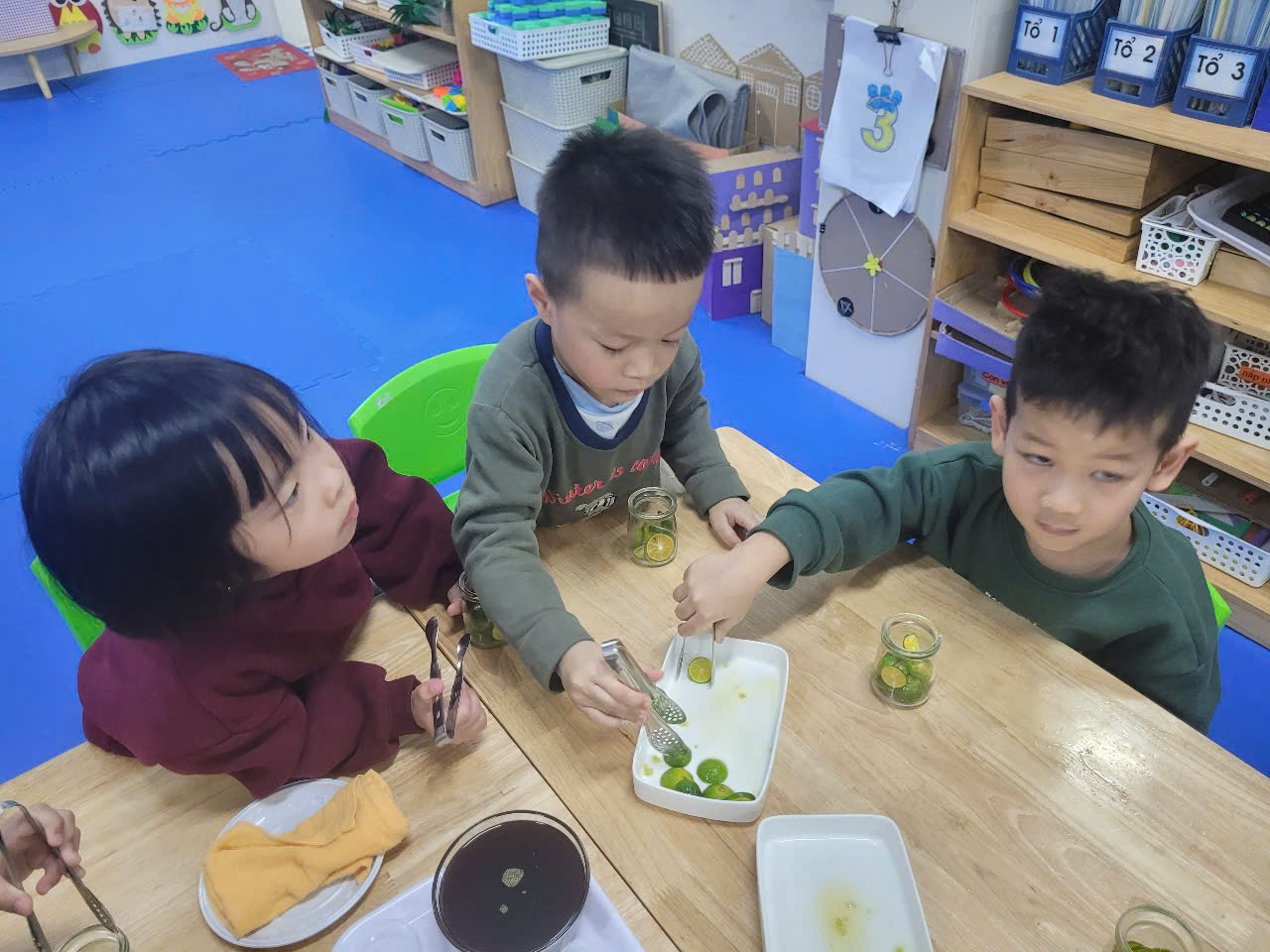 Quất ngâm mật ong là một hoạt động thú vị, giúp bé khám phá nguyên liệu thiên nhiên, rèn luyện kỹ năng và hiểu hơn về giá trị của thực phẩm. Cô trò lớp B đã có buổi trải nghiệm với nhiều khâu chuẩn bị nguyên liệu.