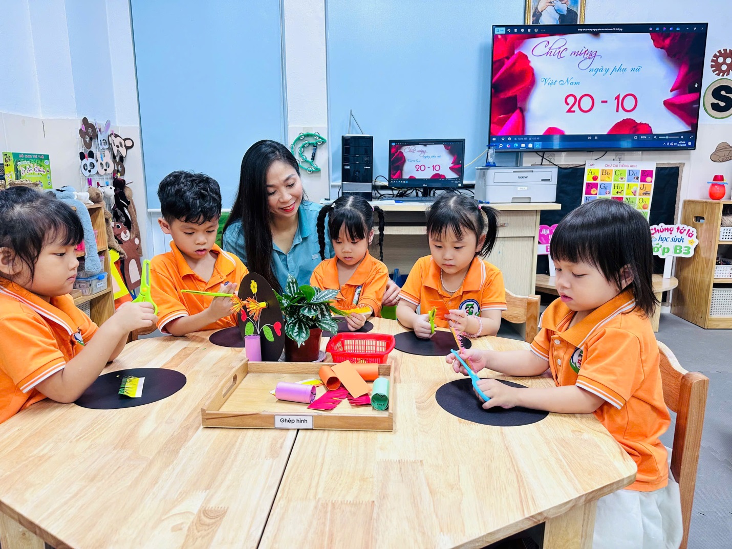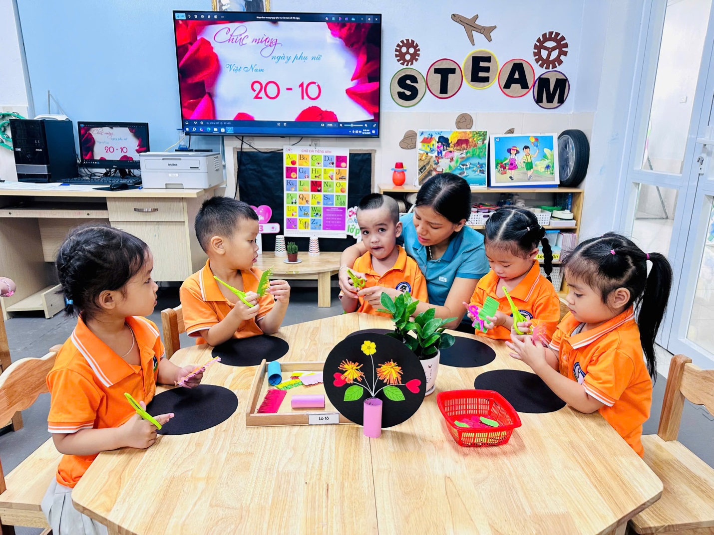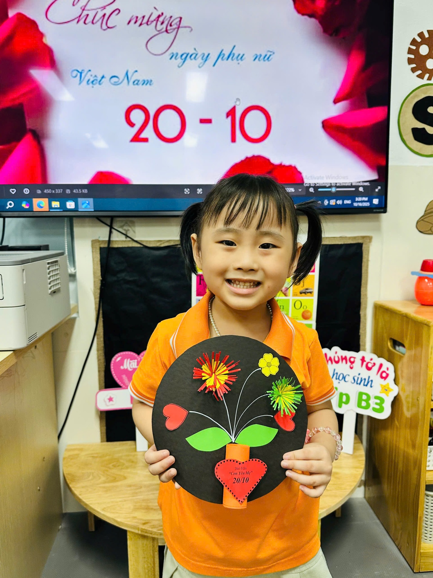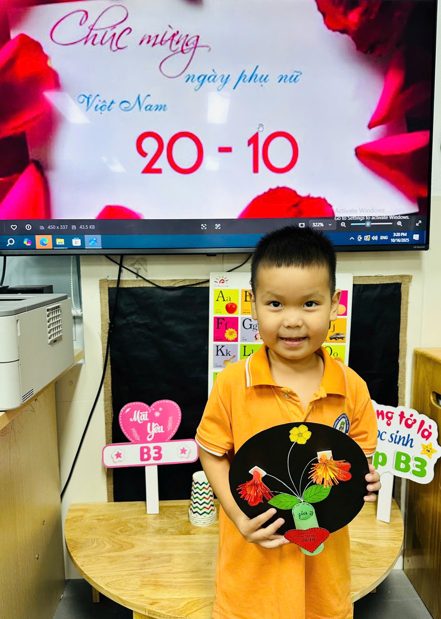 Nhân dịp ngày Phụ nữ Việt Nam, cô và trò lớp MGN B3 đã có buổi trải nghiệm thực hành làm thiệp hoa tặng mẹ. Qua hoạt động trải nghiệm trẻ biết thể hiện tình cảm yêu thương với bà, mẹ, cô giáo và các bạn gái. Trẻ biết nói những lời chúc tốt đẹp với người thân. Trẻ thể hiện tình cảm bằng việc tặng những món quà nho nhỏ do các con tự tạo. Sau đây là một số hình ảnh của các con rất hào hứng khi được làm những chiếc thiệp hoa xinh xắn: