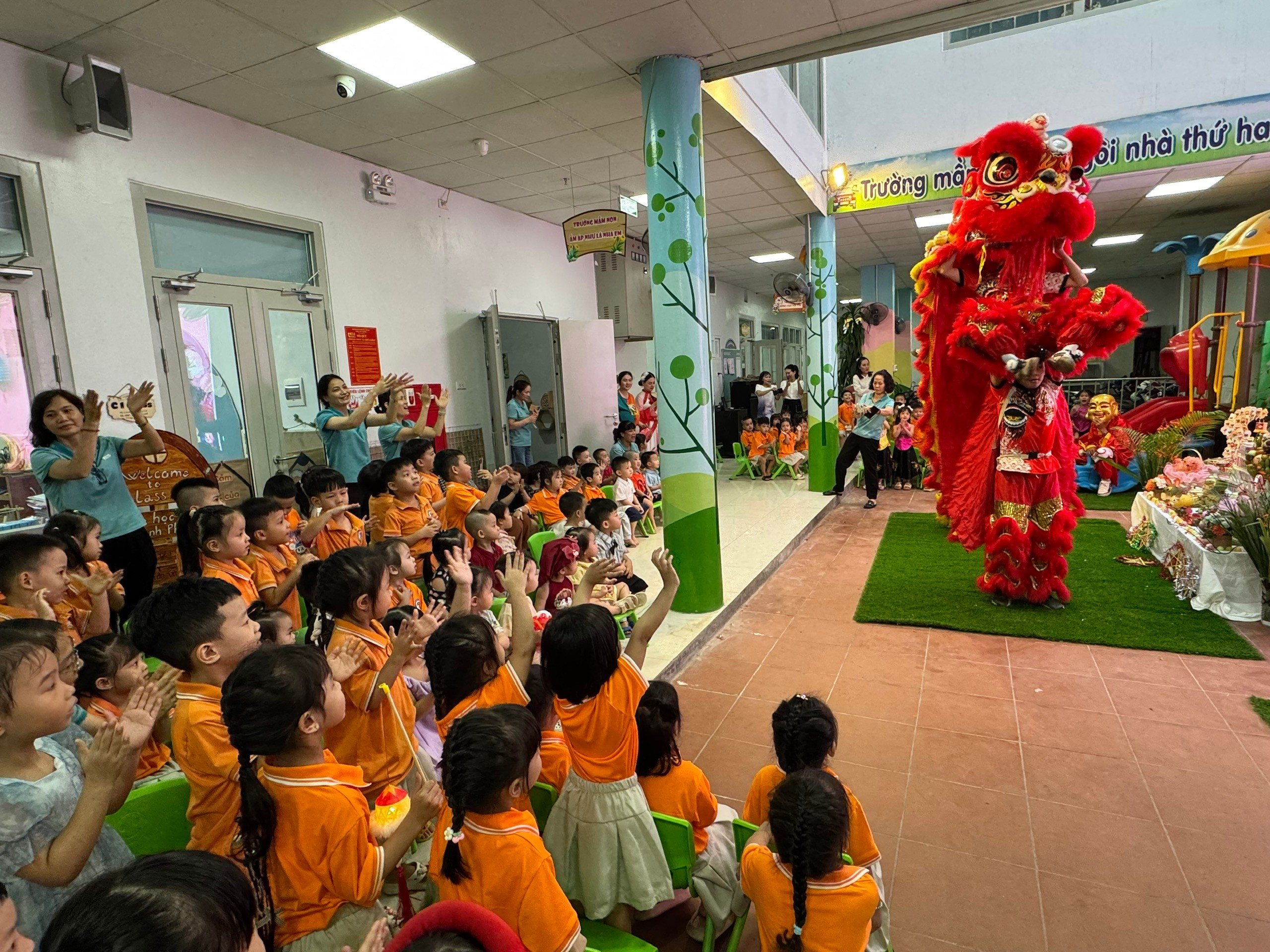 Mở đầu là hoạt động được các bé mong chờ nhất chính là tiết mục múa lân. Các bé đã vô cùng hào hứng khi nhìn thấy “chú lân” nhảy múa vui nhộn, uyển chuyển. Tiếng trống rộn ràng, tiếng hò reo, những màn giao lưu các bé với chị hằng, chú cuội và tiết mục biểu diễn của các anh chị vang khắp sân trường, tạo nên không khí tưng bừng, náo nhiệt. Nhưng ánh mắt ngạc nhiên, nụ cười hồn nhiên của các bé chính là món quà ý nghĩa nhất trong ngày hội.