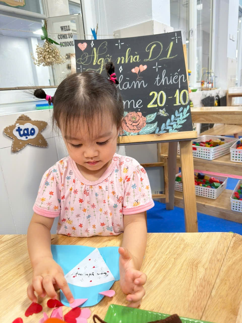 ❤️Hòa chung không khí kỉ niệm 20/10 các bé lớp D1 đã có hoạt động trải nghiệm “Trang trí bưu thiếp “ tặng bà tặng mẹ , các cô,các chị và các bạn gái.