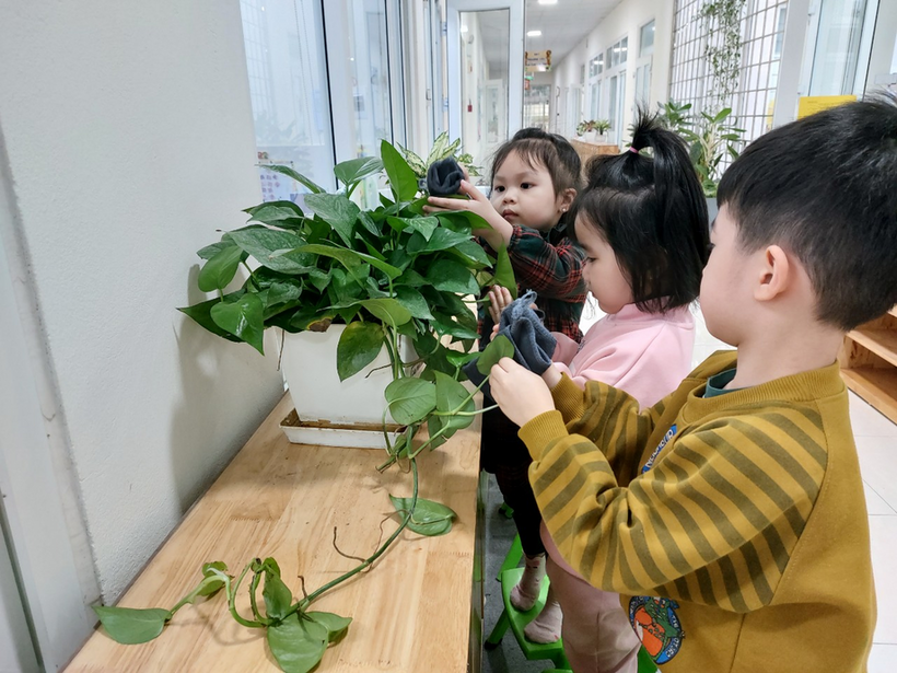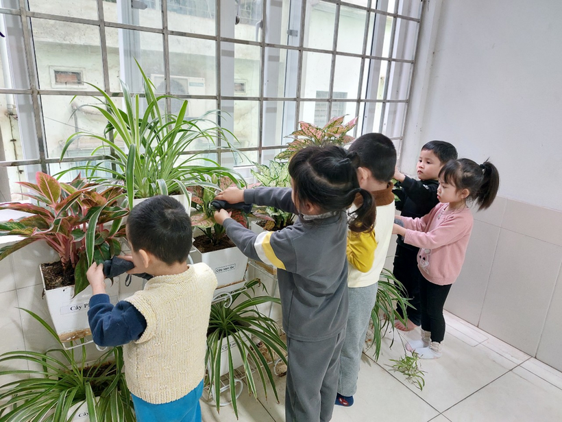 Hoạt động dạy trẻ có kỹ năng chăm sóc cây xanh cũng là một hoạt động rất quan trọng. Qua đó trẻ sẽ có kỹ năng chăm sóc cây xanh xung quanh lớp học, trường học và gia đình trẻ yêu quý cây xanh hơn