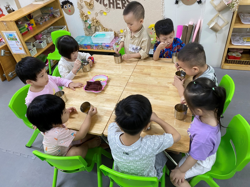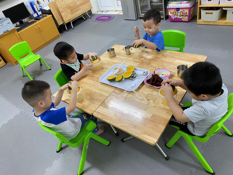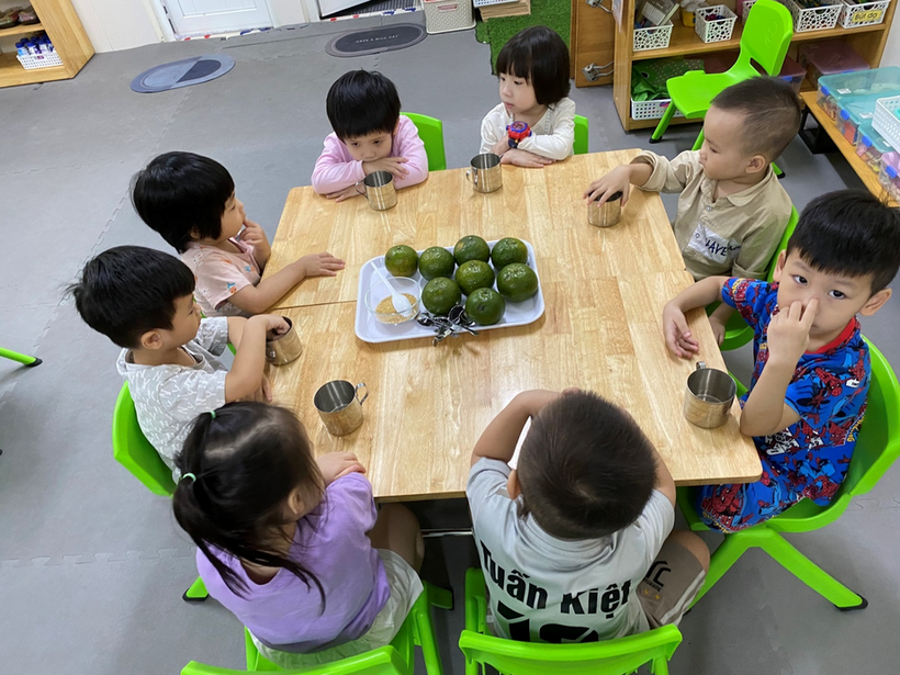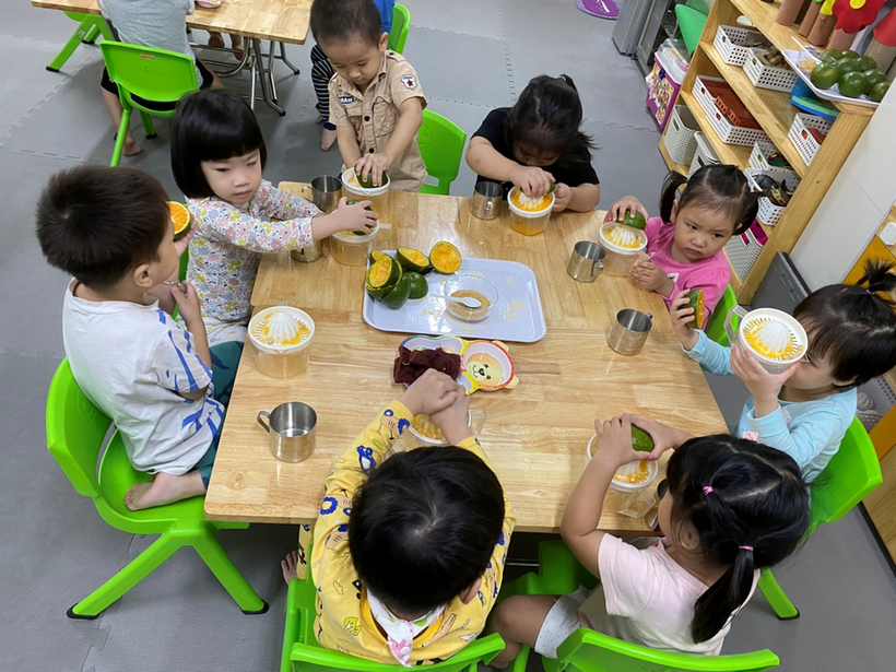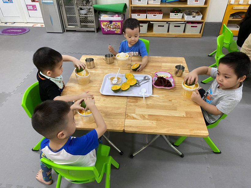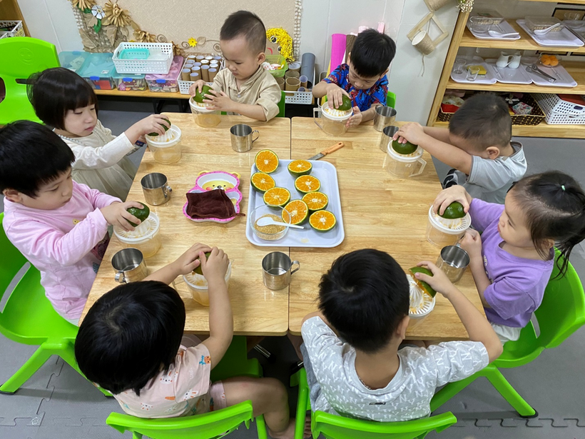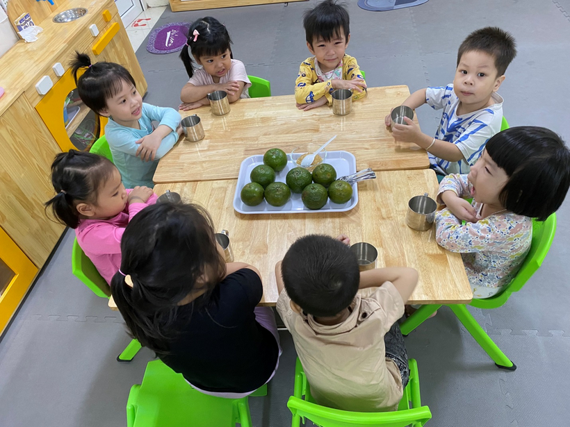 Nước cam là một loại đồ uống rất tốt cho cơ thể. Ở nhà các bố mẹ thường vắt cho các con uống. Ngày hôm nay các bố mẹ chắc sẽ sẽ rất ngạc nhiên và vui vì con mình được tự tay vắt cam dưới sự hướng dẫn của cô giáo.