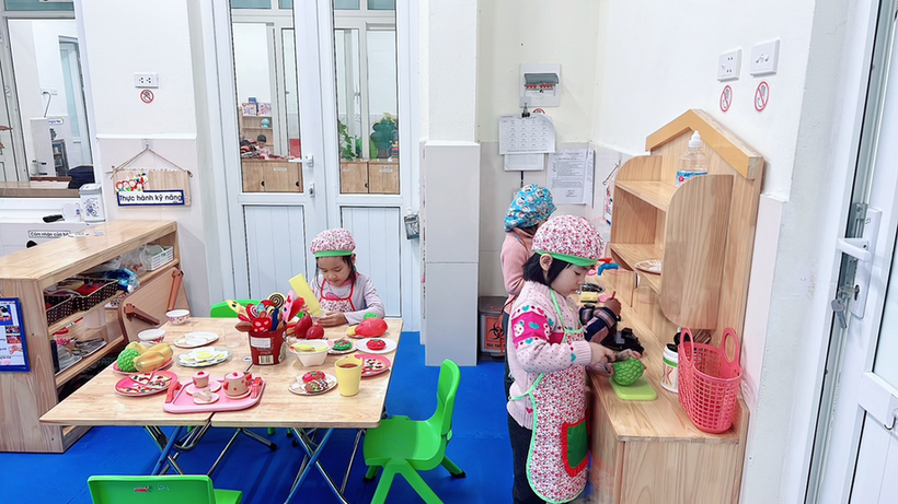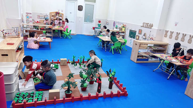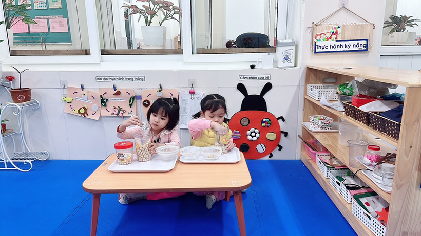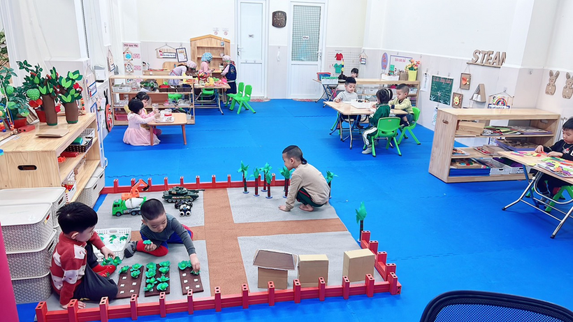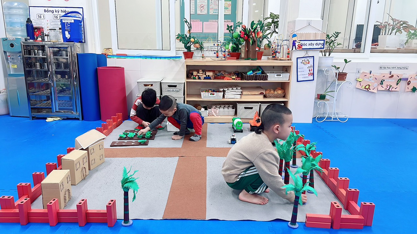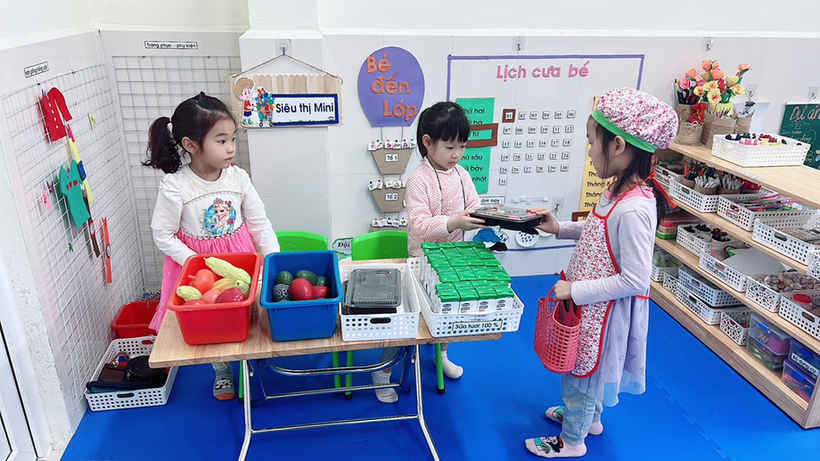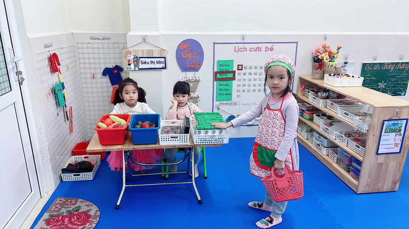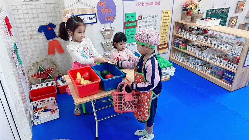 Các con lớp MGN B1 hứng thú với hoạt động vui chơi. Bên cạnh hoạt động học thì hoạt động vui chơi cũng đóng vai trò chủ đạo đối với sự phát triển của trẻ mầm non. Thông qua vui chơi, hành động chơi với những mối quan hệ bạn bè cùng chơi giúp trẻ tiếp thu những kinh nghiệm xã hội. Đó là giai đoạn đầu tiên của quá trình hình thành nhân cách, là phương tiện để phát triển toàn diện nhân cách. Hoạt động vui chơi ảnh hưởng mạnh đến sự hình thành tính chủ định của các quá trình tâm lý ở trẻ, thông qua trò chơi trẻ bắt đầu hình thành chú ý có chủ định và ghi nhớ có chủ định. Tình huống chơi và những hành động chơi ảnh hưởng thường xuyên đến sự phát triển của hoạt động trí tuệ đặc biệt là tư duy và trí tưởng tượng của trẻ. Bên cạnh đó, vui chơi còn tác động rất mạnh đến đời sống tình cảm của trẻ. Thông qua hoạt động chơi cũng dần hình thành cho trẻ cách làm việc nhóm, biết chia sẻ đồ chơi với bạn, tuân thủ nội qui chơi, và giao lưu với nhau thông qua các góc chơi, vai chơi.... Cô giáo Thanh Nga và Triệu Hóa đã chuẩn bị rất nhiều đồ chơi tại các góc chơi. Sau khi thỏa thuận chơi, hỏi ý tưởng chơi của trẻ tại các góc: Góc tạo hình, góc phân vai, góc sách truyện, góc xây dựng, góc kỹ năng, góc bán hàng, góc học tập....các con đã có 1 giờ hoạt động vui chơi rất bổ ích và hứng thú. Dưới đây là một số hình ảnh trong giờ hoạt động vui chơi của các con lớp MGN B1.