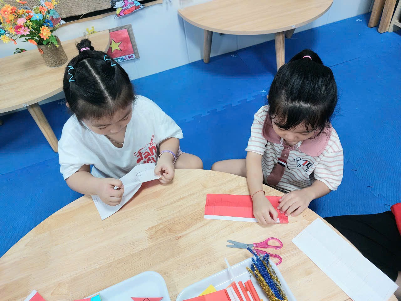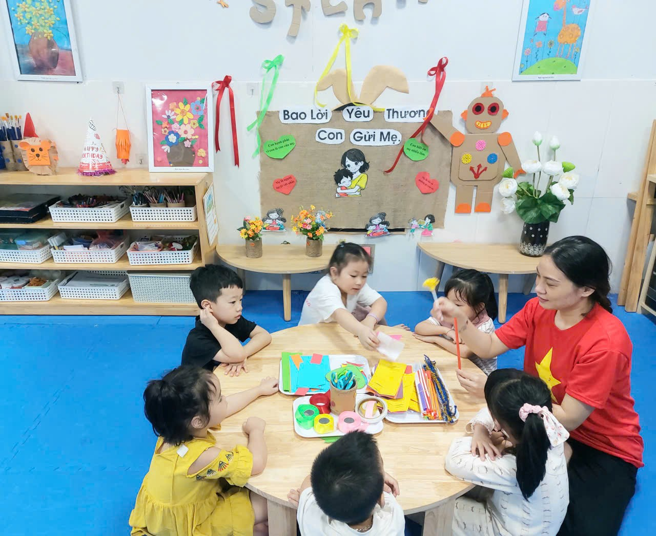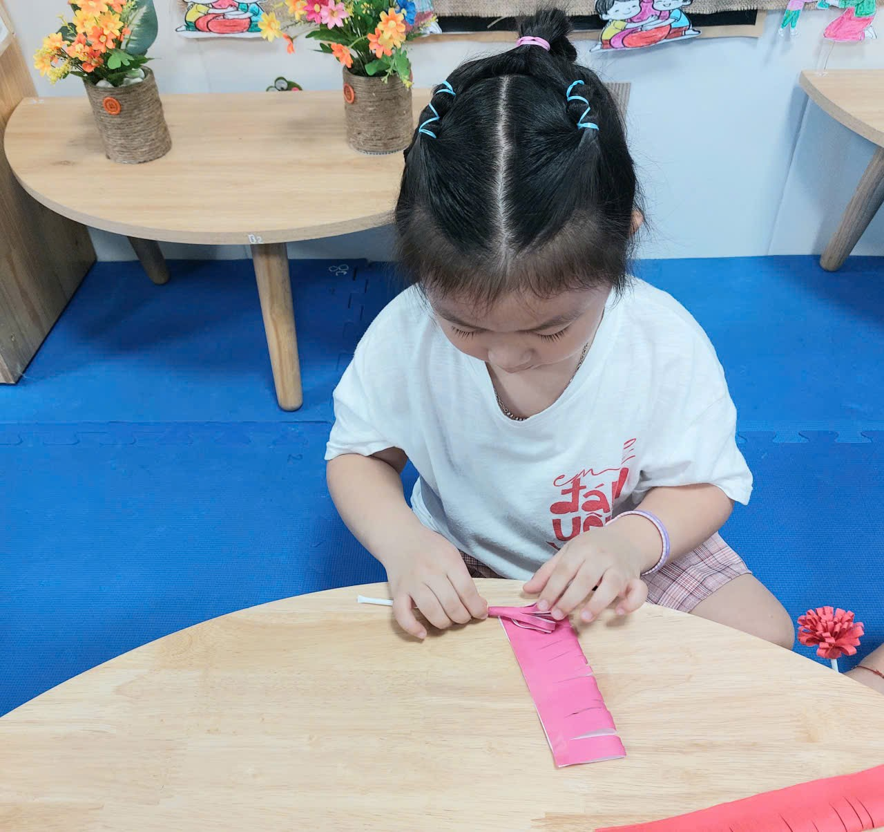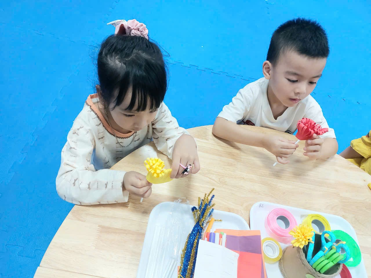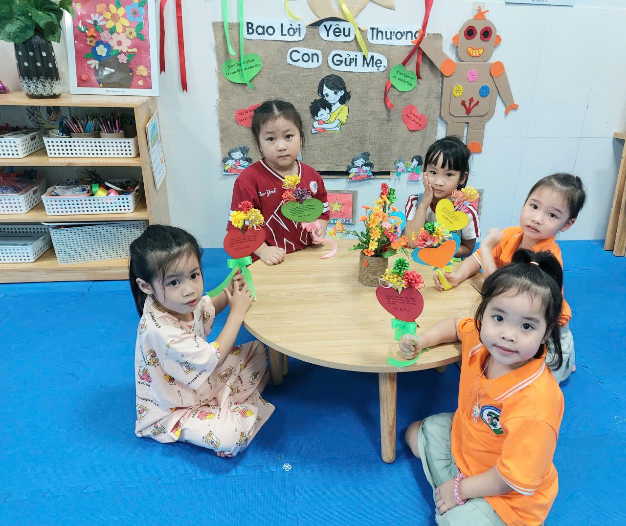 Sáng sớm, con dậy thật sớm đến lớp để chuẩn bị một món quà đặc biệt dành cho mẹ. Con cùng các cô tại lớp B2 tham gia buổi trải nghiệm làm thiệp hoa vô cùng vui vẻ và ý nghĩa. Dù không phải là đôi tay khéo và giỏi cắm hoa , bông hoa rất đơn giản cùng tấm thiệt với dòng chữ yêu thương con muốn gửi tới bà tới mẹ.