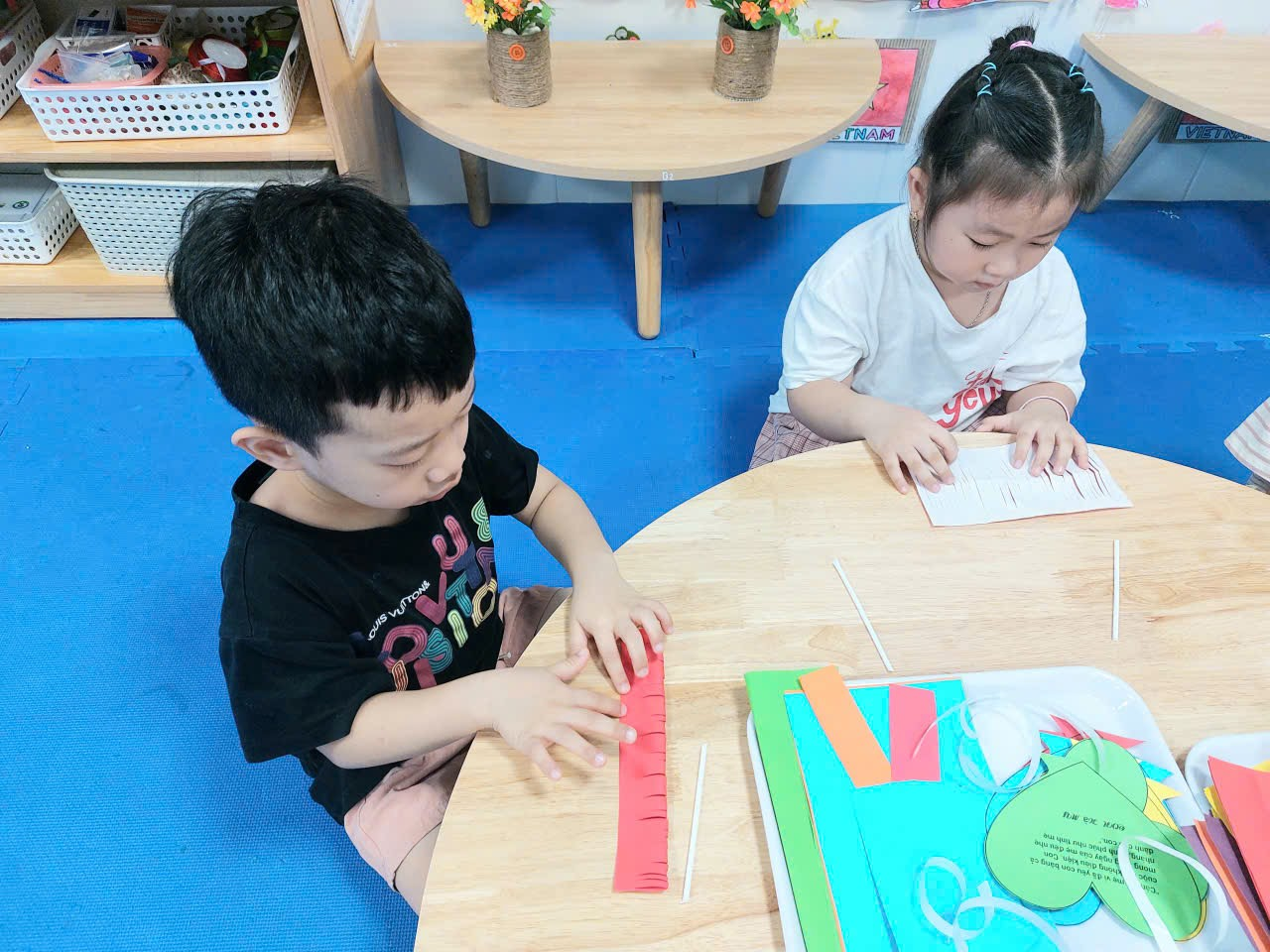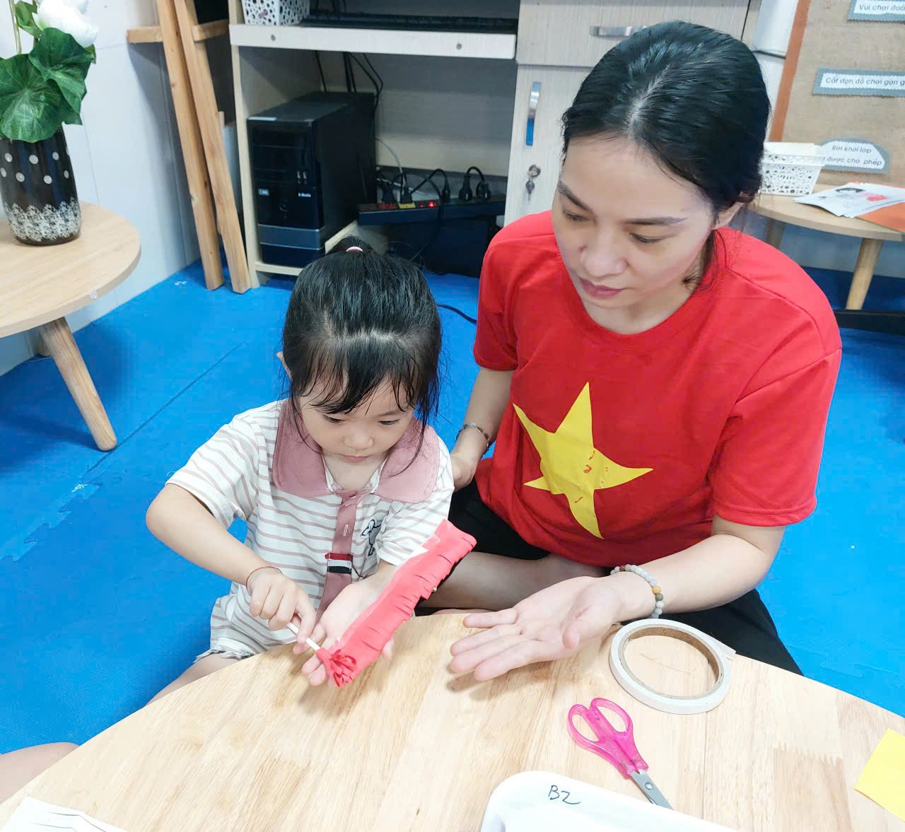 Cuối cùng với sự hướng dẫn hỗ trợ nhiệt tình của các cô con đã có được sản phẩm của riêng mình. Con rất giỏi phải không ạ?