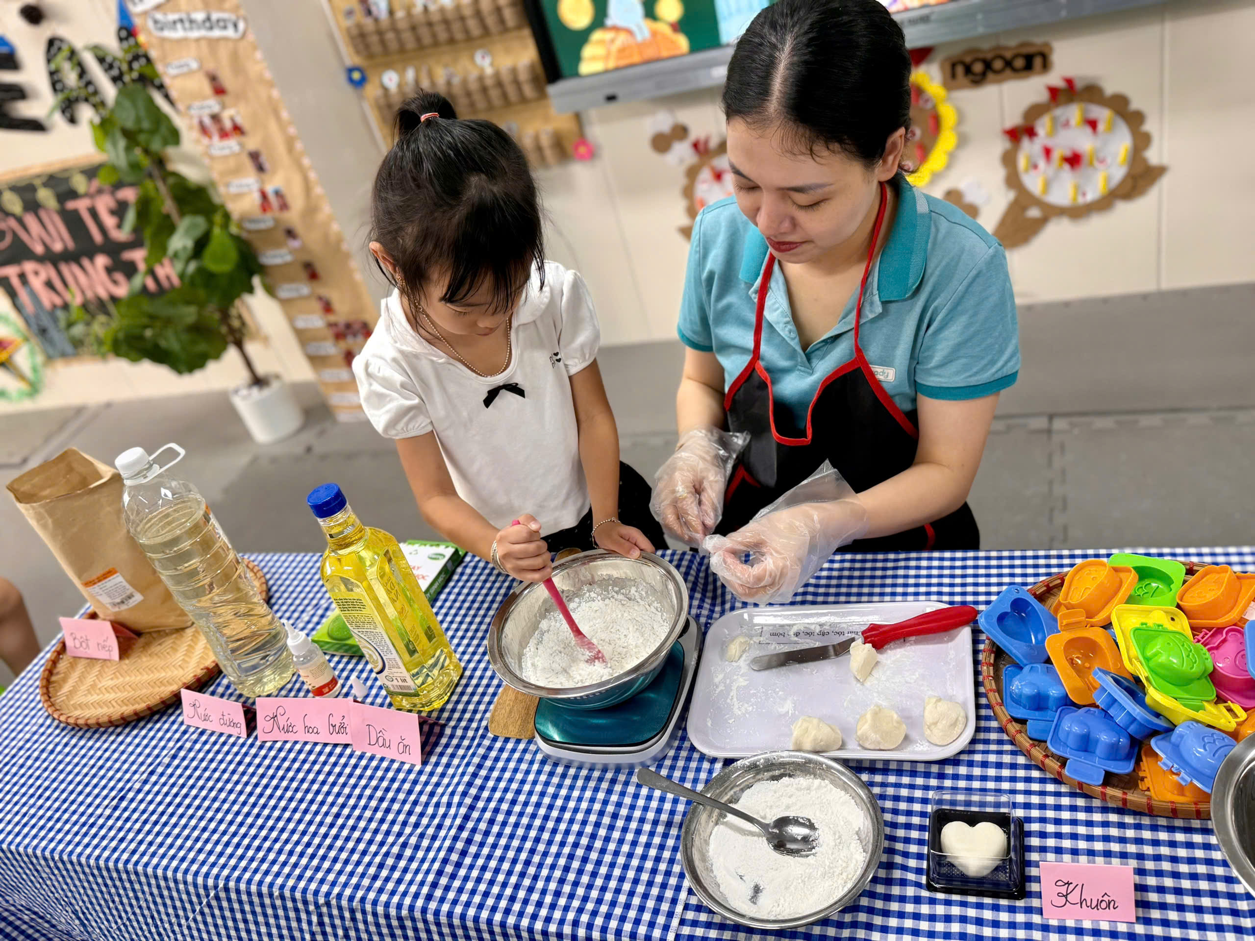 🌟Dưới sự hướng dẫn tận tình của các cô giáo, đôi bàn tay nhỏ bé, ngập tràn sự háo hức của các con đã tự nhào bột, nặn khuôn và trang trí nên những chiếc bánh dẻo xinh xắn, ngộ nghĩnh.
