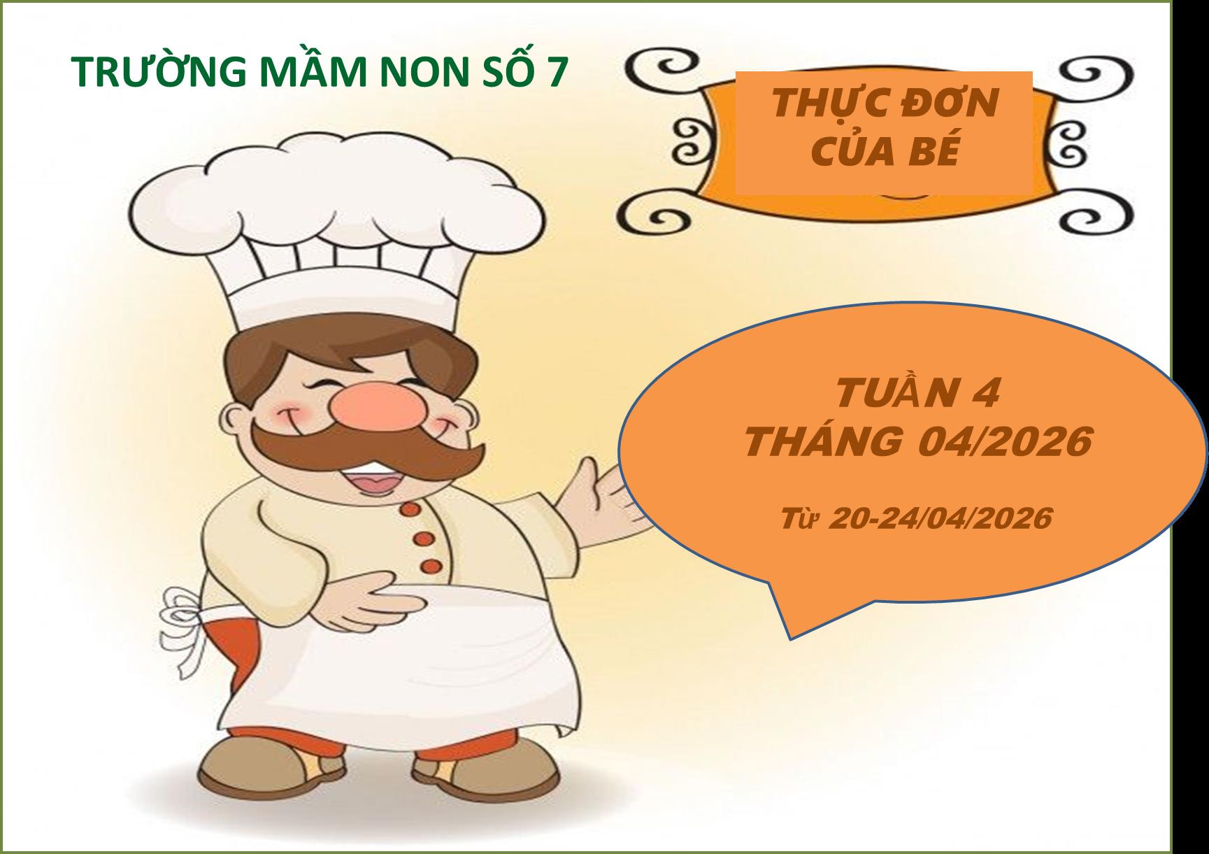 Thực đơn của các bé yêu tuần 4 tháng 04/2026