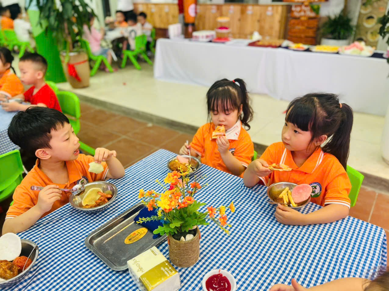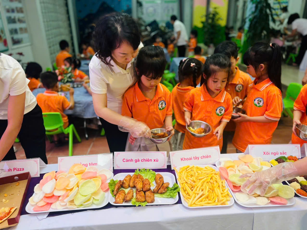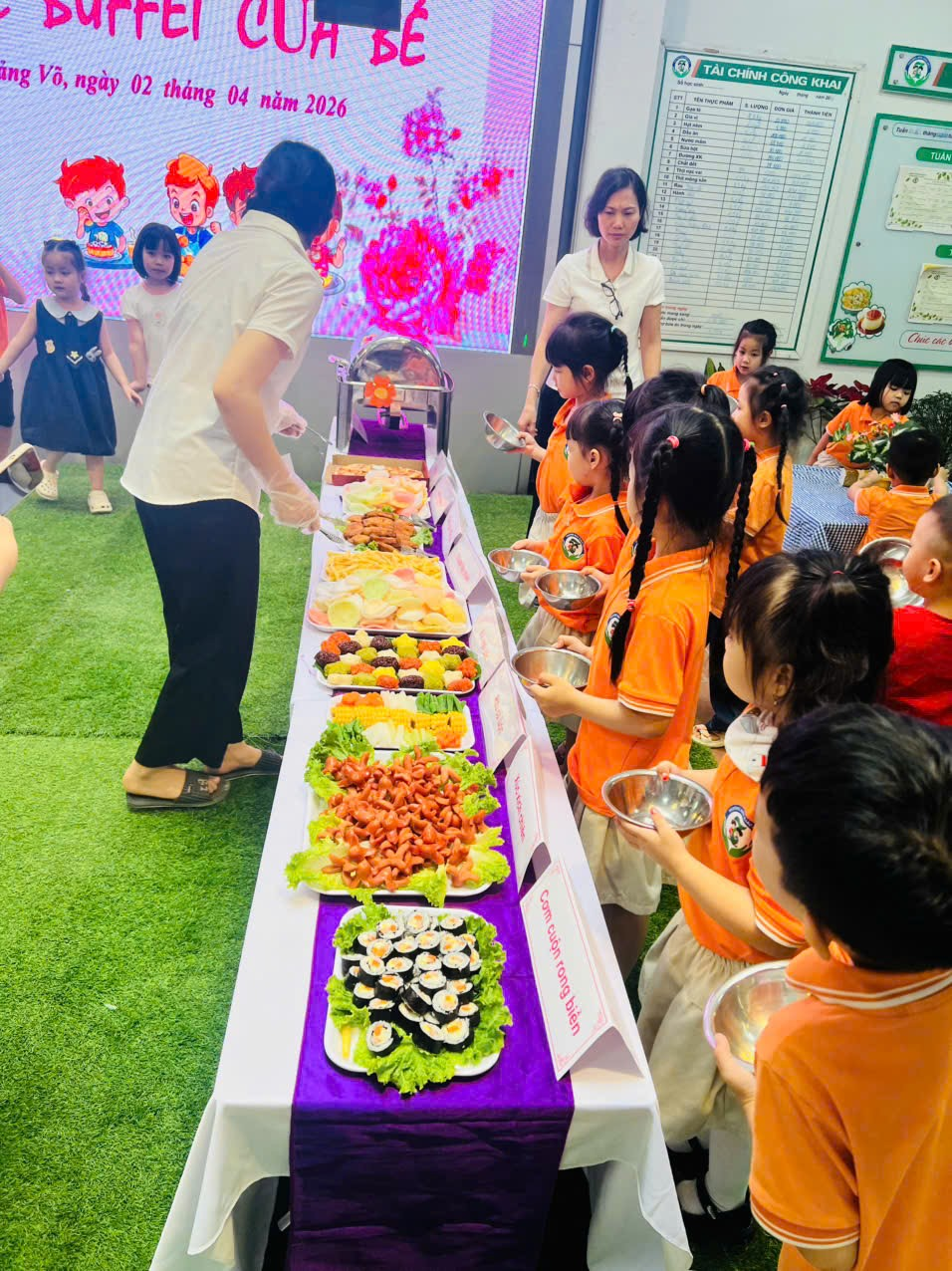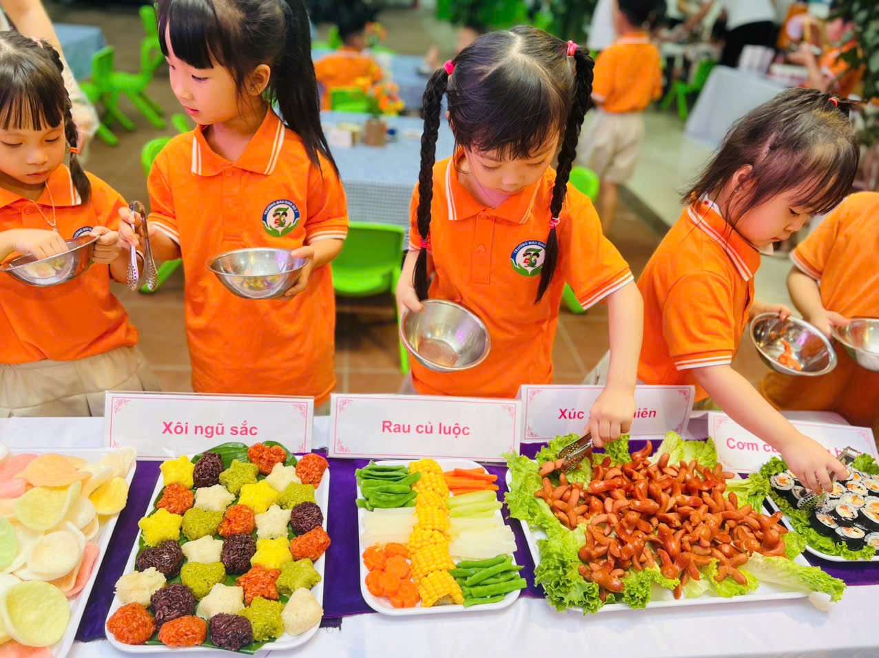 Các bé vô cùng hào hứng khi được tự tay lựa chọn món ăn yêu thích, tập thói quen xếp hàng ngay ngắn, lấy vừa đủ phần ăn và thưởng thức bữa tiệc trong không khí vui tươi, thân thiện. Đây cũng là cơ hội để các con rèn luyện kỹ năng tự phục vụ, biết chia sẻ cùng bạn bè và hình thành nếp sống văn minh trong ăn uống.