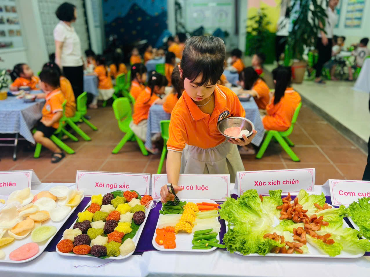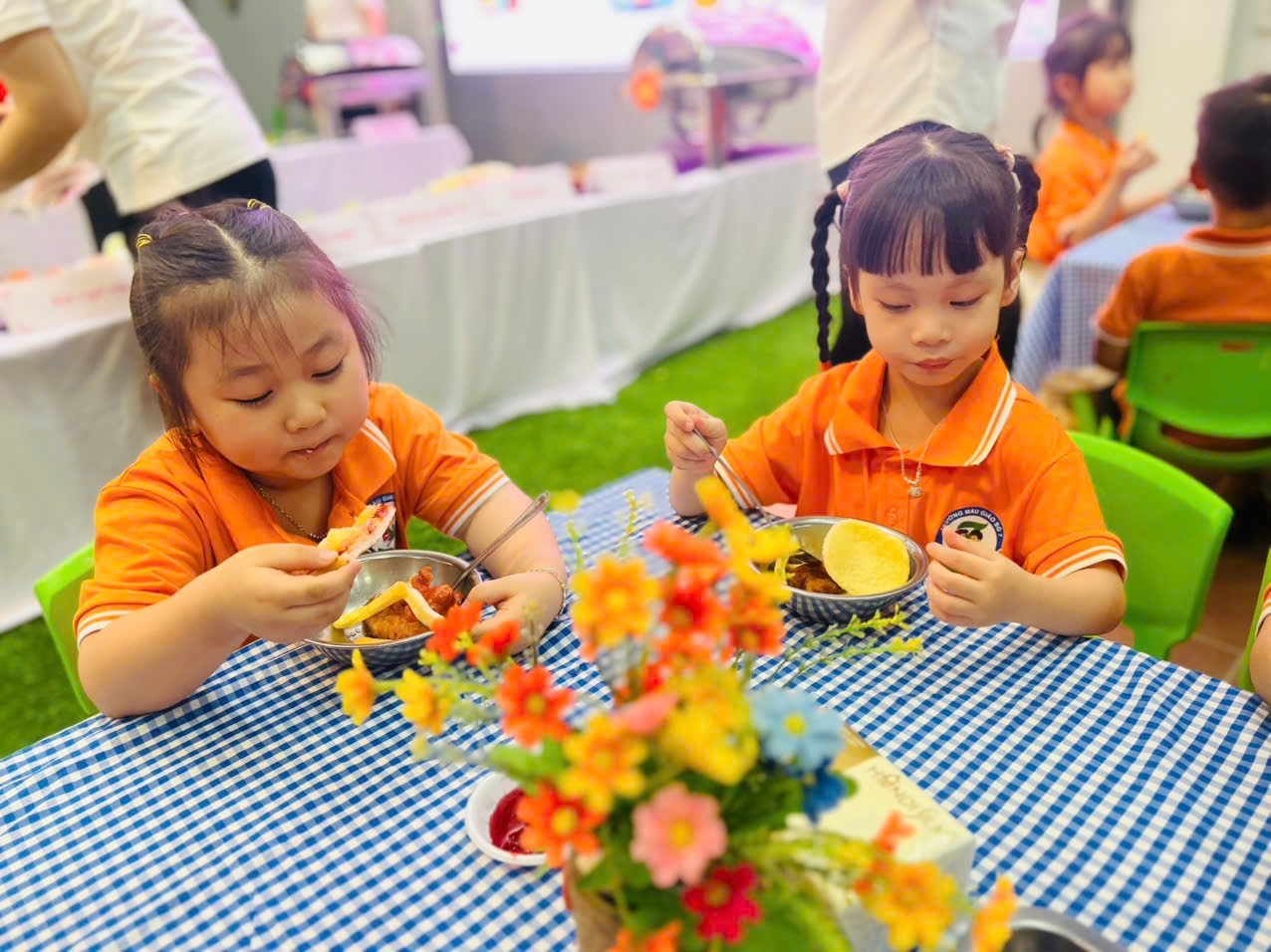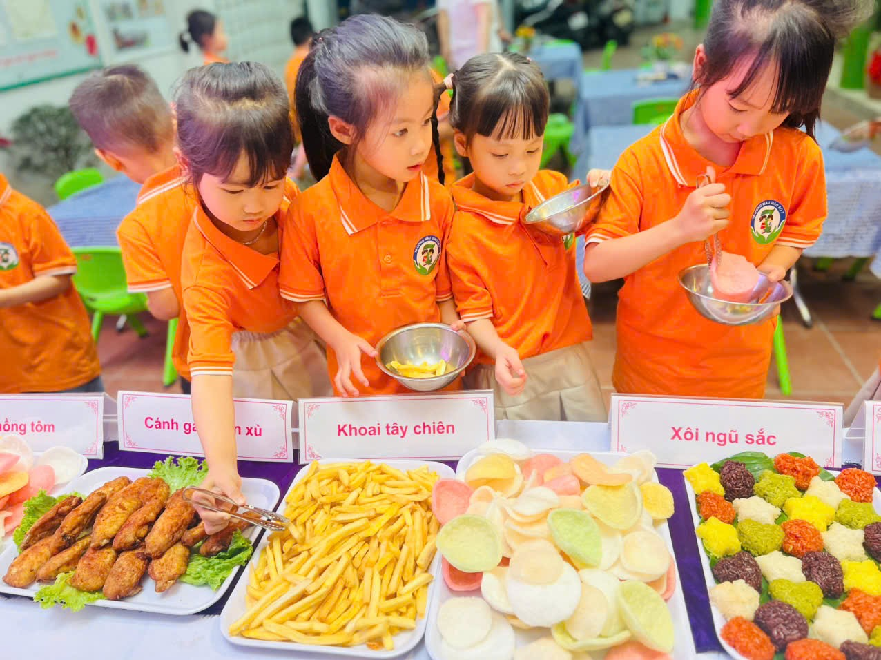 Các bé vô cùng hào hứng khi được tự tay lựa chọn món ăn yêu thích, tập thói quen xếp hàng ngay ngắn, lấy vừa đủ phần ăn và thưởng thức bữa tiệc trong không khí vui tươi, thân thiện. Đây cũng là cơ hội để các con rèn luyện kỹ năng tự phục vụ, biết chia sẻ cùng bạn bè và hình thành nếp sống văn minh trong ăn uống.