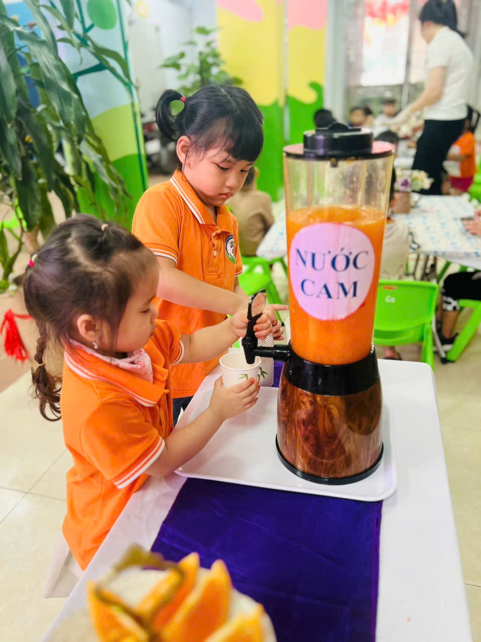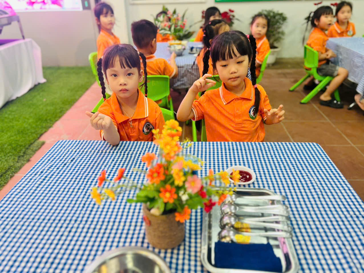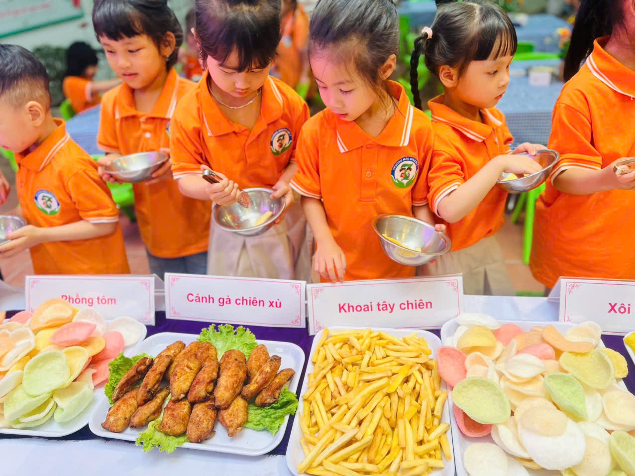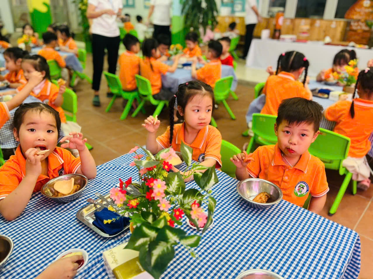 Các bé vô cùng hào hứng khi được tự tay lựa chọn món ăn yêu thích, tập thói quen xếp hàng ngay ngắn, lấy vừa đủ phần ăn và thưởng thức bữa tiệc trong không khí vui tươi, thân thiện. Đây cũng là cơ hội để các con rèn luyện kỹ năng tự phục vụ, biết chia sẻ cùng bạn bè và hình thành nếp sống văn minh trong ăn uống.