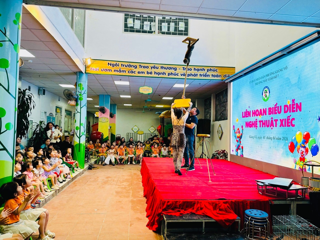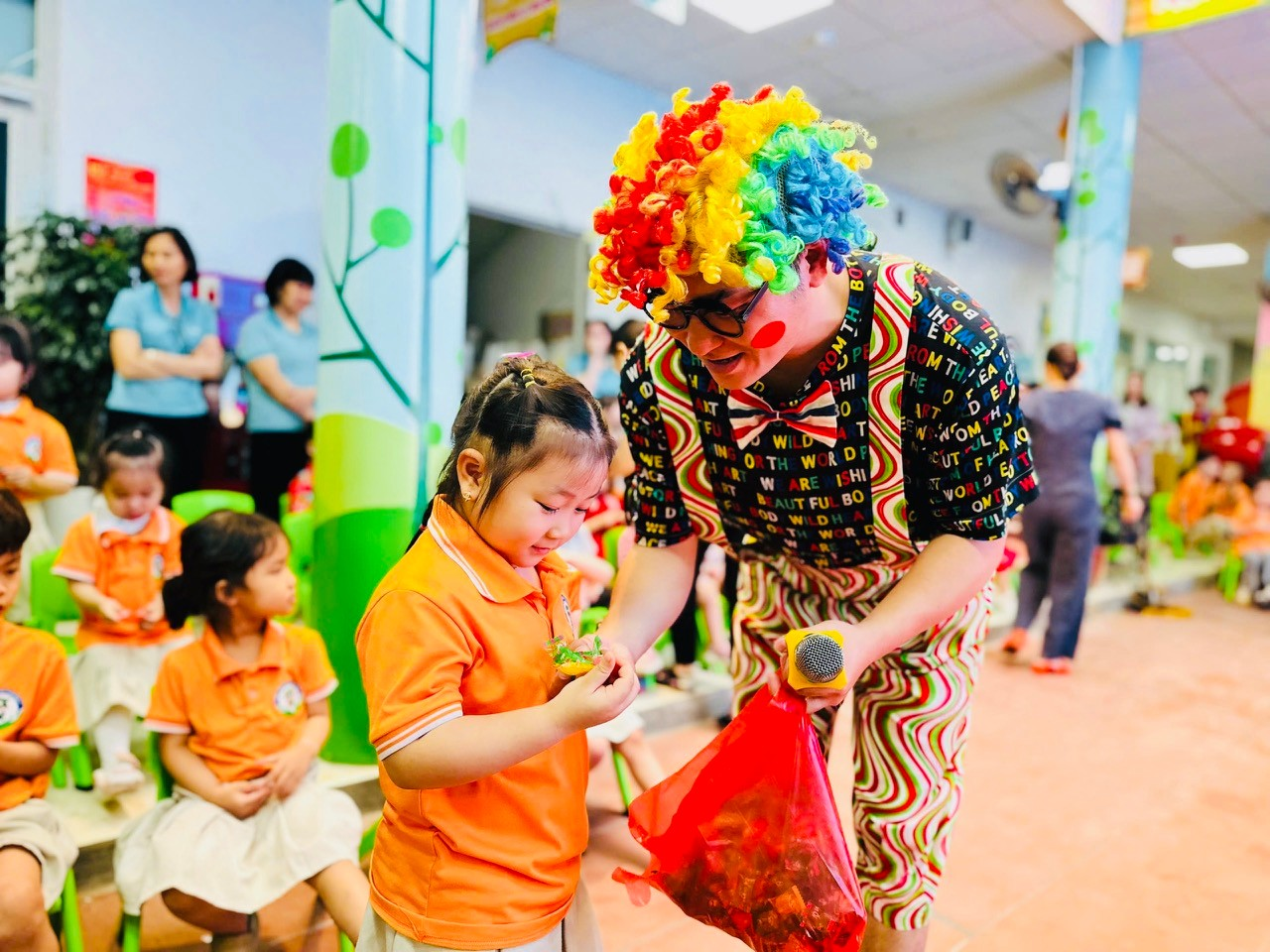 Hôm nay, các bé lớp B đã có một trải nghiệm vô cùng thú vị khi được thưởng thức chương trình xiếc đặc sắc ngay tại trường. Không khí lớp học trở nên rộn ràng hơn bao giờ hết khi các con được gặp gỡ chú hề hoạt náo vui nhộn, giao lưu trò chuyện và tham gia nhiều hoạt động hấp dẫn.