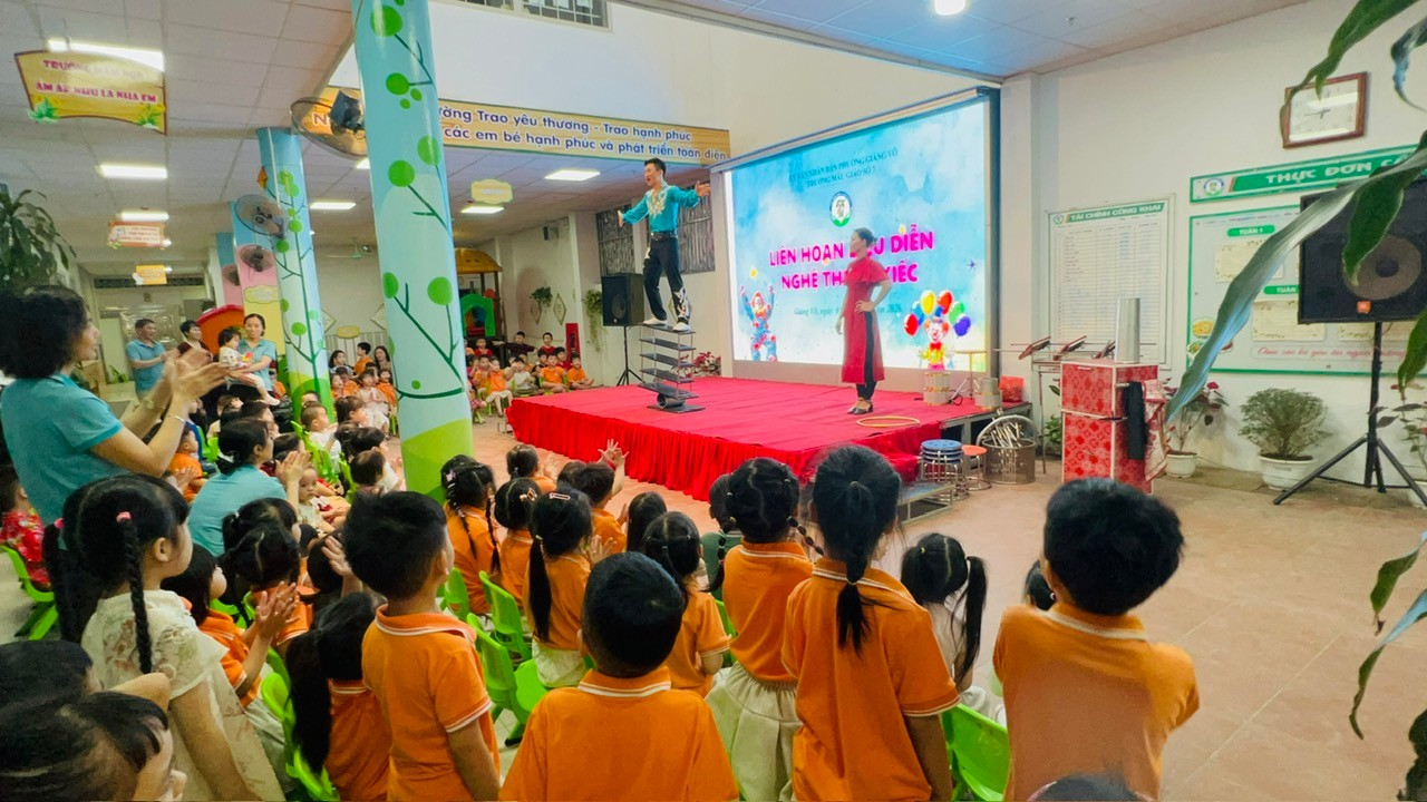 Mỗi tiết mục đều mang lại những tiếng cười giòn giã, ánh mắt chăm chú và niềm vui hiện rõ trên khuôn mặt các con. Thông qua chương trình, các bé không chỉ được giải trí mà còn được mở rộng hiểu biết, phát triển khả năng quan sát, mạnh dạn giao tiếp và thể hiện cảm xúc tích cực.