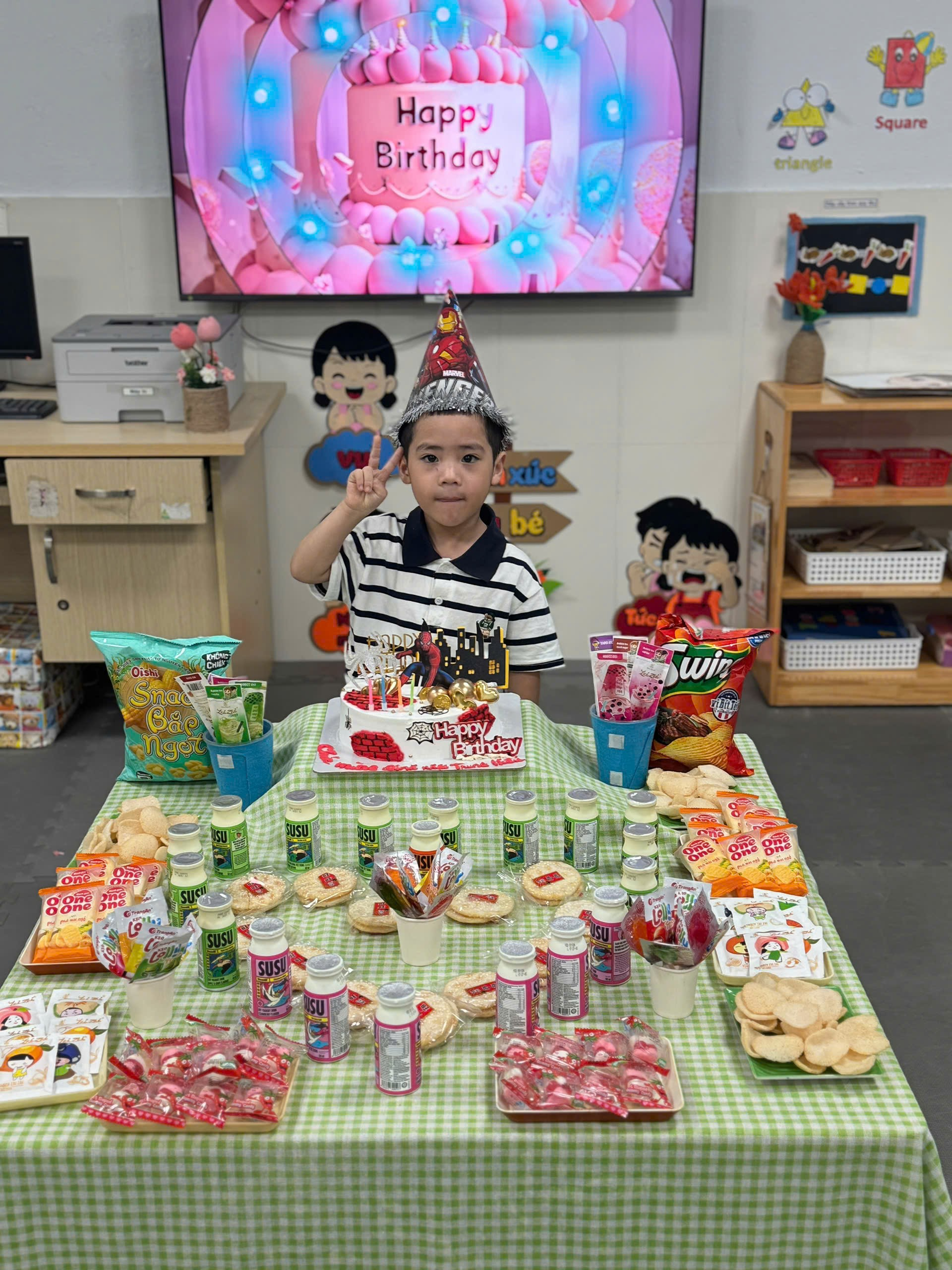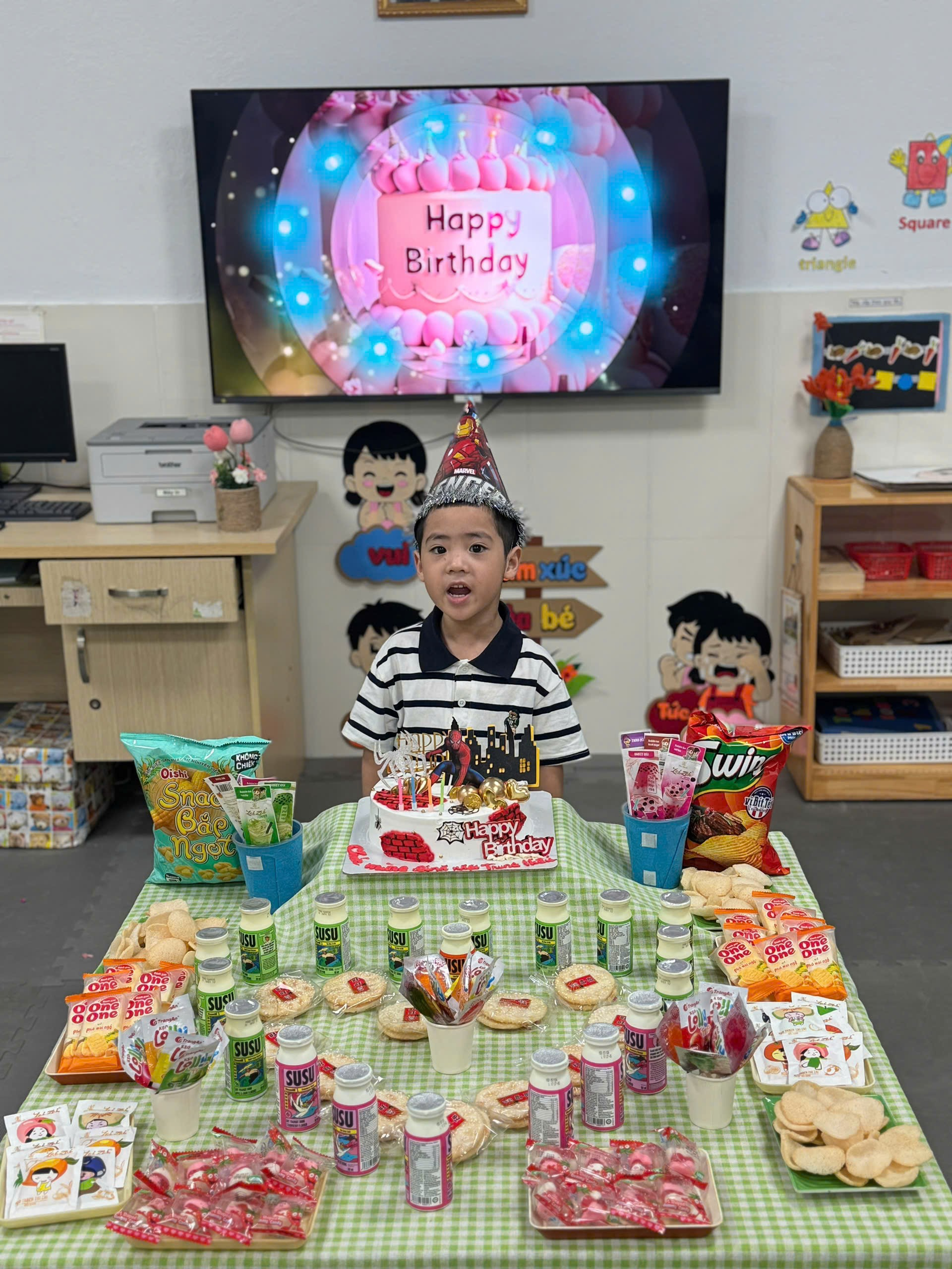 Trong không gian quen thuộc của lớp học, các bạn nhỏ đã cùng nhau hát vang bài “Chúc mừng sinh nhật”, gửi đến Trung Hiếu những lời chúc ngây thơ nhưng chân thành. Gương mặt rạng rỡ của bạn khi thổi nến, nhận bánh và những cái ôm từ bạn bè đã khiến buổi tiệc nhỏ trở nên thật ý nghĩa.
