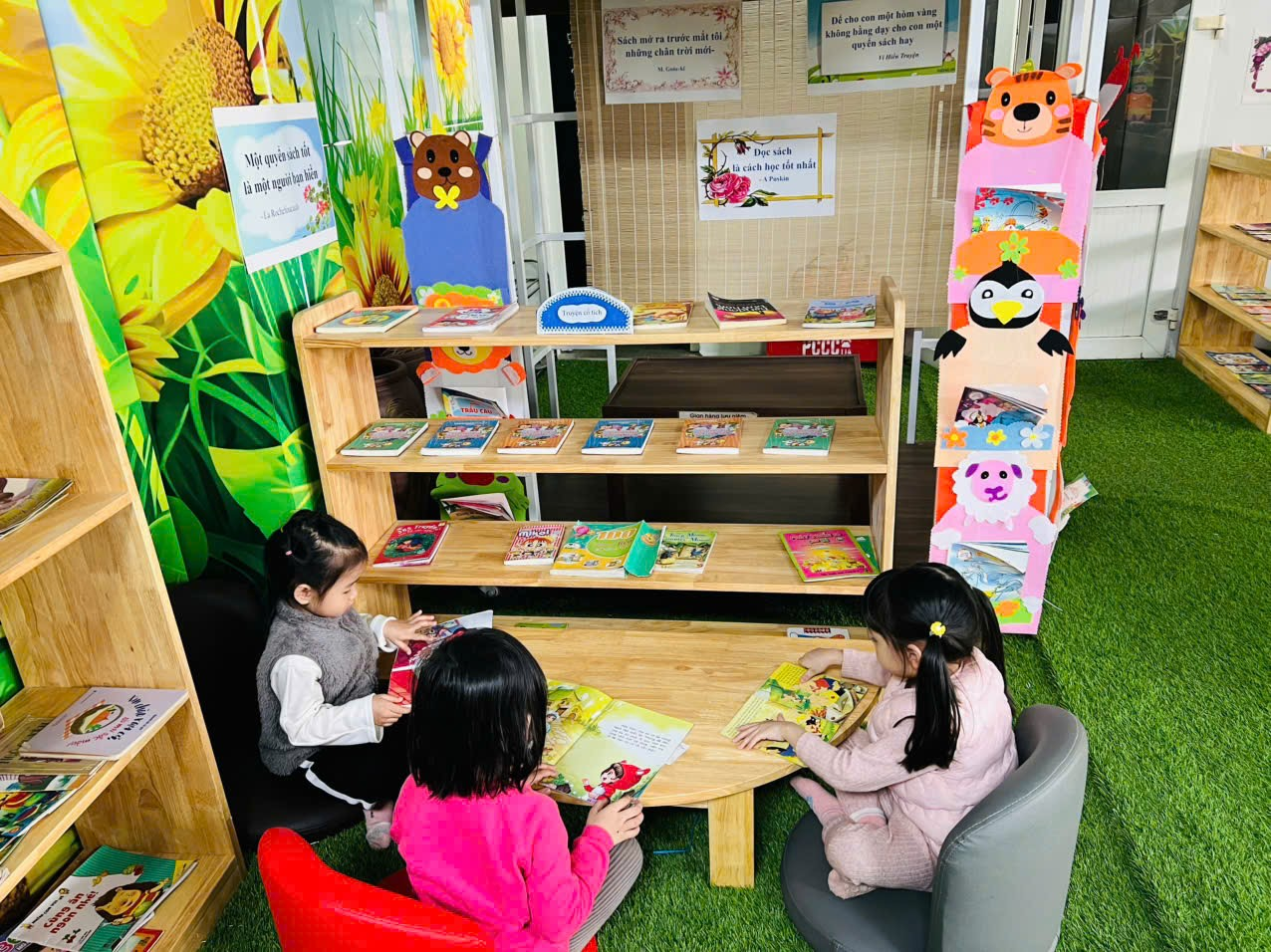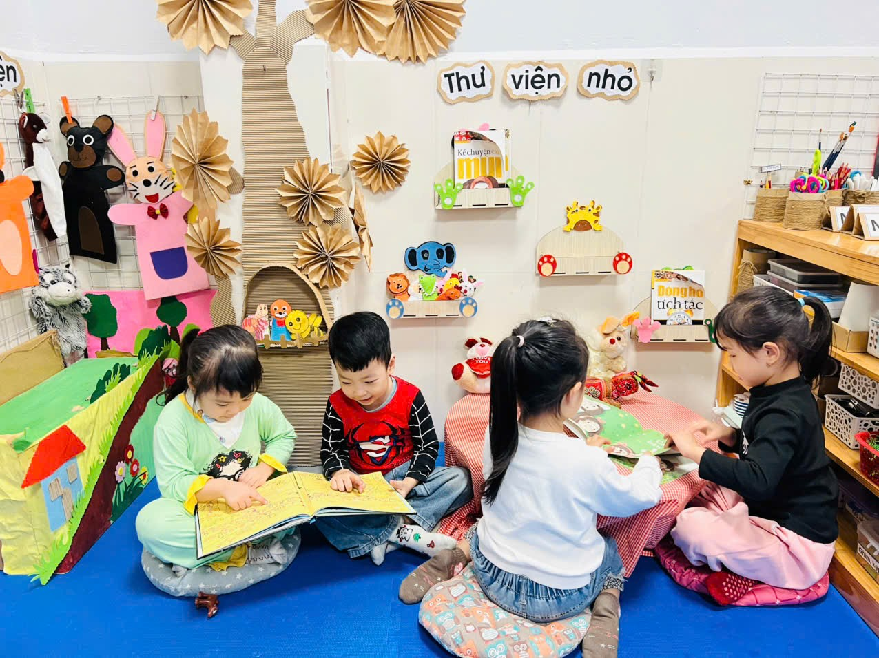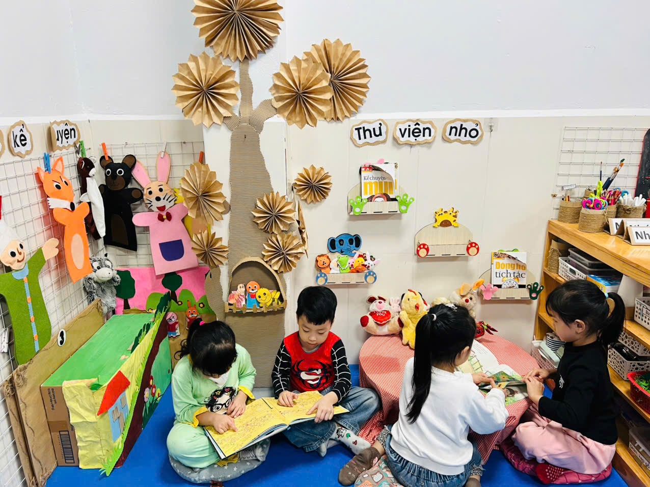 Hoạt động khám phá Góc thư viện giúp các bé hình thành thói quen yêu sách, yêu việc đọc ngay từ khi còn nhỏ; đồng thời phát triển ngôn ngữ, khả năng quan sát và sự tập trung. Những ánh mắt chăm chú, những nụ cười rạng rỡ của các con chính là minh chứng cho một giờ học nhẹ nhàng mà đầy niềm vui 📖✨.