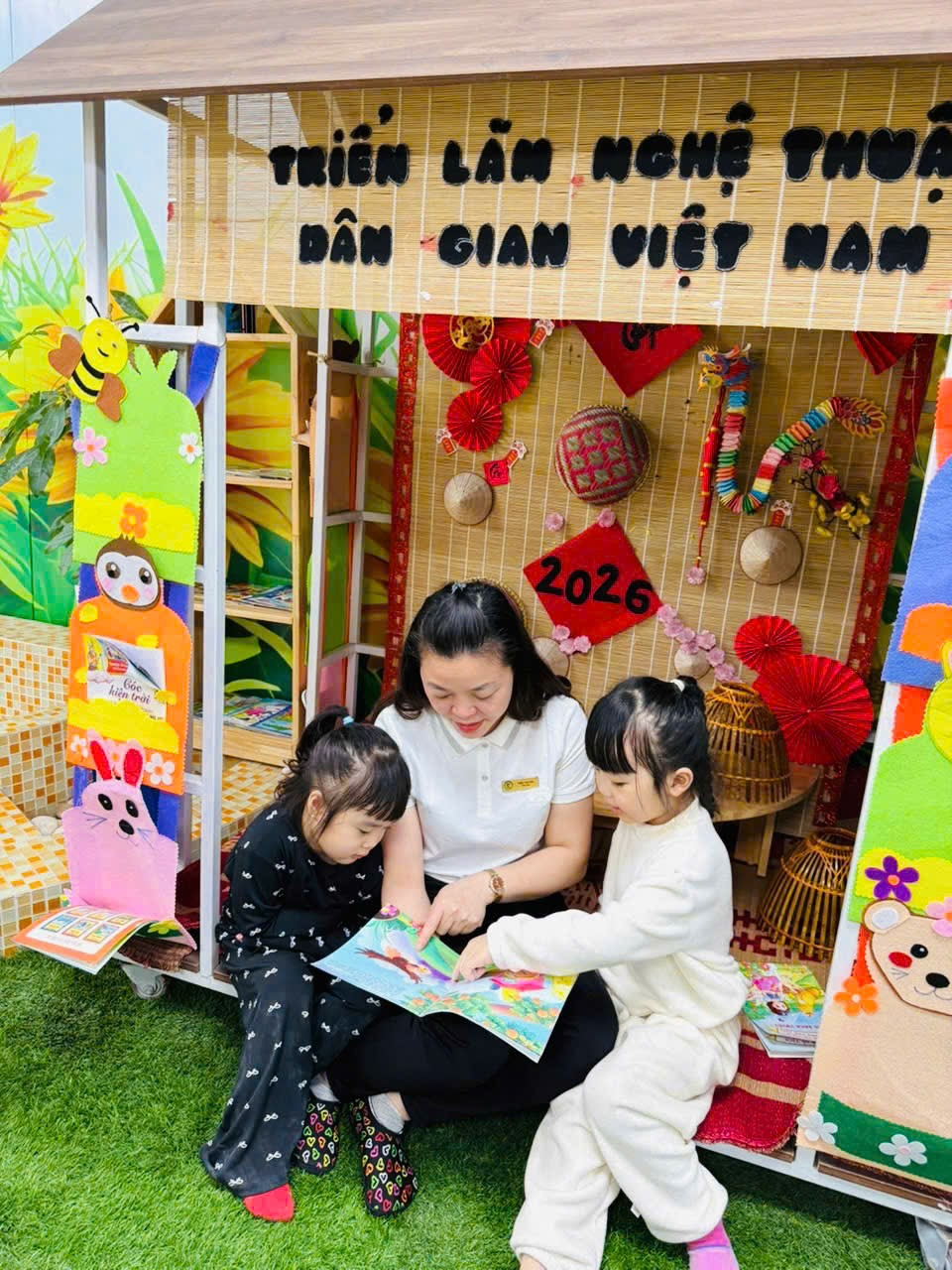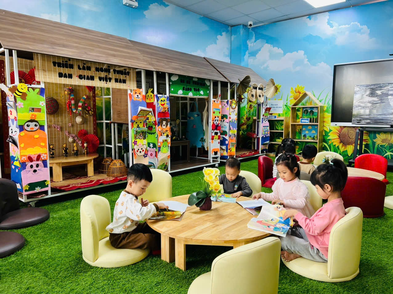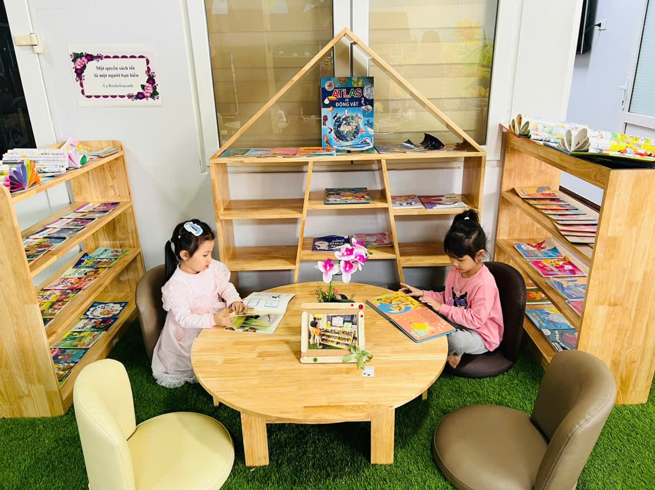 Hoạt động khám phá Góc thư viện giúp các bé hình thành thói quen yêu sách, yêu việc đọc ngay từ khi còn nhỏ; đồng thời phát triển ngôn ngữ, khả năng quan sát và sự tập trung. Những ánh mắt chăm chú, những nụ cười rạng rỡ của các con chính là minh chứng cho một giờ học nhẹ nhàng mà đầy niềm vui 📖✨.