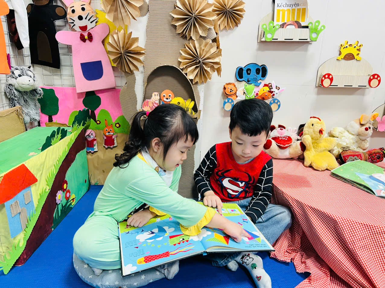 📚 Cô và các bé lớp Mẫu giáo Nhỡ B1 cùng nhau khám phá Góc thư viện 📚