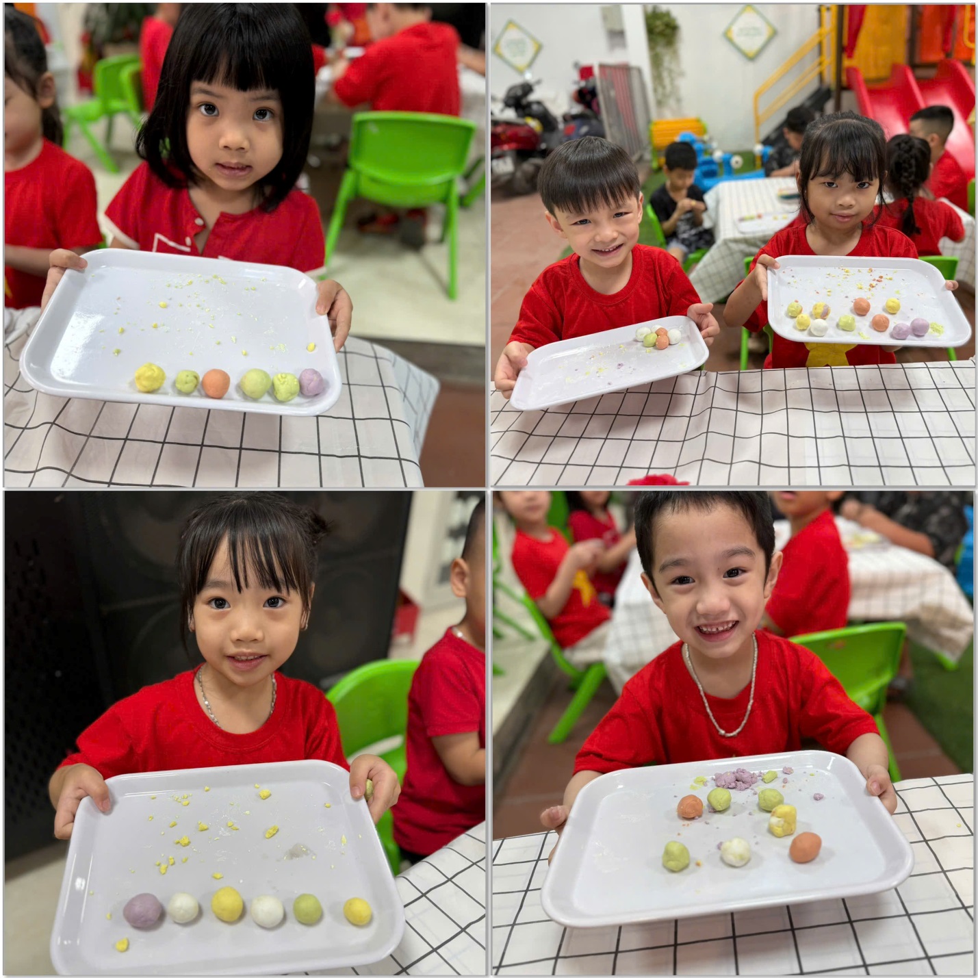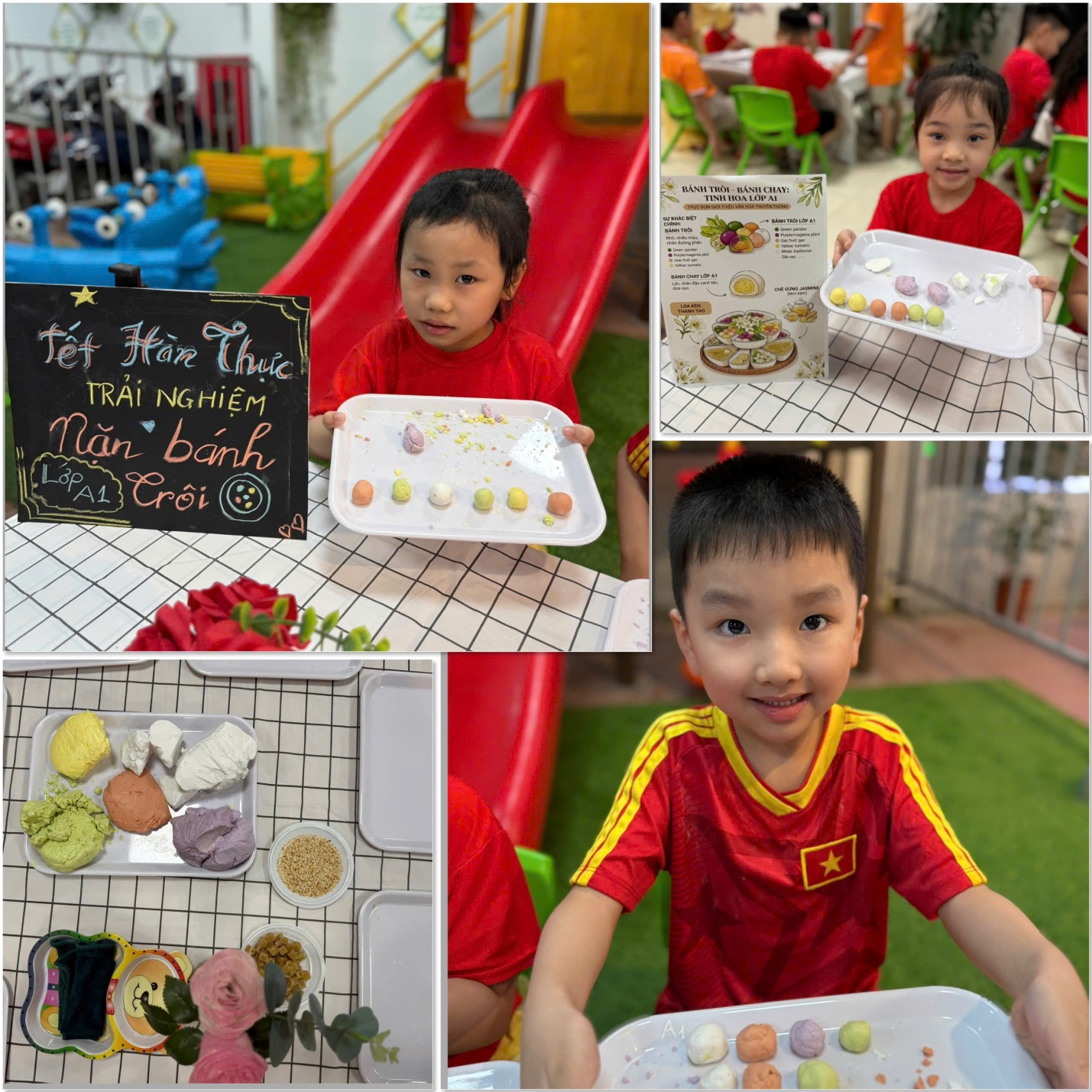 Mỗi viên bánh không chỉ đáng yêu mà còn chứa đựng sự khéo léo, kiên trì và niềm vui của các con khi được tự tay làm ra sản phẩm của mình. Tiếng cười giòn tan, ánh mắt háo hức khi hoàn thành những viên bánh trôi ngũ sắc đã làm cho không khí lớp A1 thêm phần ấm áp và ý nghĩa.