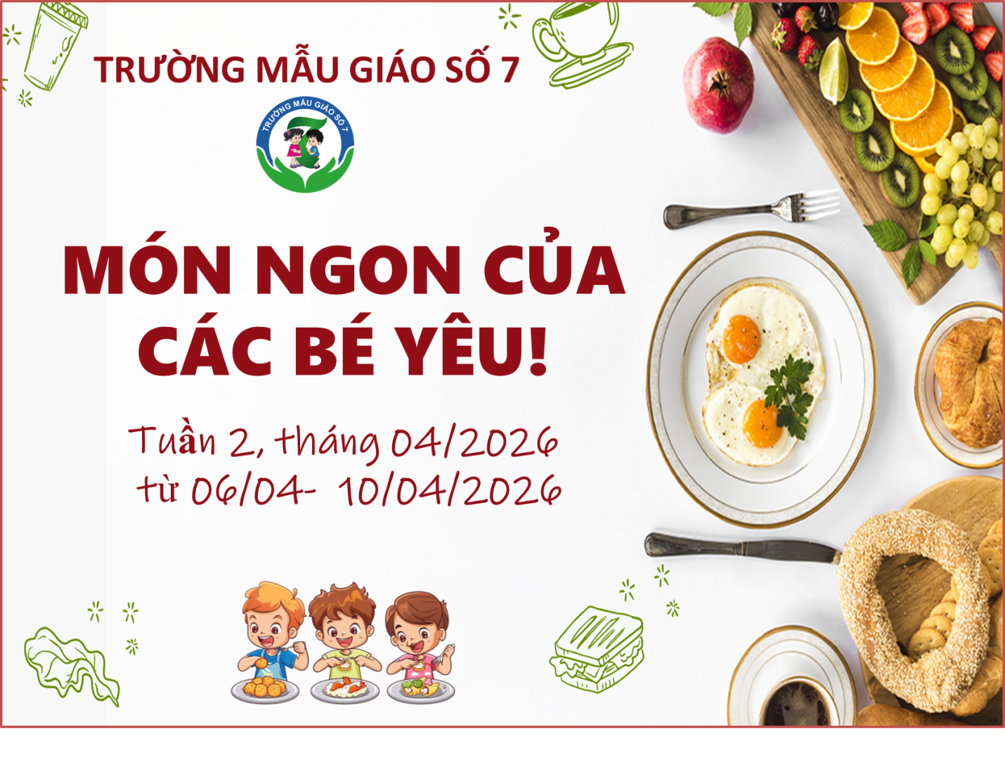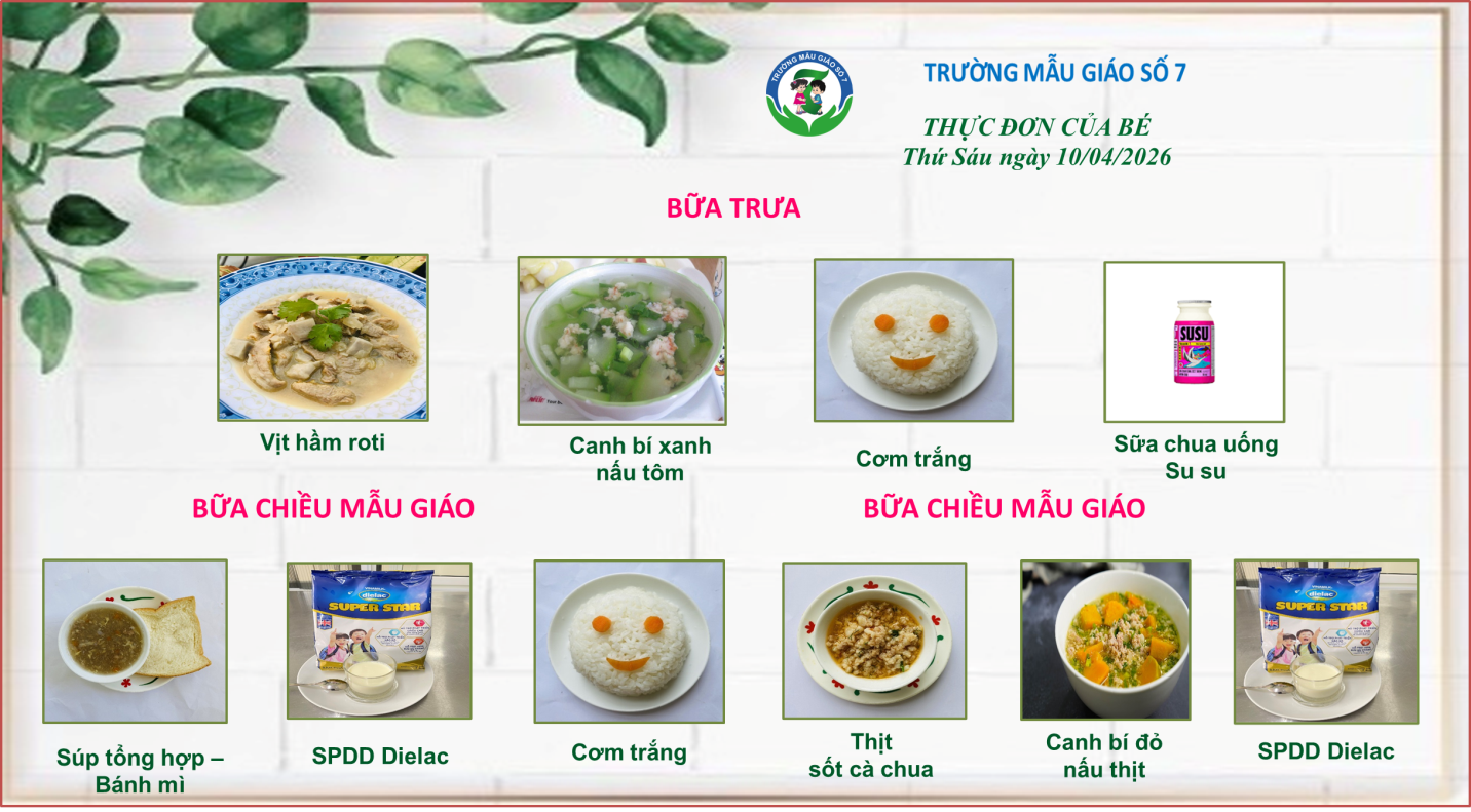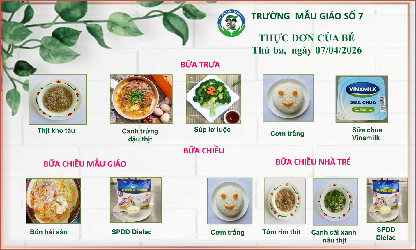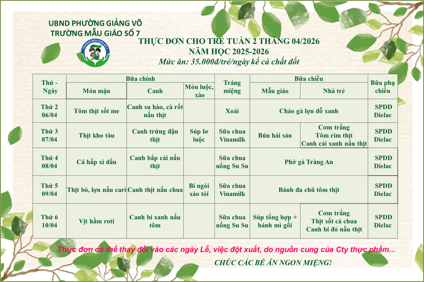 Dưới đây là thực đơn của bé tuần 2 tháng 04/2026