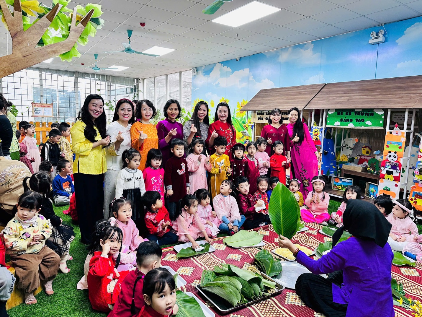 Ngày hội gói bánh chưng của các bé trường mẫu giáo số 7