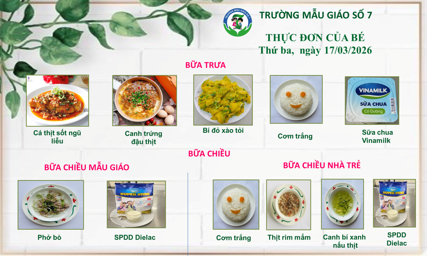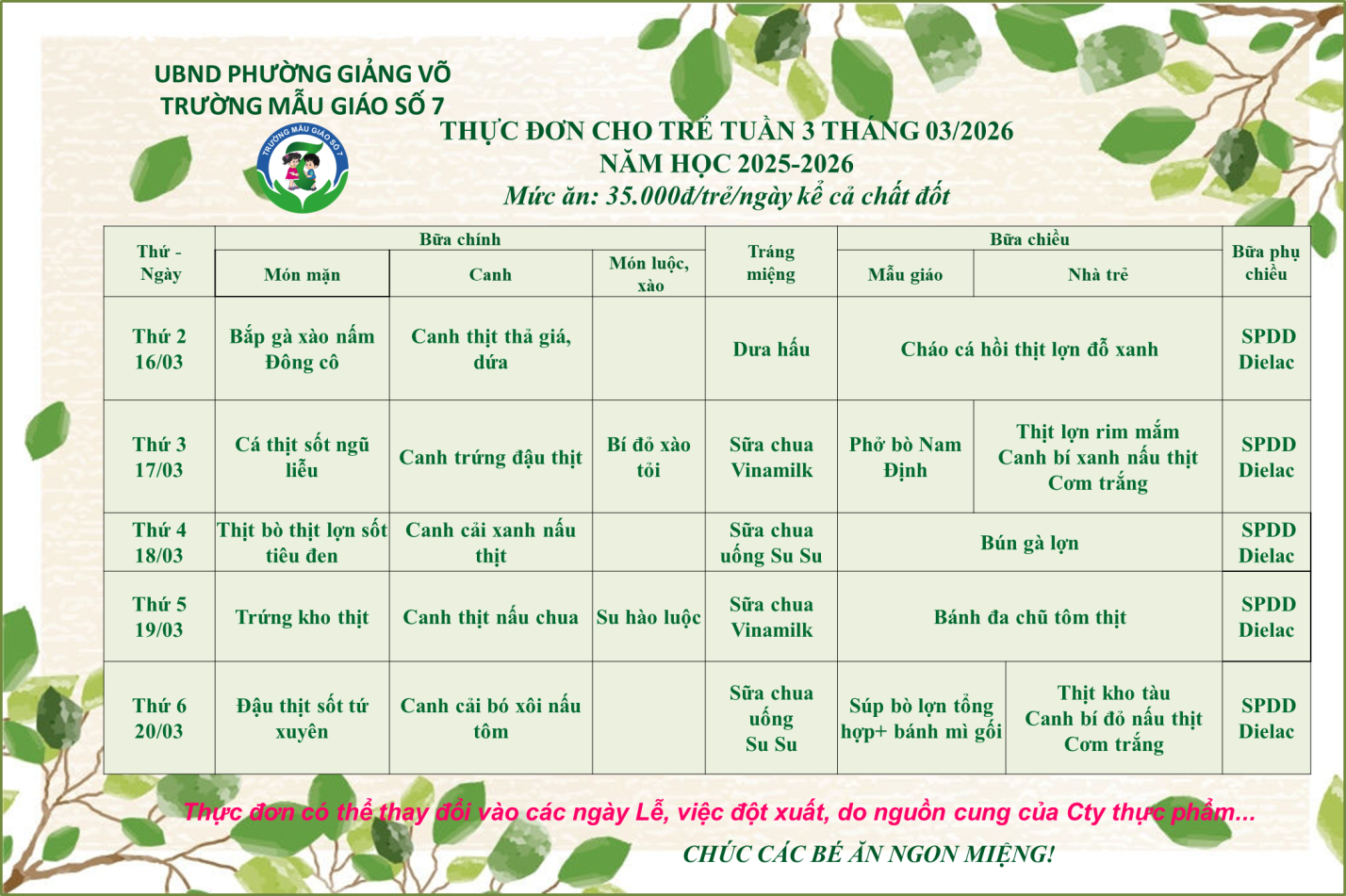 Dưới đây là thực đơn của bé tuần 3 tháng 03/2026