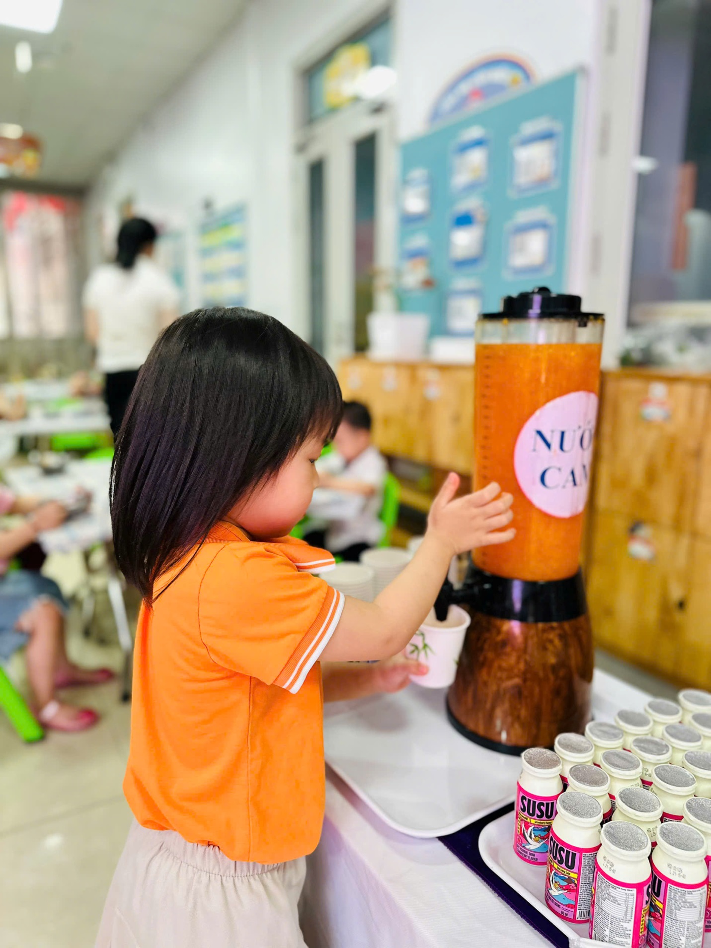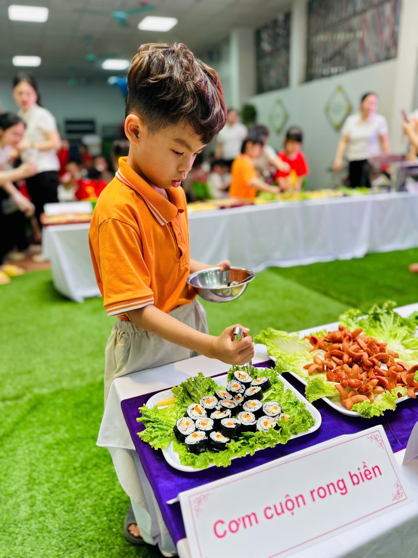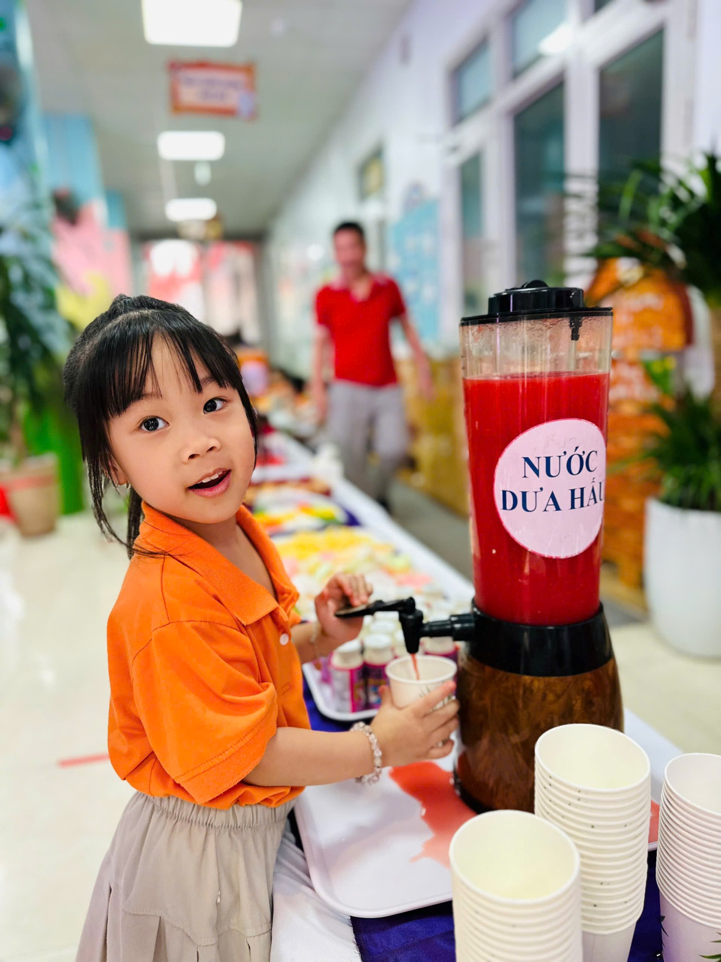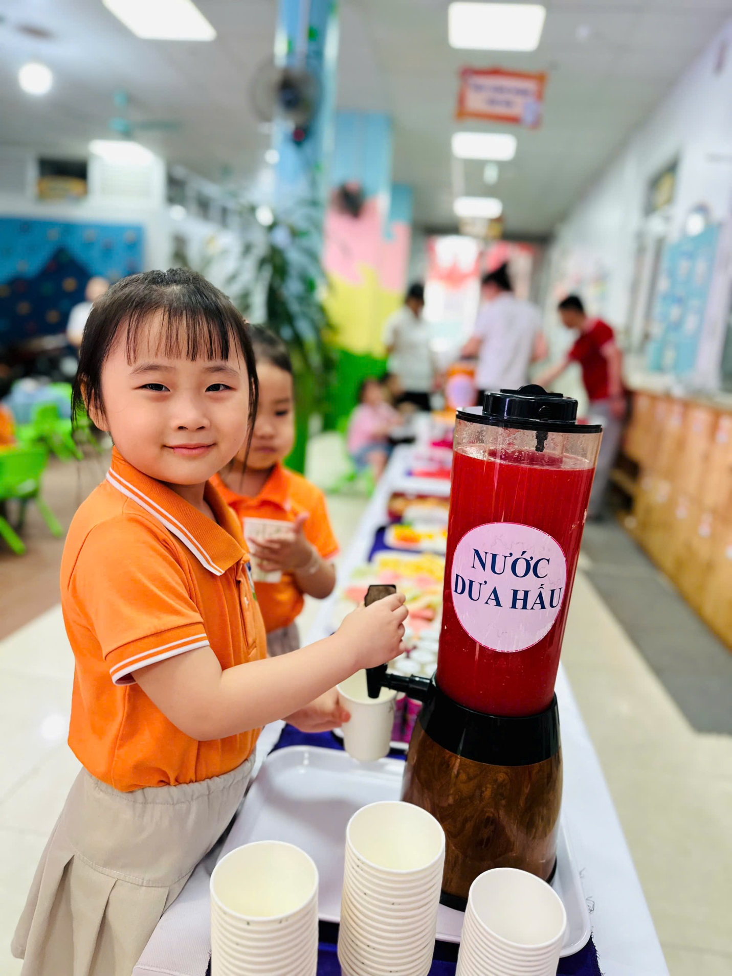 Liên hoan Buffet cho trẻ mẫu giáo là một hoạt động thú vị và bổ ích, giúp các bé vừa được thưởng thức nhiều món ăn hấp dẫn vừa rèn luyện kỹ năng tự phục vụ. Trong không gian trang trí sinh động, các bé được tự chọn những món mình yêu thích như bánh piza,mì Ý, xôi ngũ sắc, gà rán, xúc xích, khoai chiên... hay các món ăn nhẹ phù hợp với lứa tuổi. Dưới sự hướng dẫn của cô giáo, trẻ học cách xếp hàng, lấy thức ăn vừa đủ và giữ gìn vệ sinh khi ăn uống. Không chỉ mang lại niềm vui, buổi liên hoan còn giúp các bé mạnh dạn hơn, biết chia sẻ và hòa đồng với bạn bè, tạo nên những kỷ niệm đẹp trong những năm tháng đầu đời.