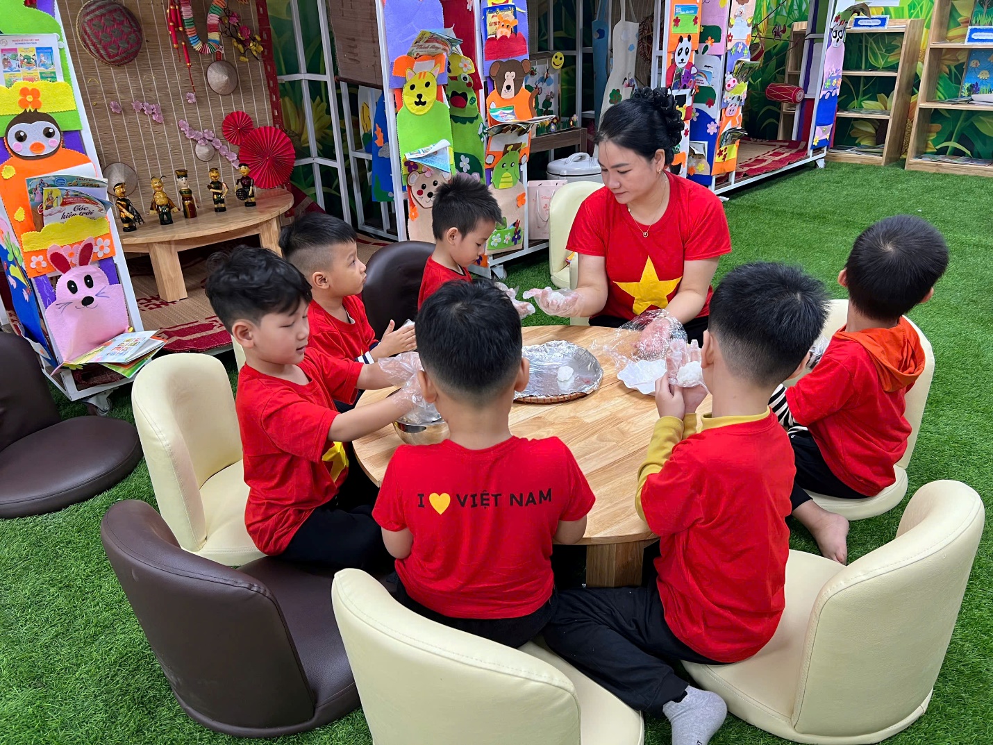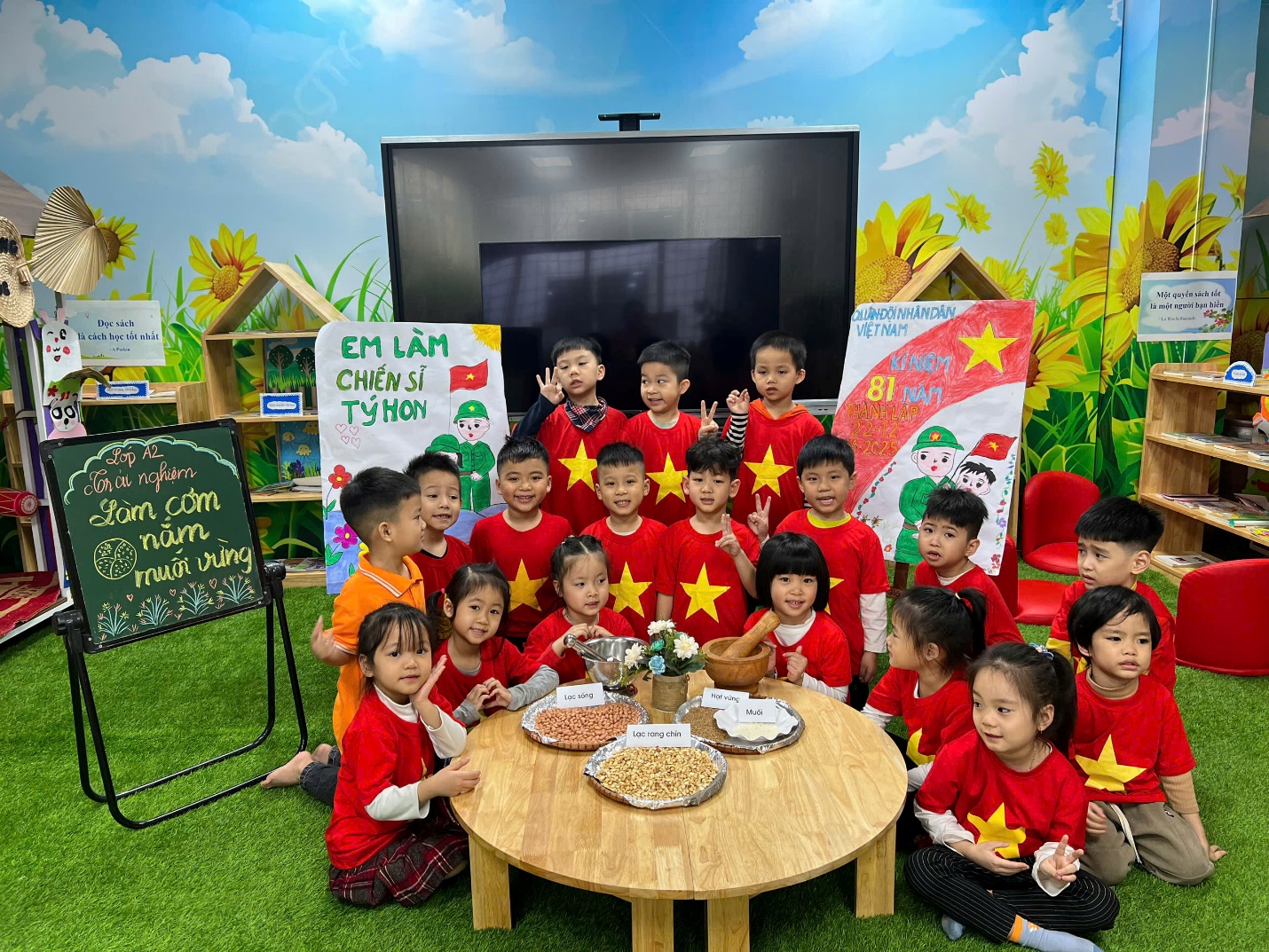 🎉 Nhân dịp kỷ niệm ngày thành lập Quân đội nhân dân Việt Nam (22/12), các bé lớp Mẫu giáo lớn A2 đã có một hoạt động trải nghiệm vô cùng ý nghĩa: bữa cơm hành quân với cơm nắm muối vừng. Đây không chỉ là một hoạt động vui chơi mà còn là bài học sinh động giúp các bé hiểu thêm về truyền thống, tinh thần giản dị và kiên cường của các chú bộ đội.
